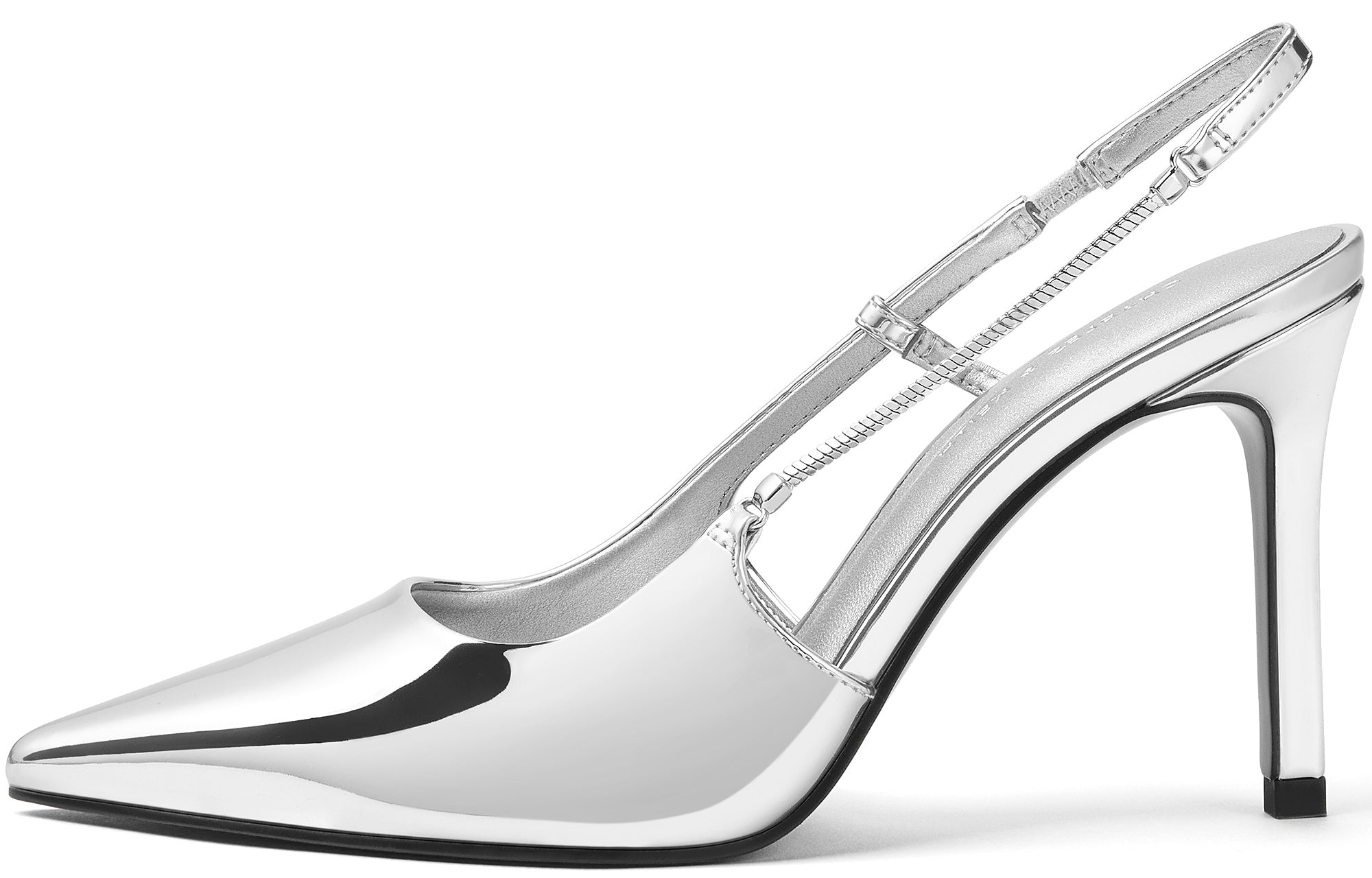 Yupqa baland poshnali va dekorativ zanjirli oqlangan poyabzal. To'ylar, tantanalar va maxsus tadbirlar uchun ideal.