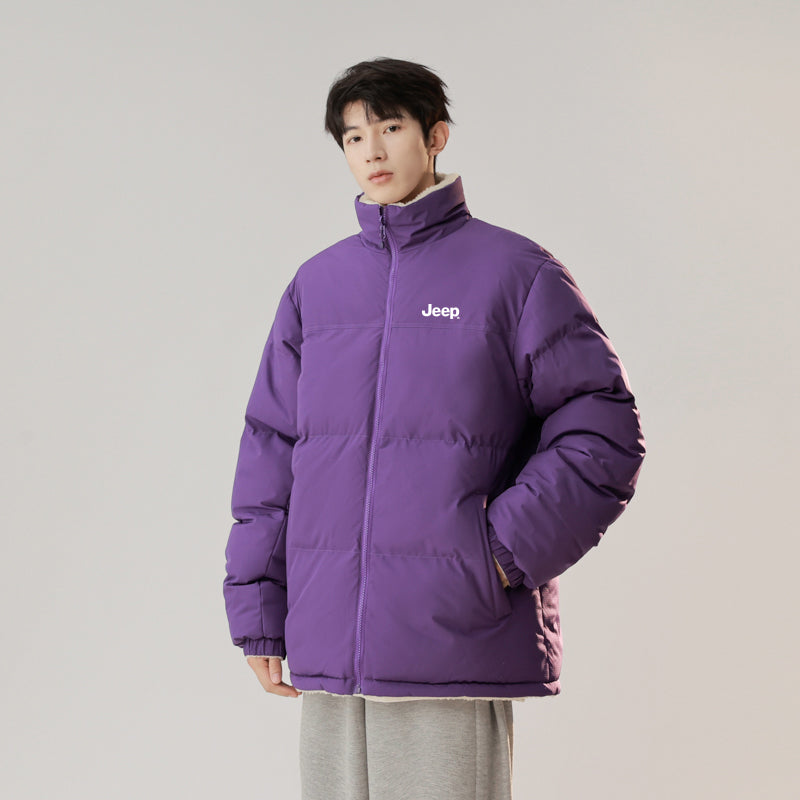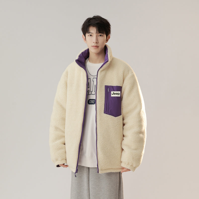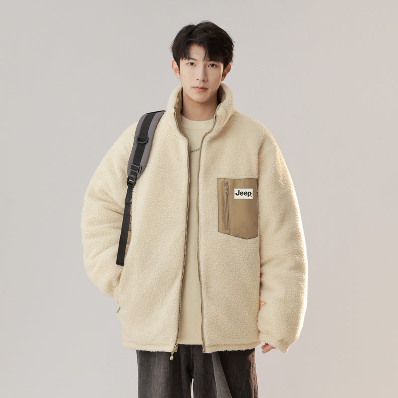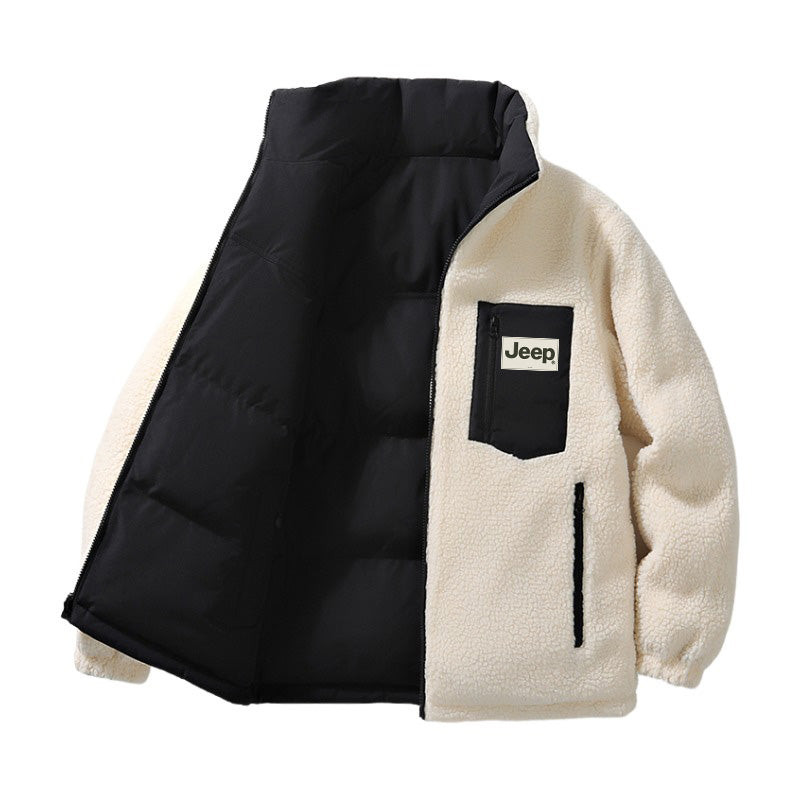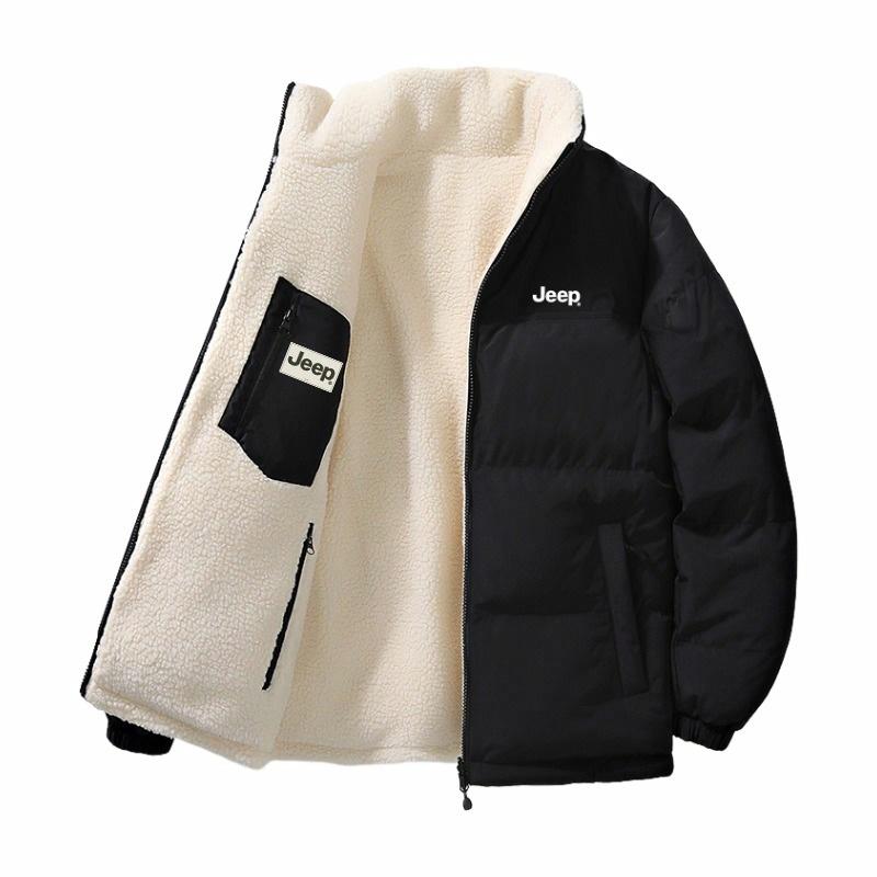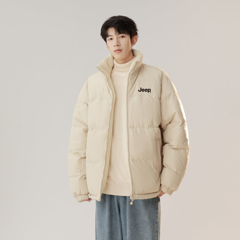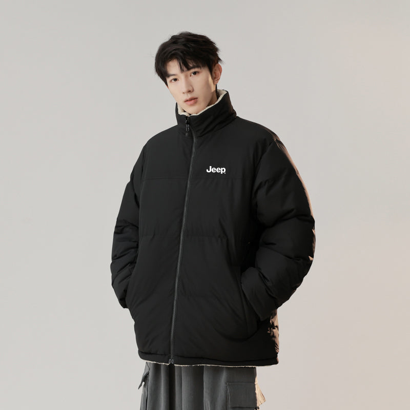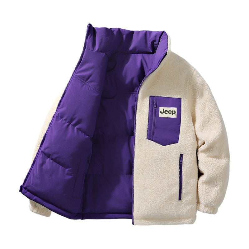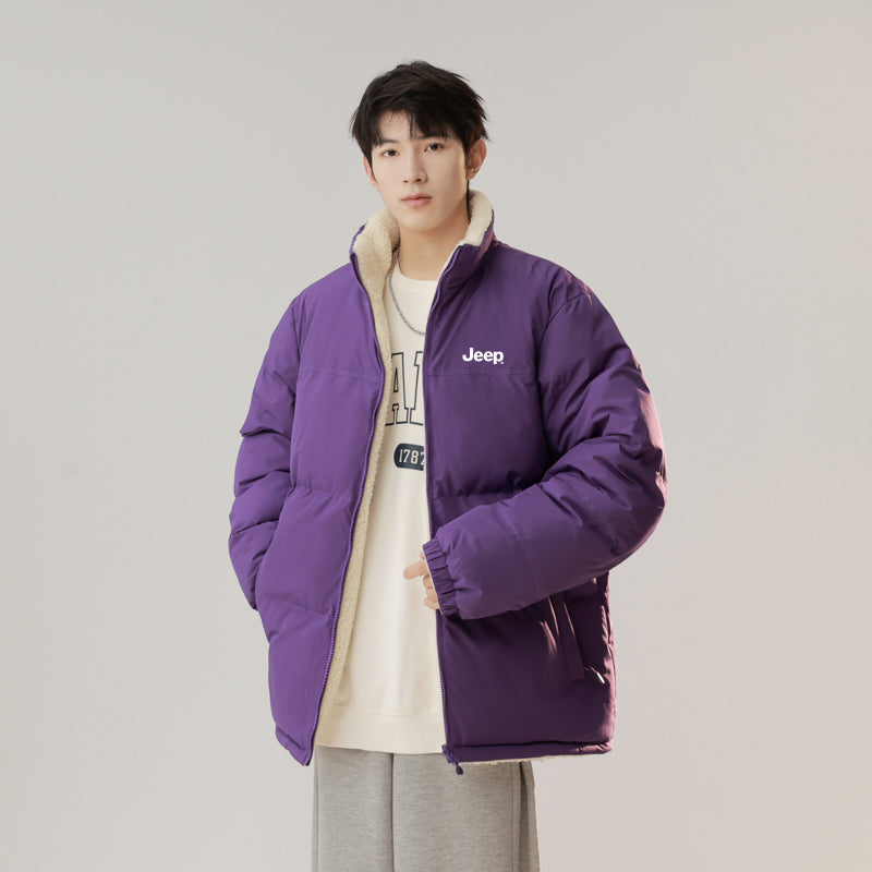 Ushbu qaytarib olinadigan, izolyatsiyalangan Amerika uslubidagi kurtka sun'iy mo'yna, tushirilgan yelkalar va logotipga ega. Ushbu keng, fermuarli poliester kurtka sovuq oylarda shahar kiyimlari uchun shinam va erkin ko'rinish yaratadi.