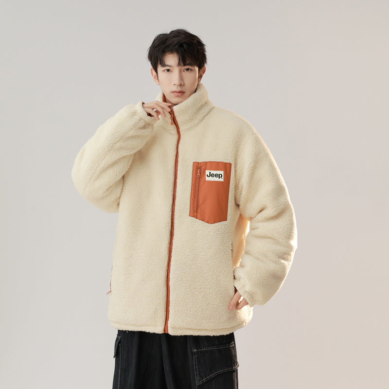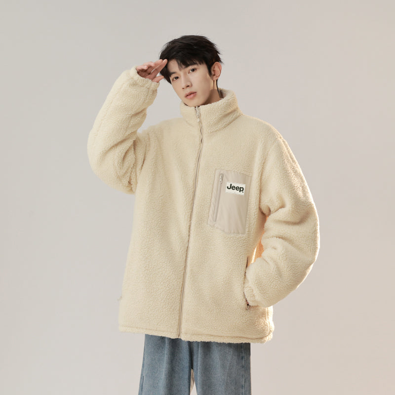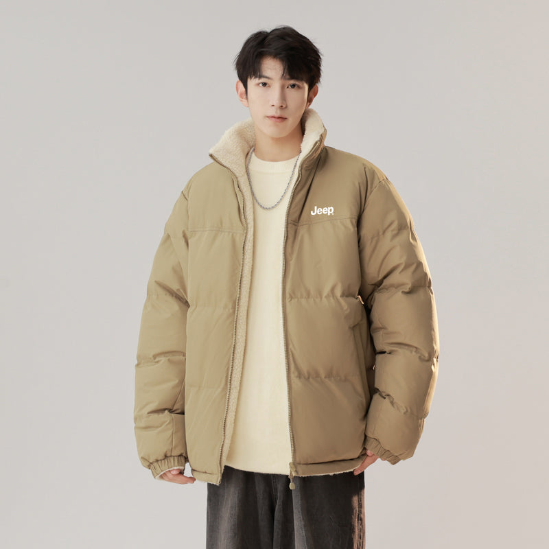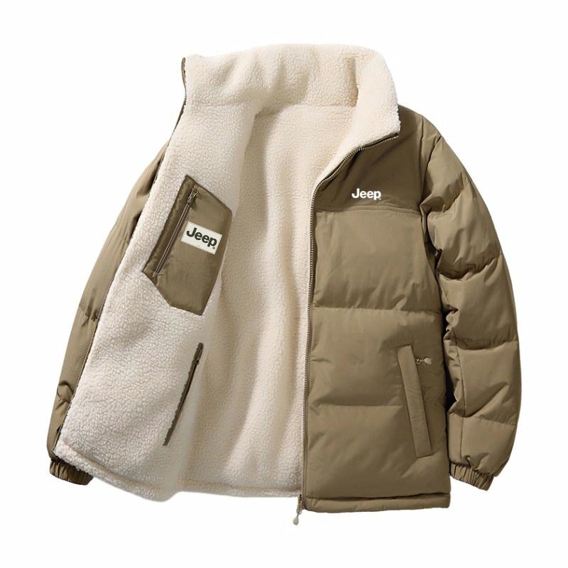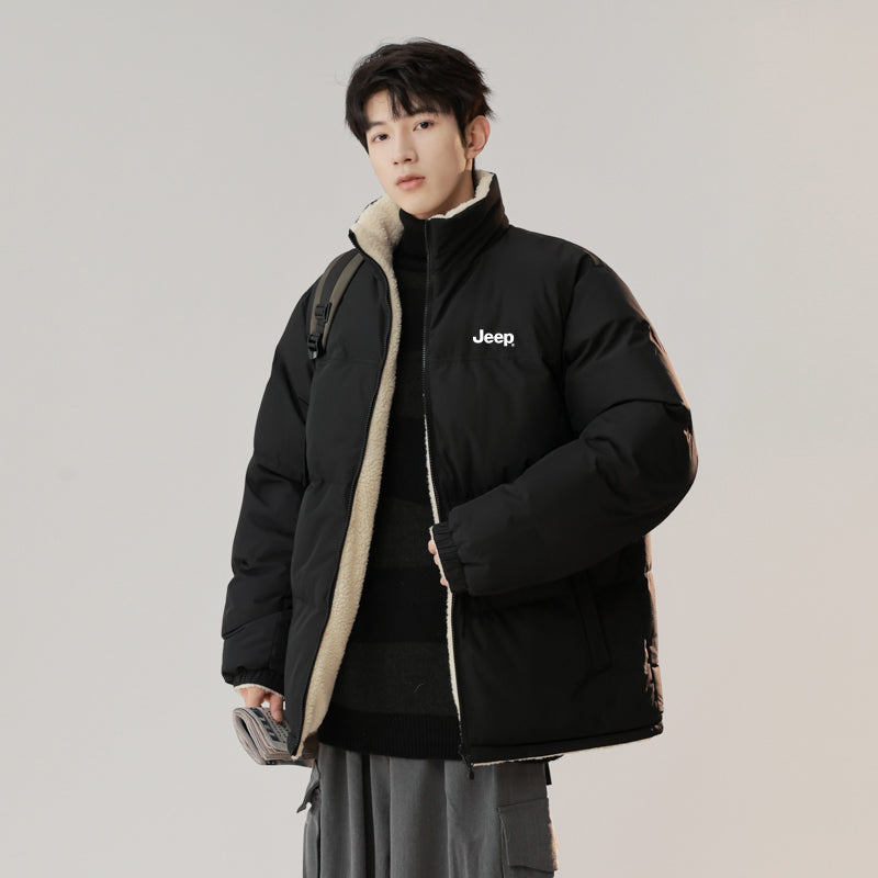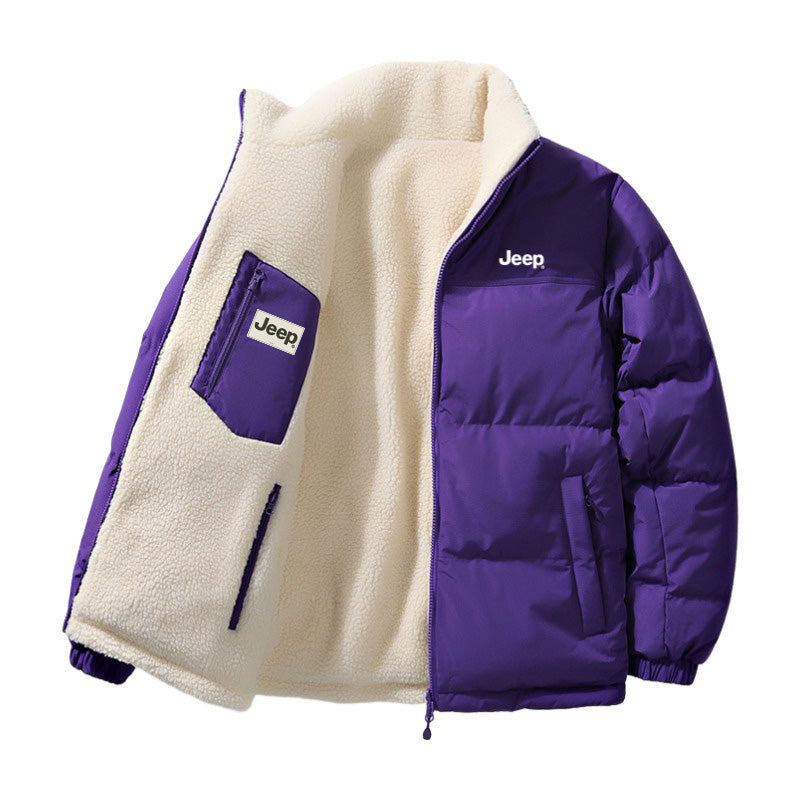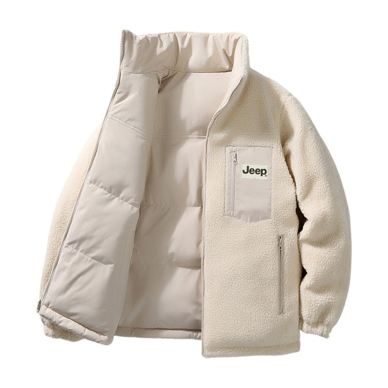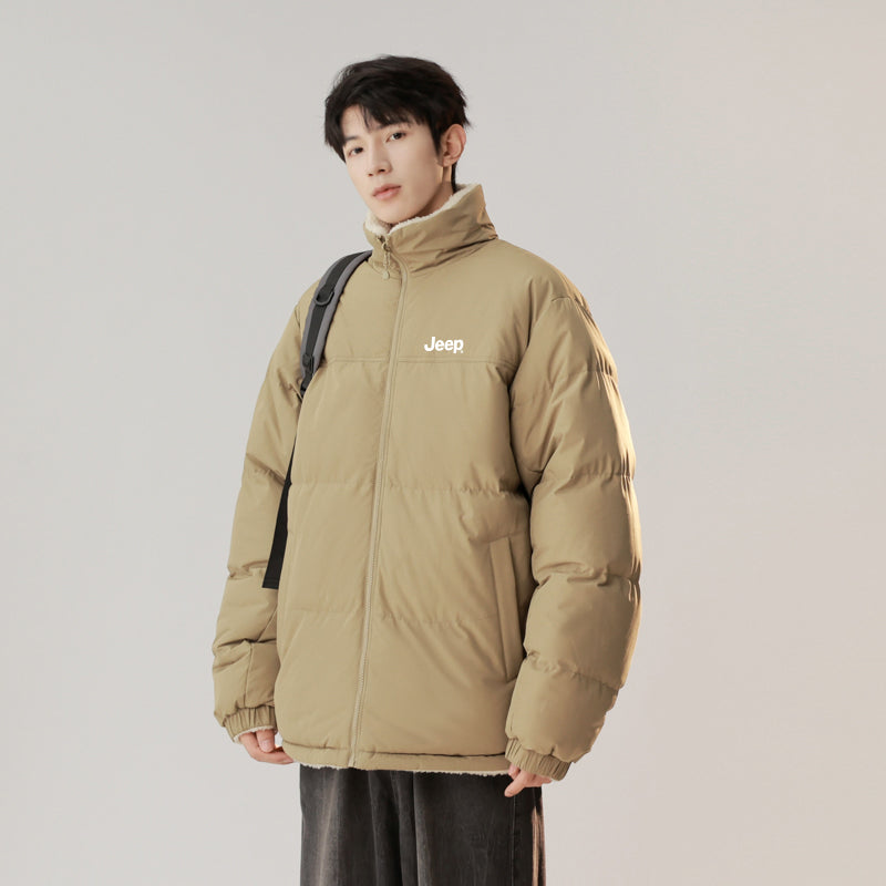 Ushbu qaytarib olinadigan, izolyatsiyalangan Amerika uslubidagi kurtka sun'iy mo'yna, tushirilgan yelkalar va logotipga ega. Ushbu keng, fermuarli poliester kurtka sovuq oylarda shahar kiyimlari uchun shinam va erkin ko'rinish yaratadi.