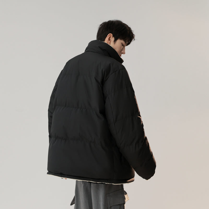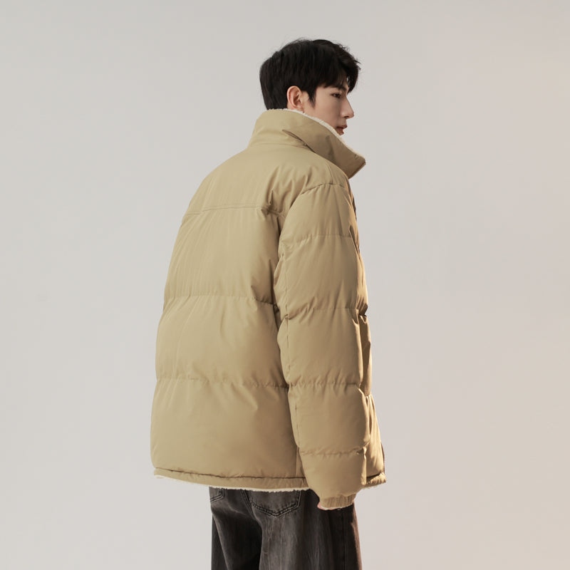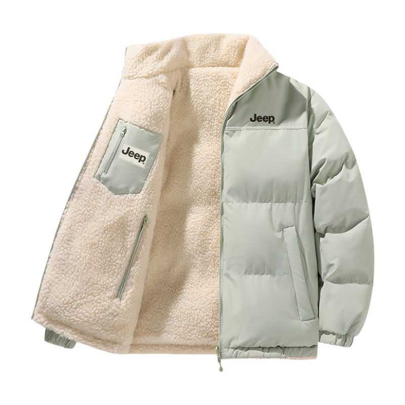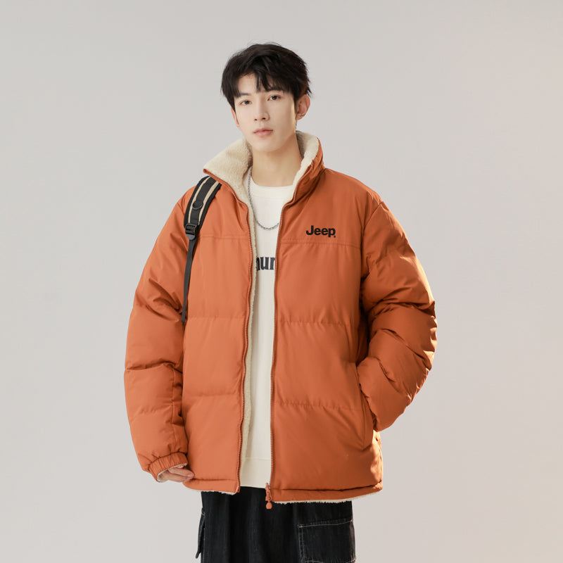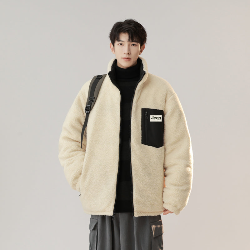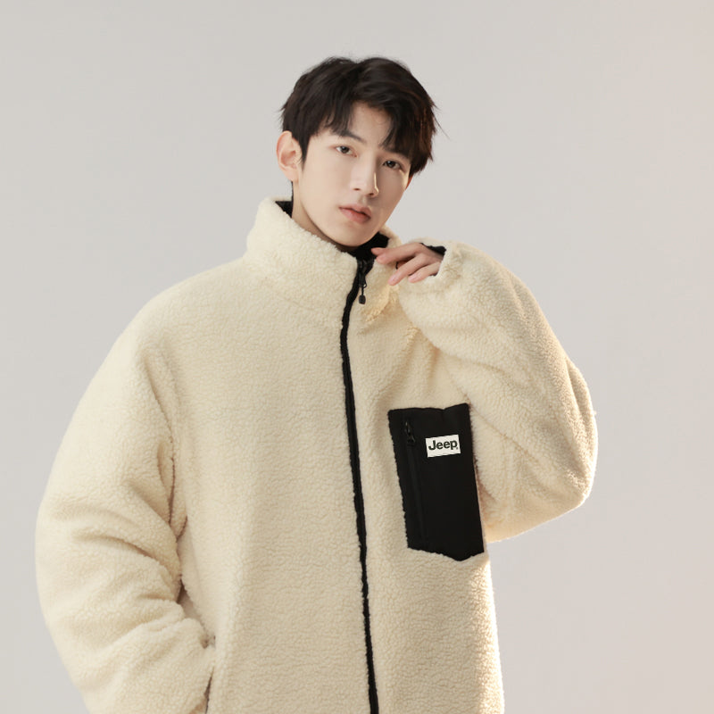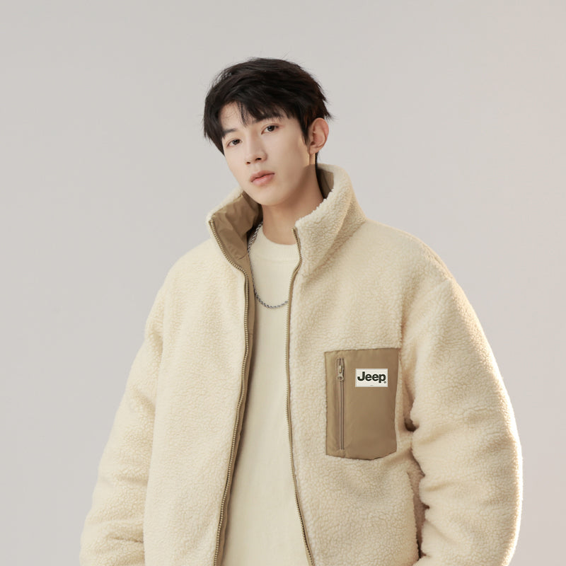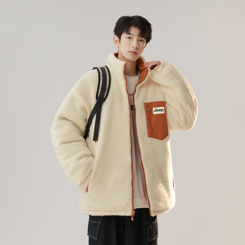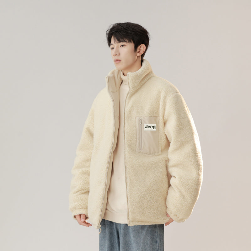 Ushbu qaytarib olinadigan, izolyatsiyalangan Amerika uslubidagi kurtka sun'iy mo'yna, tushirilgan yelkalar va logotipga ega. Ushbu keng, fermuarli poliester kurtka sovuq oylarda shahar kiyimlari uchun shinam va erkin ko'rinish yaratadi.