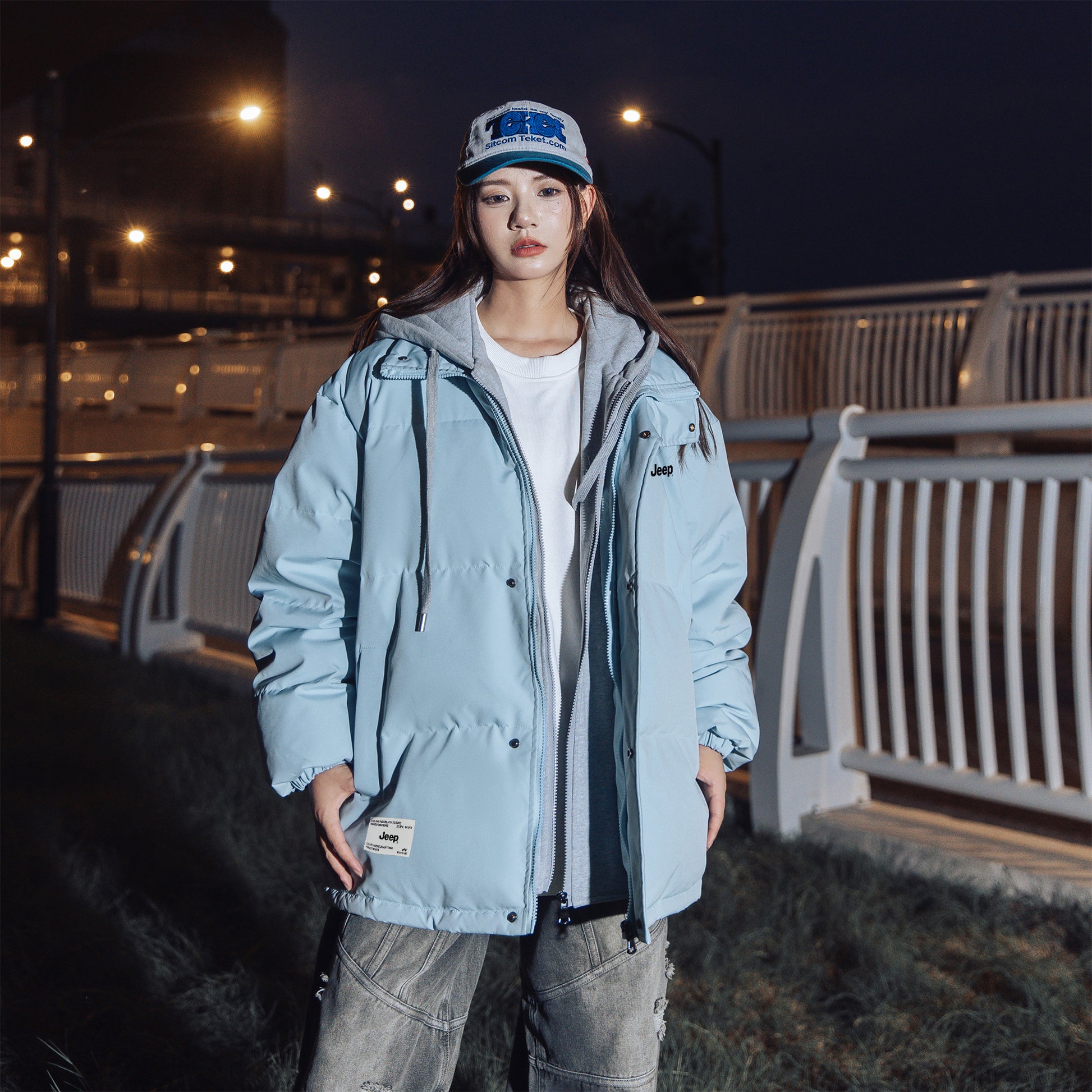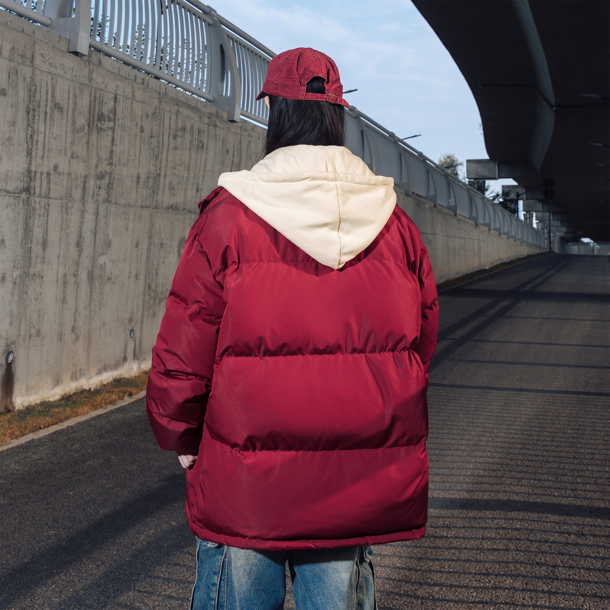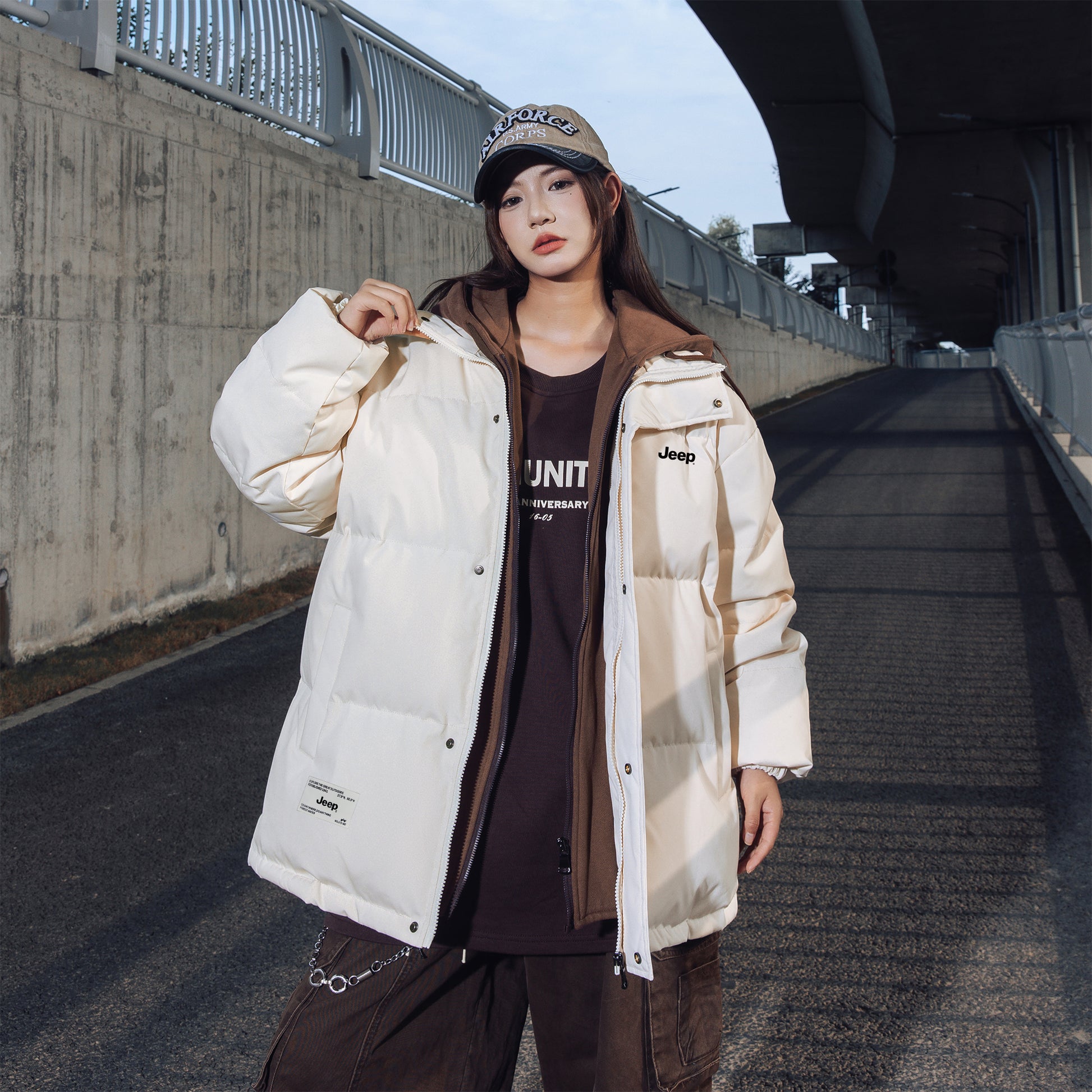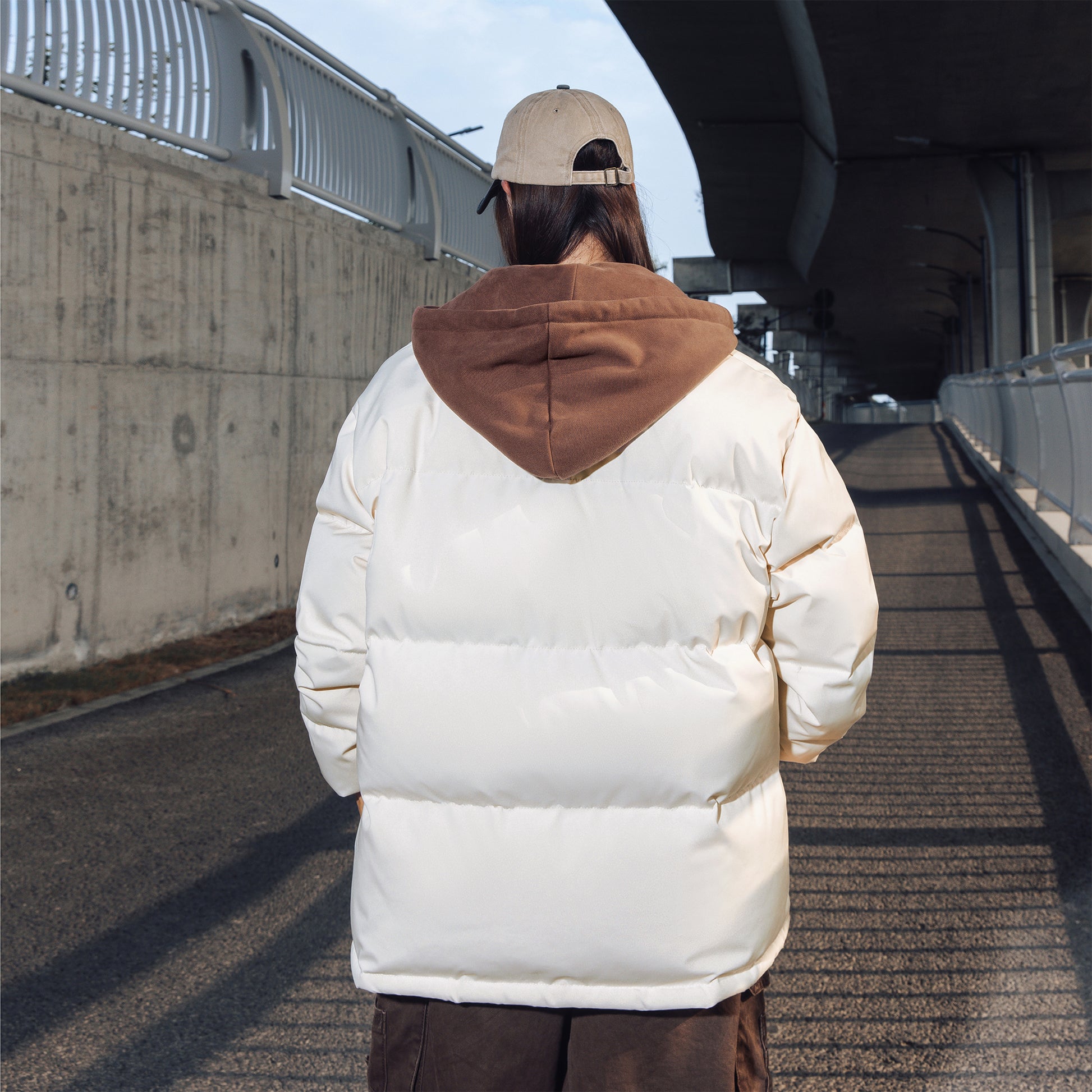 Amerika retro uslubidagi bu ko'p qatlamli pufli kurtka ko'cha kiyimlari estetikasini preppy elementlari bilan uyg'unlashtiradi. O'rdak puflari bilan to'ldirilgan, keng kapshonli, tik turadigan yoqali dizayn jonli va zamonaviy ko'rinishni yaratadi, sovuq havoda issiqlik va shamoldan himoya qiladi.