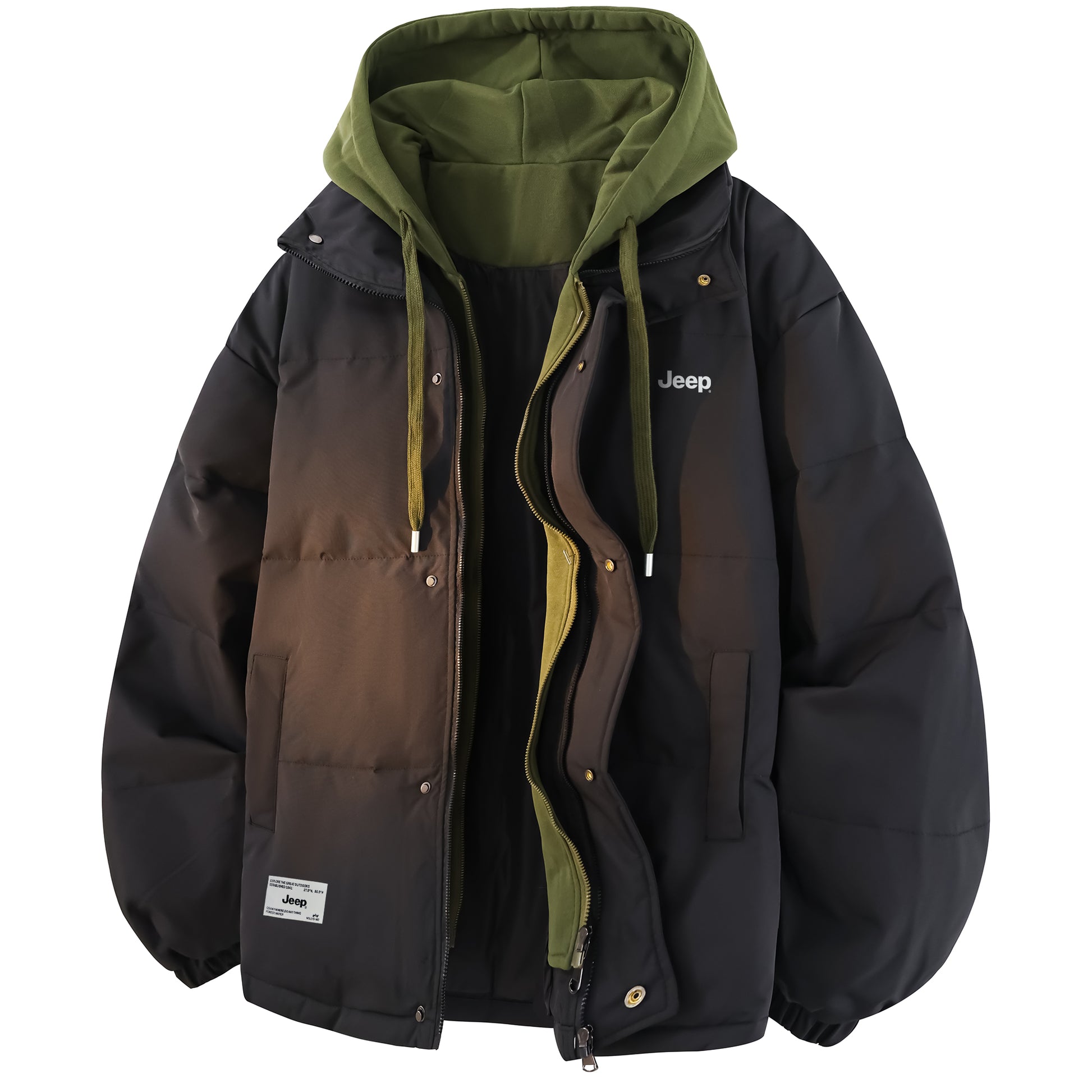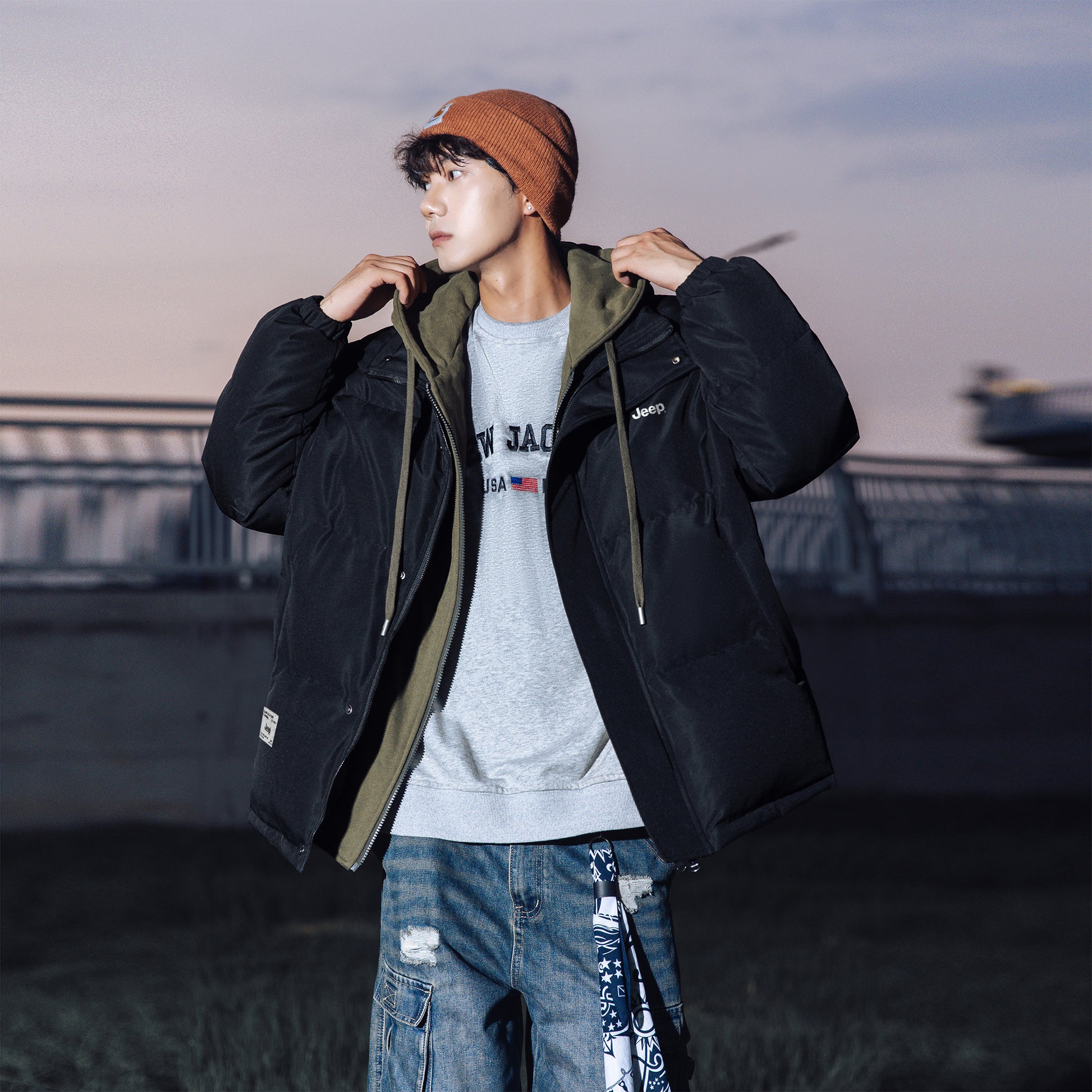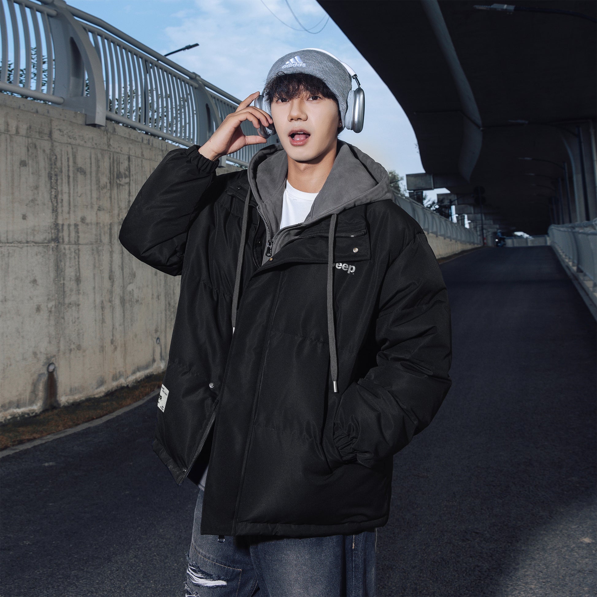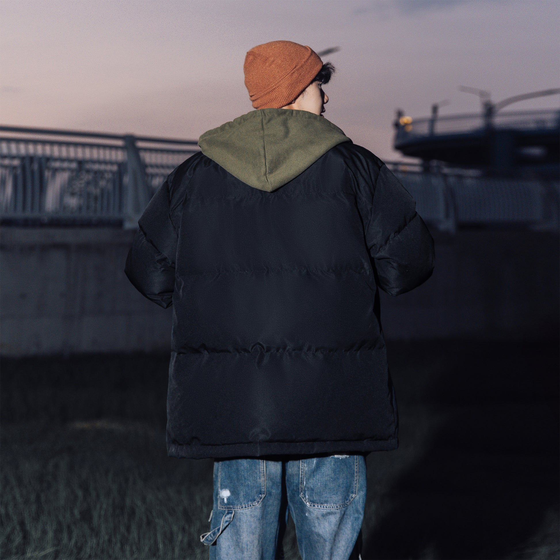 Amerika retro uslubidagi bu ko'p qatlamli pufli kurtka ko'cha kiyimlari estetikasini preppy elementlari bilan uyg'unlashtiradi. O'rdak puflari bilan to'ldirilgan, keng kapshonli, tik turadigan yoqali dizayn jonli va zamonaviy ko'rinishni yaratadi, sovuq havoda issiqlik va shamoldan himoya qiladi.