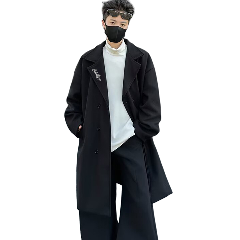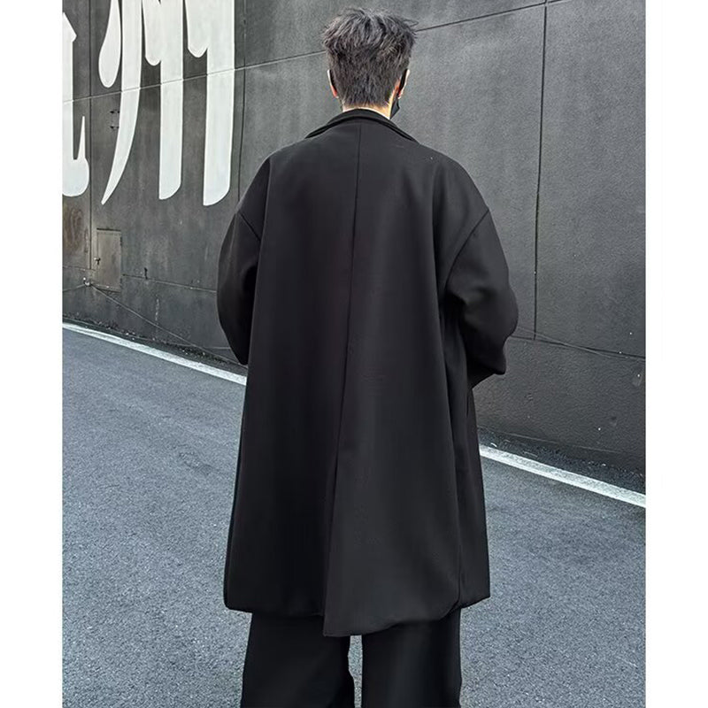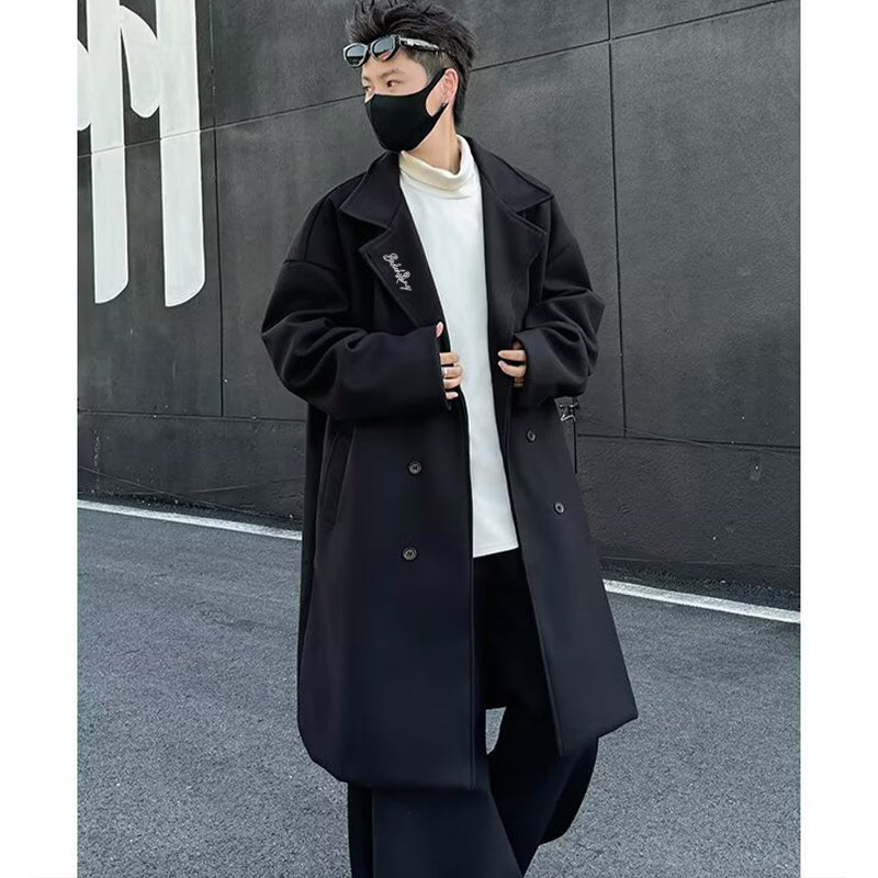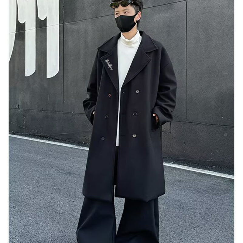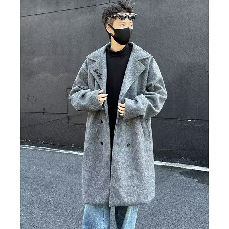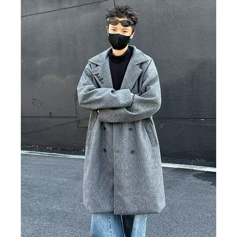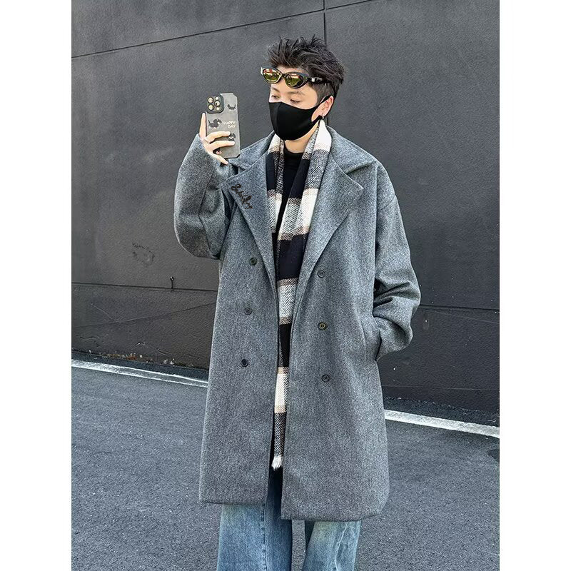 Mato chizig'i kichik odamlar koreyscha bir ko'krakli uzun bo'sh qulay katta cho'ntaklar kostyum yoqasi issiq Britaniya uslubidagi jun tvid palto katta ma'noda trench palto tasodifiy ko'p qirrali ochiladigan yelkali uzun yengli