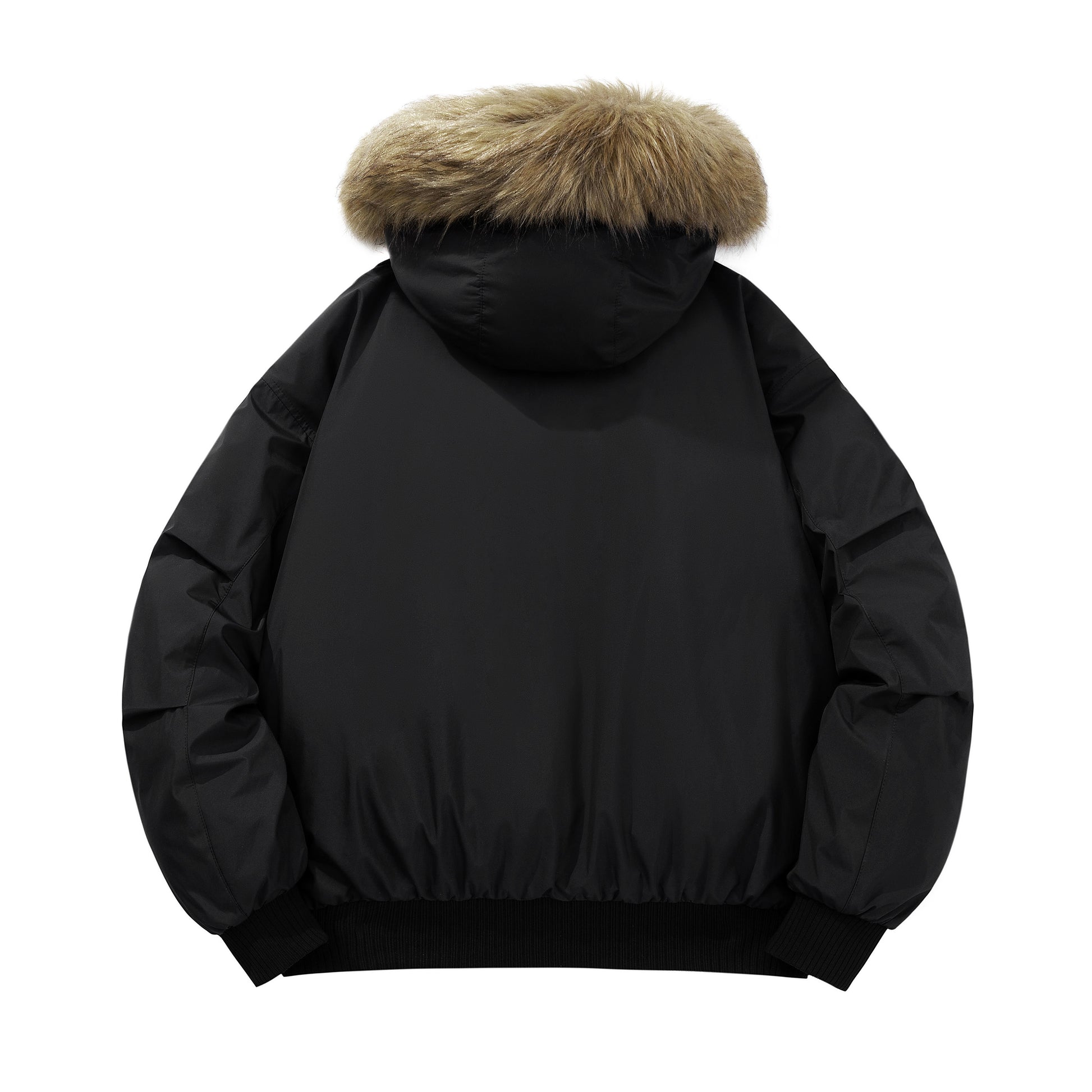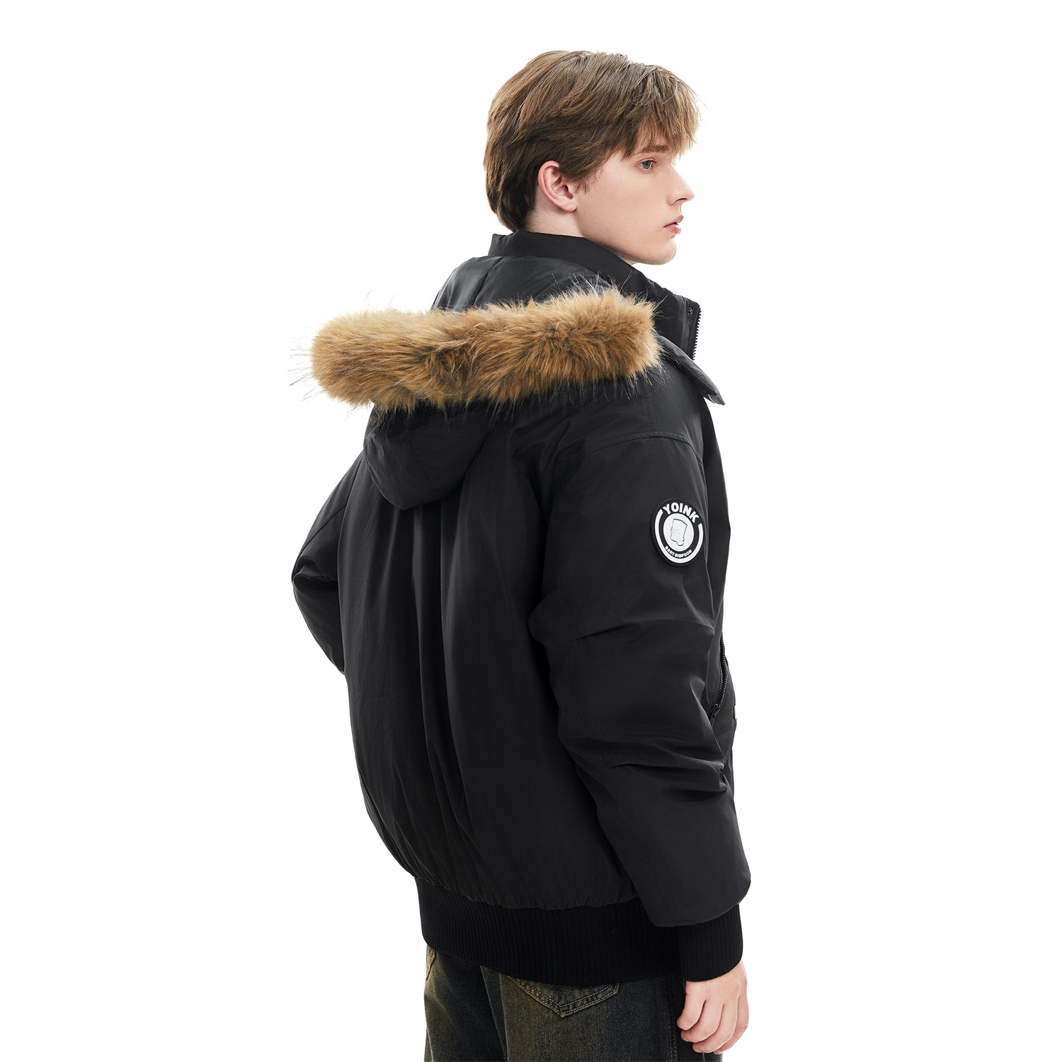 Ushbu izolyatsiyalangan parka kurtkasi utilitar, retro uslubda, kapshon, mo'ynali bezak, pastki qismdan himoya va tushirilgan yelkaga ega. Uning erkin o'lchami, ikki tomonlama yopilishi va kichik kashta tikilgan logotipi toza va zamonaviy ko'rinishni yaratadi, qattiq sovuqda iliqlik baxsh etadi.