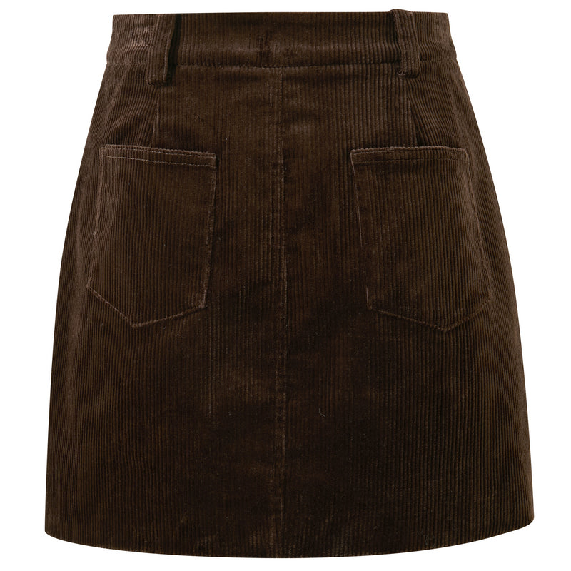 Yuqori bel va yarim quyoshga mos keladigan qisqa korduroy A-line yubka. Oddiy va qulay, kundalik kiyim uchun juda mos keladi.