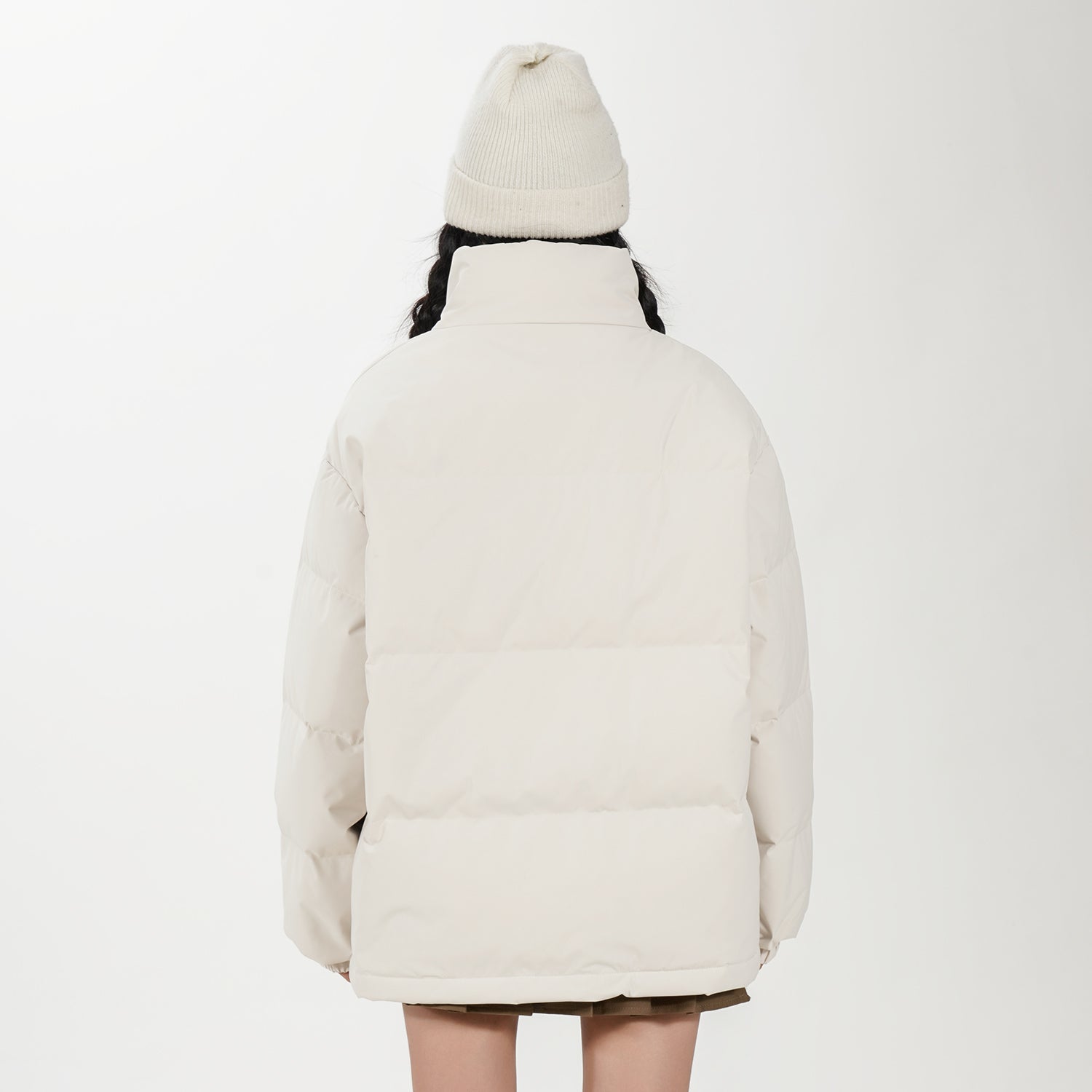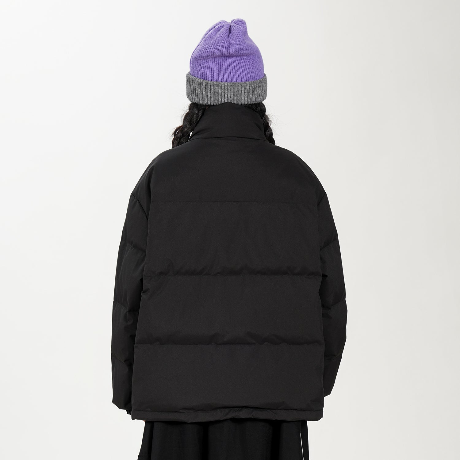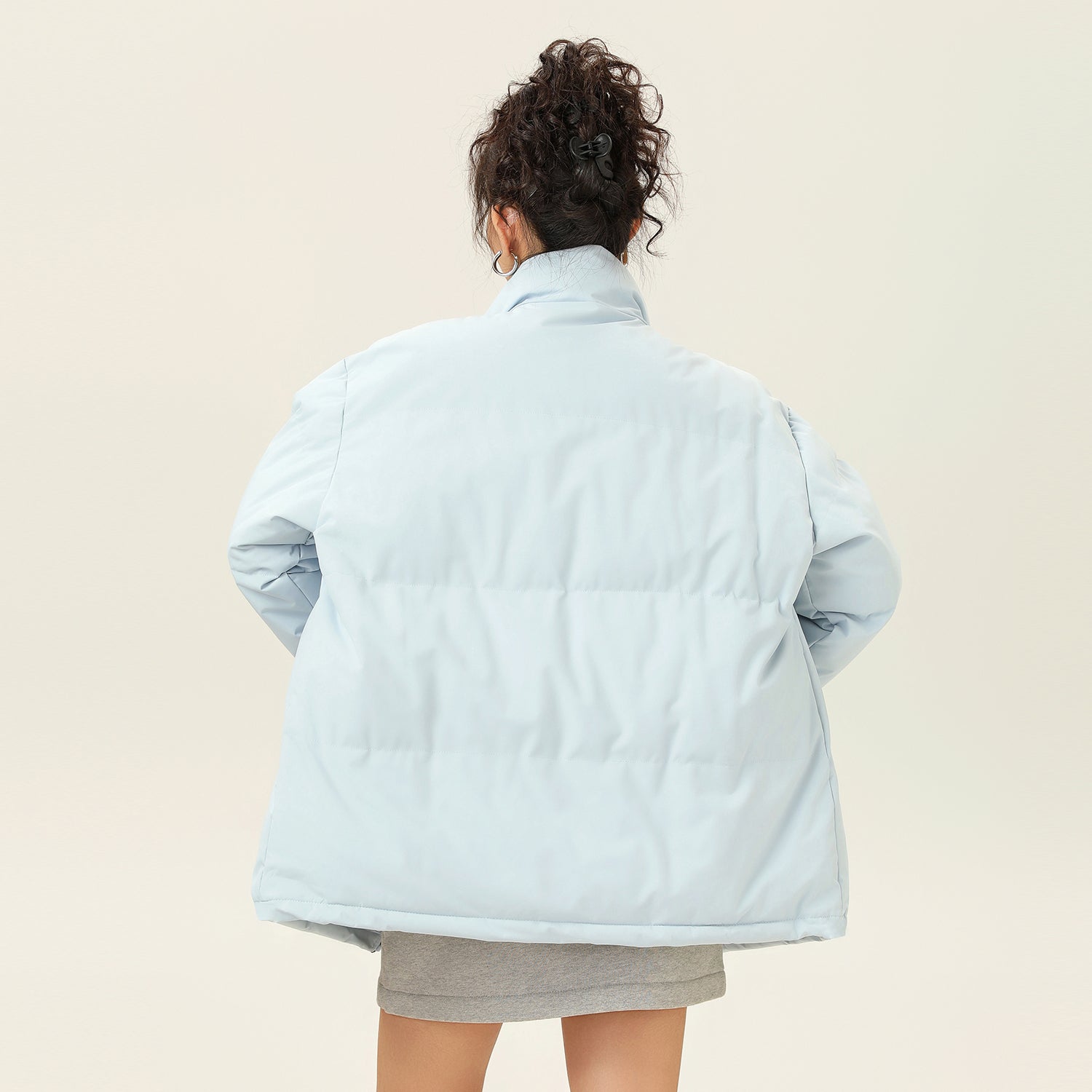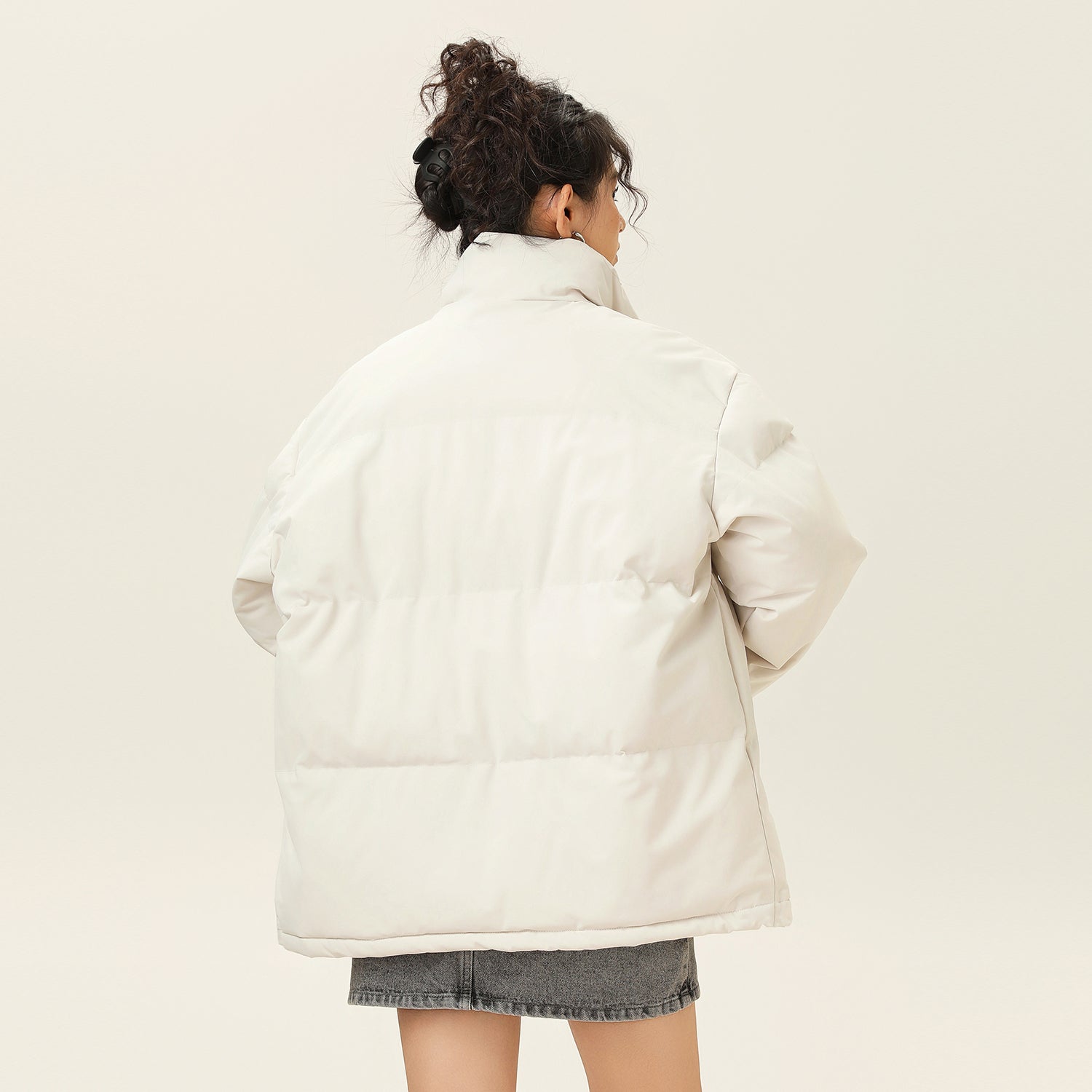 Amerika va Koreya uslublarida, gradient dizaynli, tik turgan yoqali, tushirilgan yelkali va yuqori texnologiyali membranali kalta pufli kurtka. Ushbu keng model o'rdak pufli mato bilan to'ldirilgan bo'lib, zamonaviy, zamonaviy ko'rinish yaratadi va shahar kiyimlari uchun sovuqdan samarali himoya qiladi.
