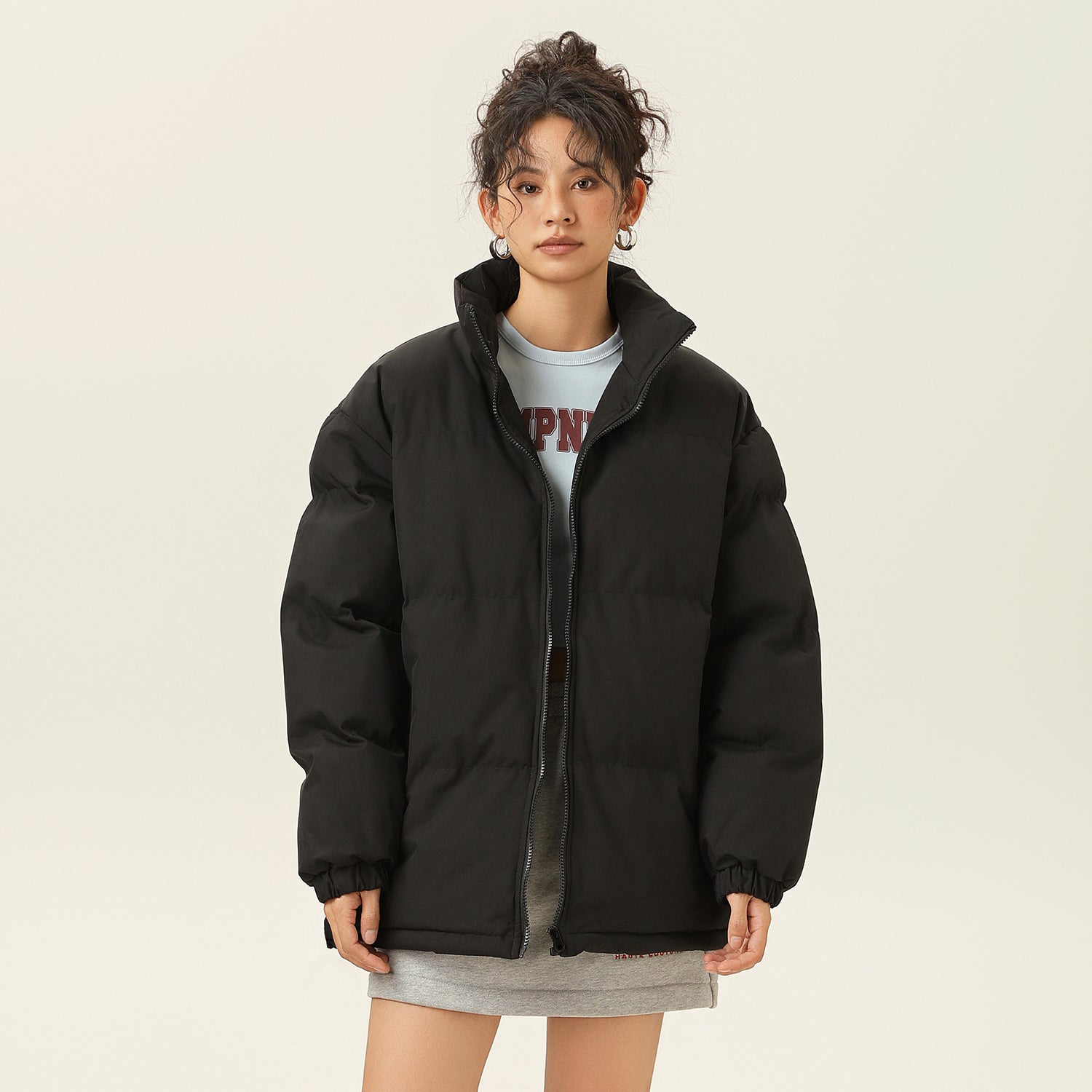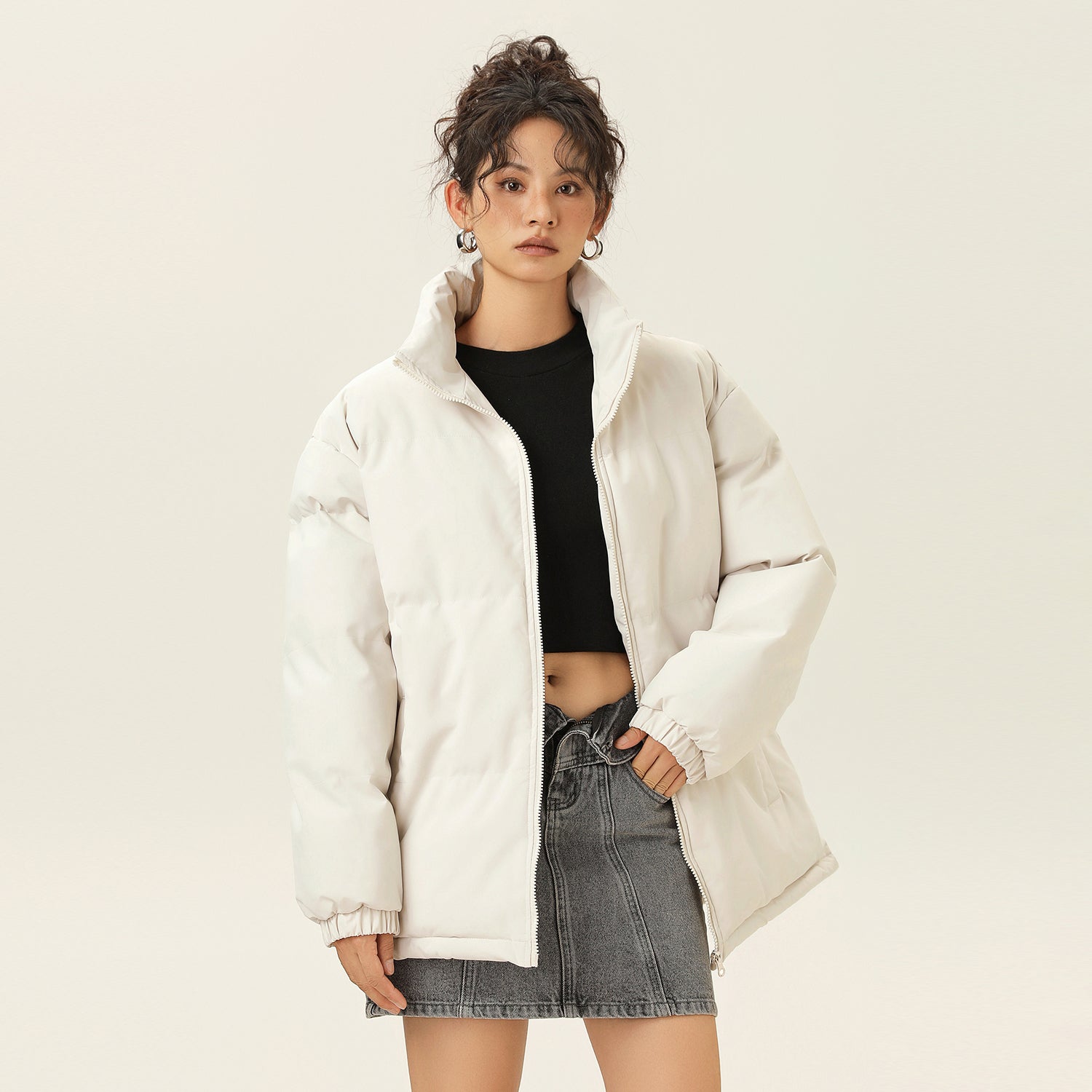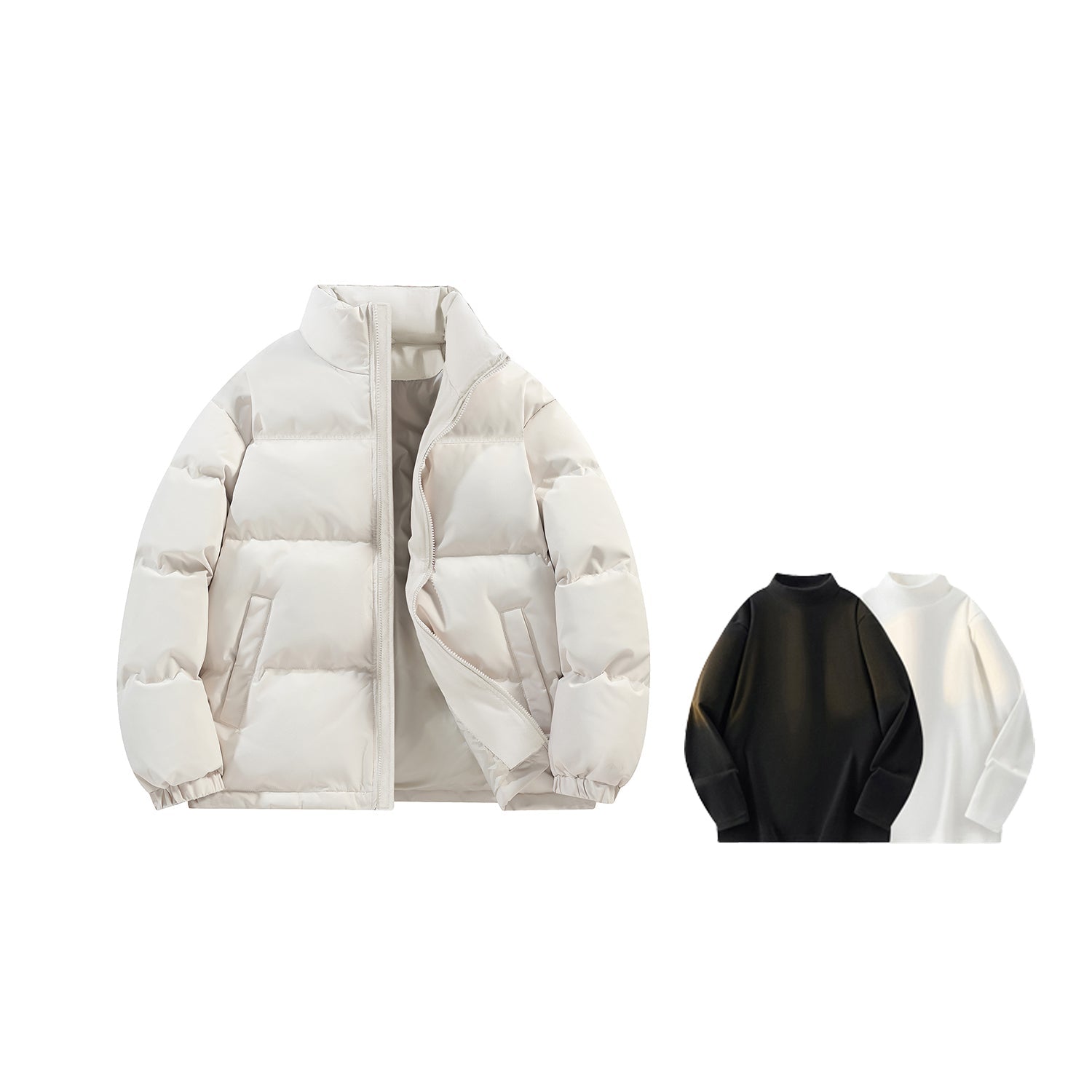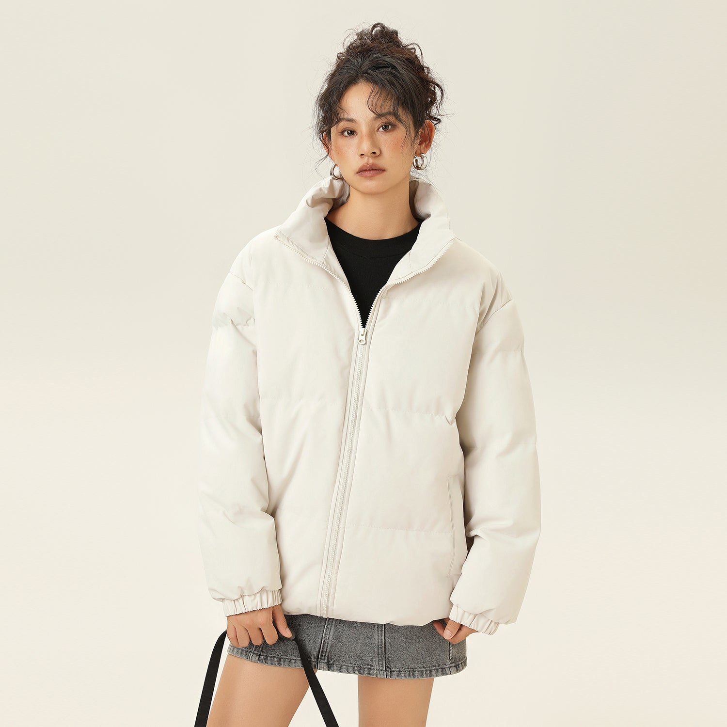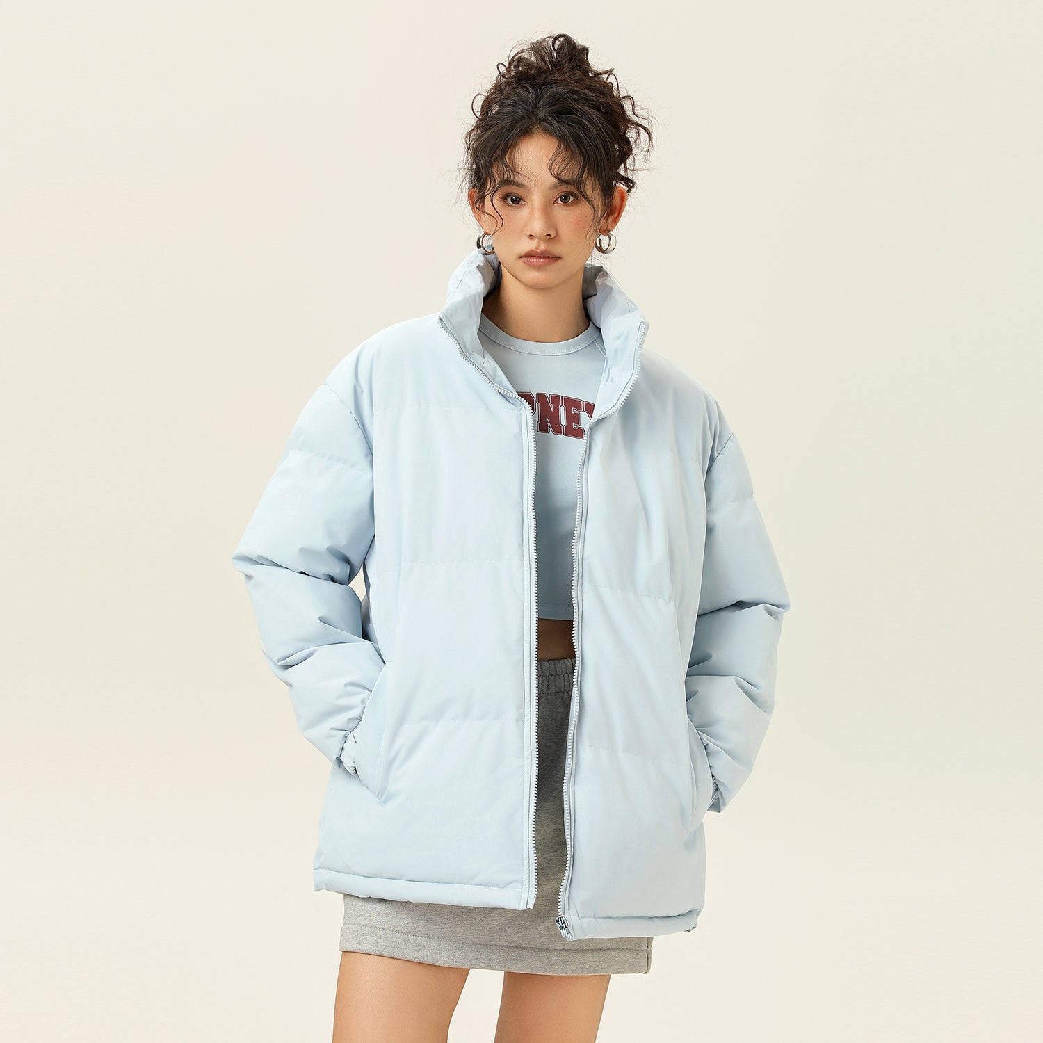 Amerika va Koreya uslublarida, gradient dizaynli, tik turgan yoqali, tushirilgan yelkali va yuqori texnologiyali membranali kalta pufli kurtka. Ushbu keng model o'rdak pufli mato bilan to'ldirilgan bo'lib, zamonaviy, zamonaviy ko'rinish yaratadi va shahar kiyimlari uchun sovuqdan samarali himoya qiladi.