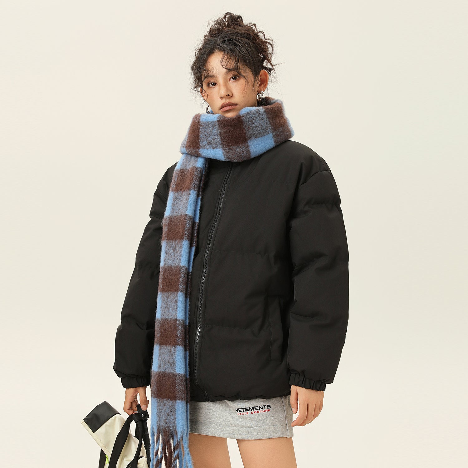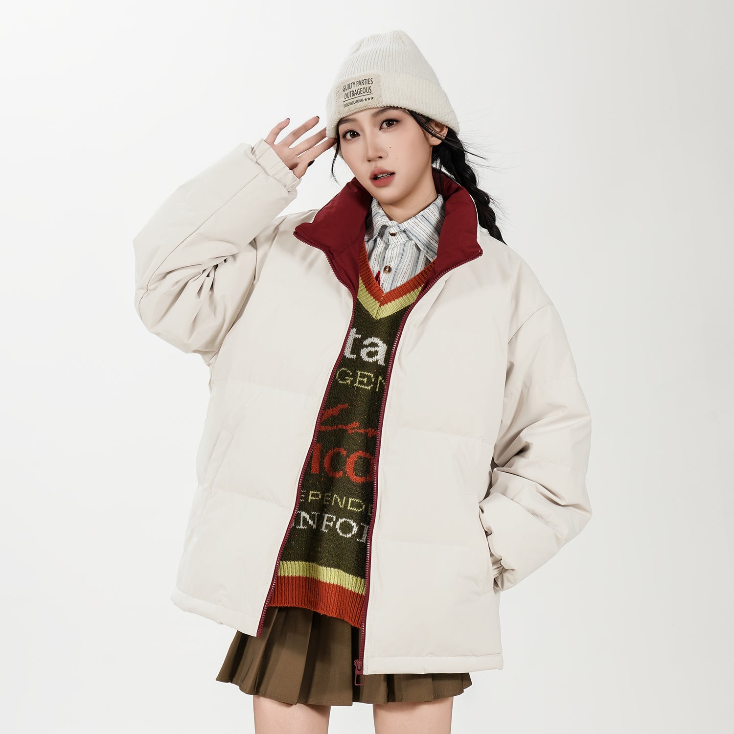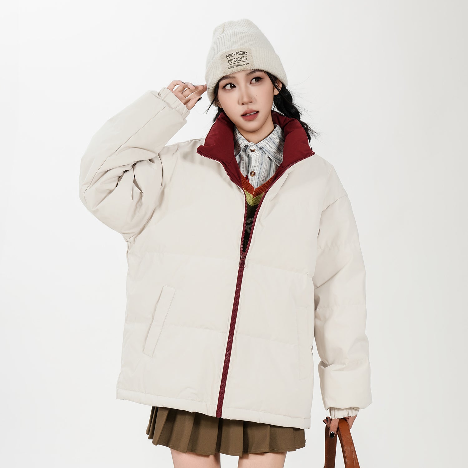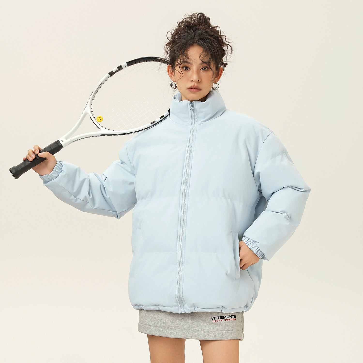Amerika va Koreya uslublarida, gradient dizaynli, tik turgan yoqali, tushirilgan yelkali va yuqori texnologiyali membranali kalta pufli kurtka. Ushbu keng model o'rdak pufli mato bilan to'ldirilgan bo'lib, zamonaviy, zamonaviy ko'rinish yaratadi va shahar kiyimlari uchun sovuqdan samarali himoya qiladi.