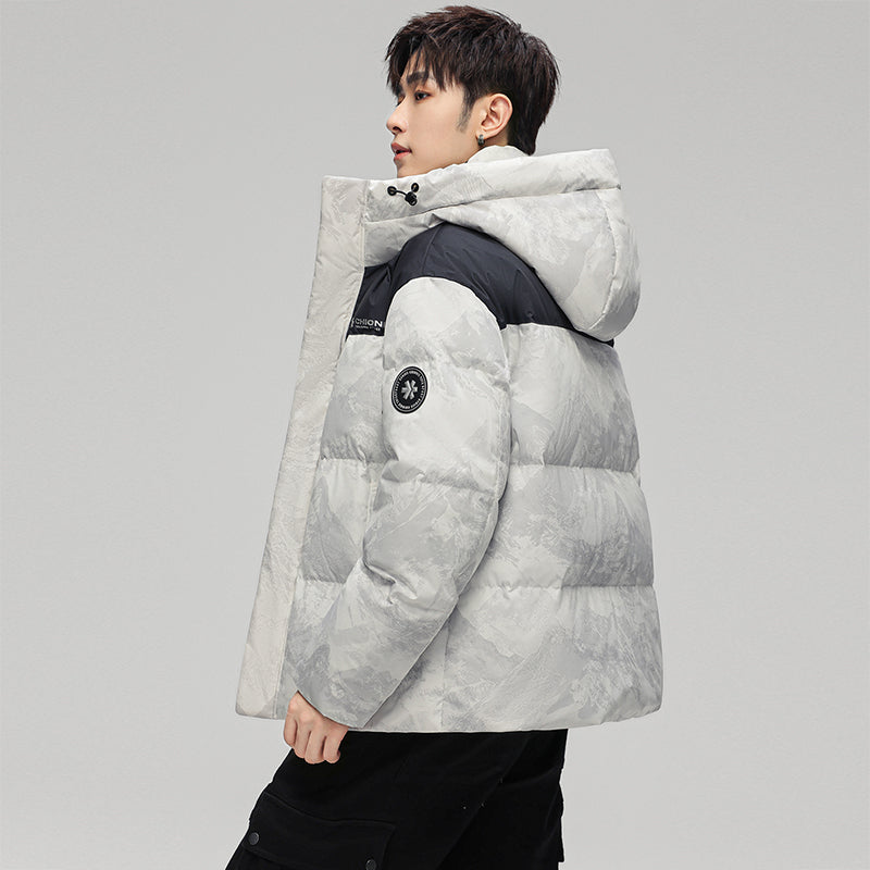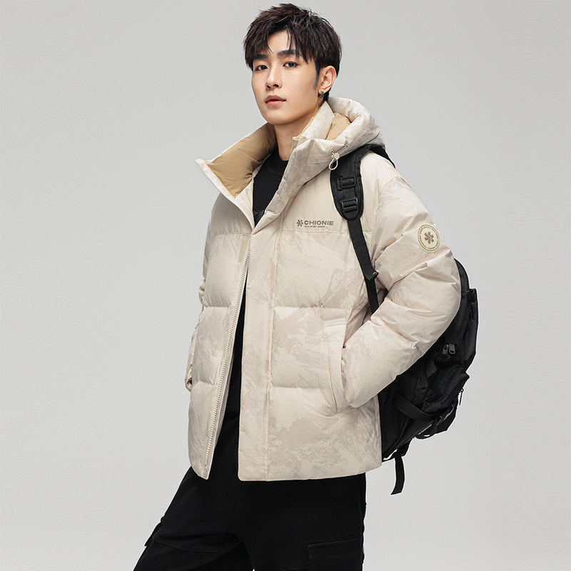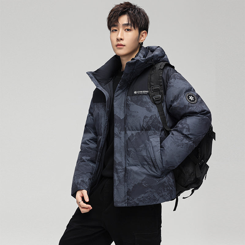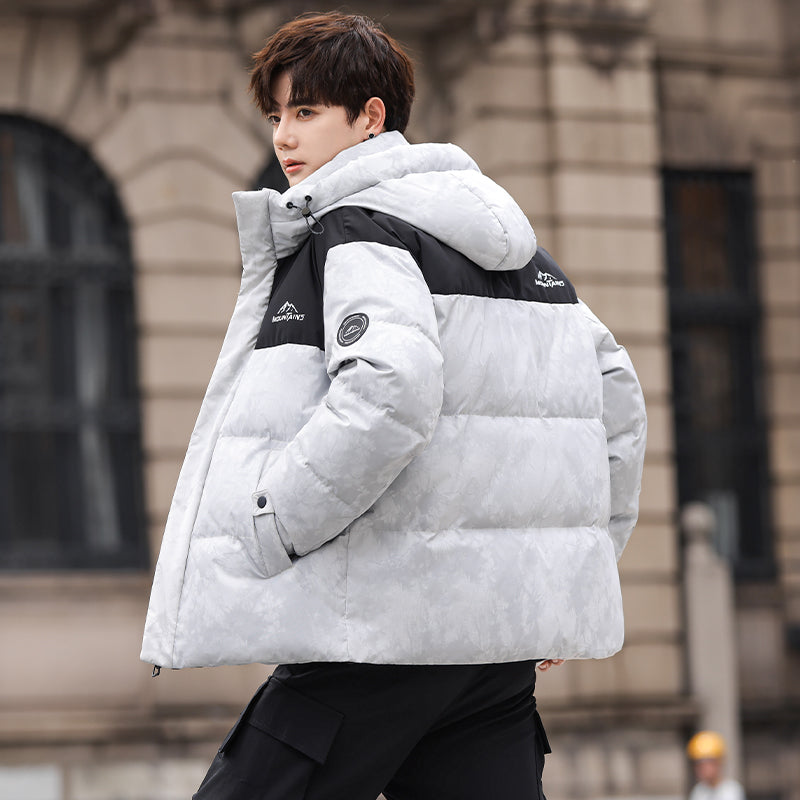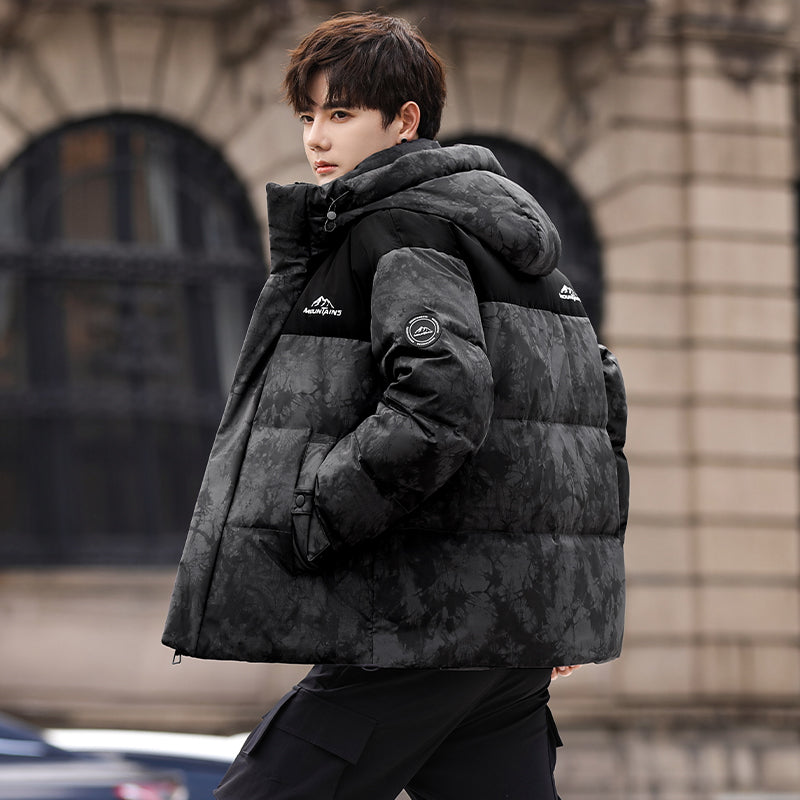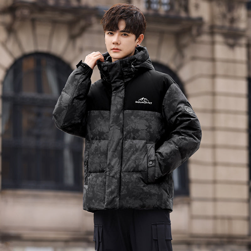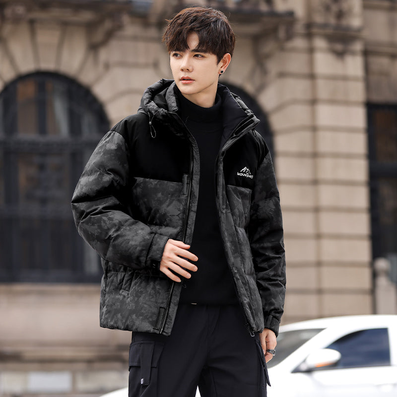 Ushbu kalta, zamonaviy koreyscha uslubdagi puffer kurtka kamuflyaj printi, kapshon va tushirilgan yelkalar bilan utilitar dizaynga ega. Ushbu o'rdak momig'i bilan to'ldirilgan va shamol va suv o'tkazmaydigan bo'lib, sovuq oylarda ham ochiq havoda o'tkaziladigan mashg'ulotlar, ham shahar kiyimlari uchun zamonaviy ko'rinish yaratadi.