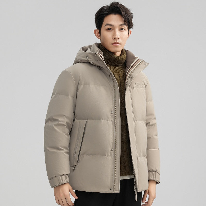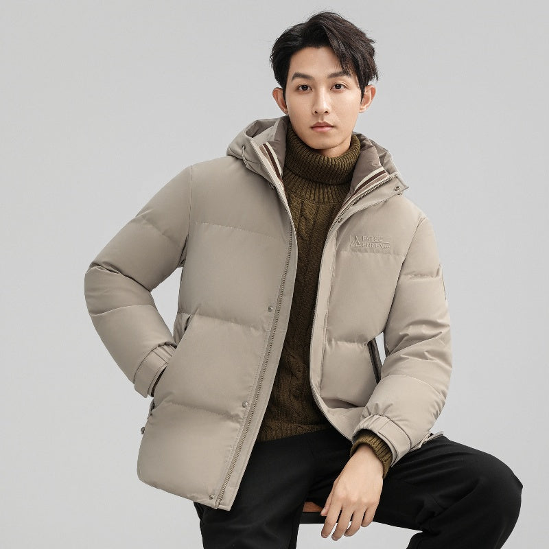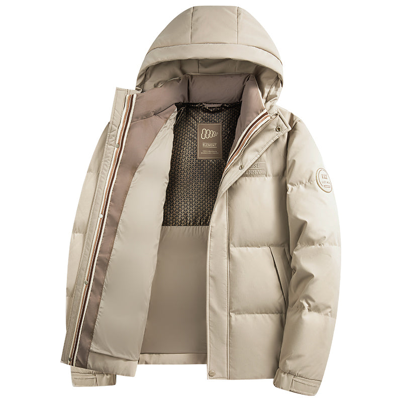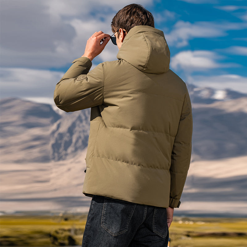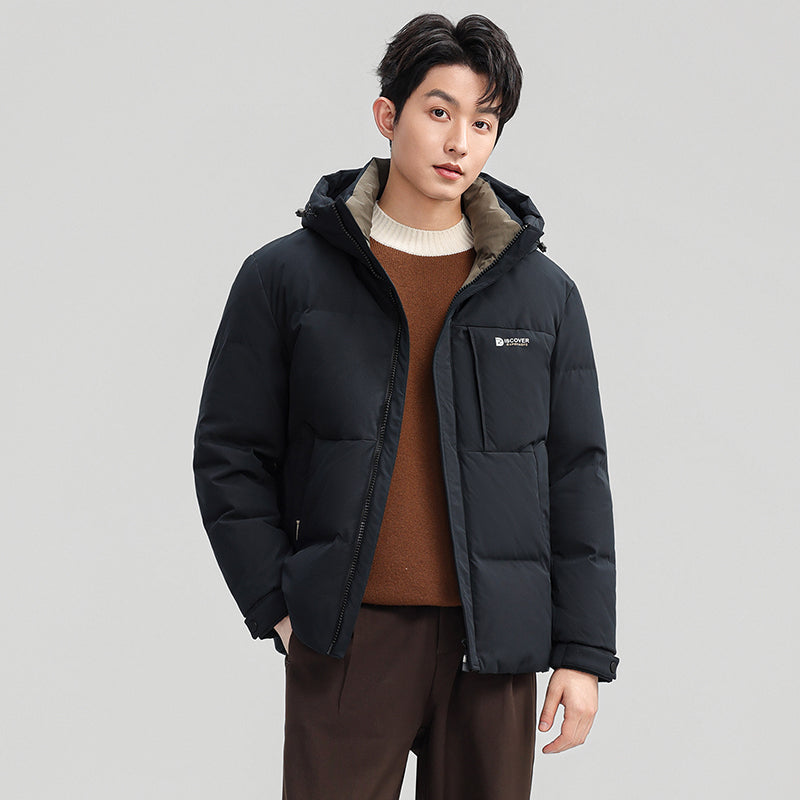 Короткий пуховик с капюшоном и технологией нагрева на основе графена, выполненный в минималистичном корейском стиле. Модель наполнена утиным пухом высокой очистки, обеспечивая тепло, легкость и защиту от ветра и влаги.
