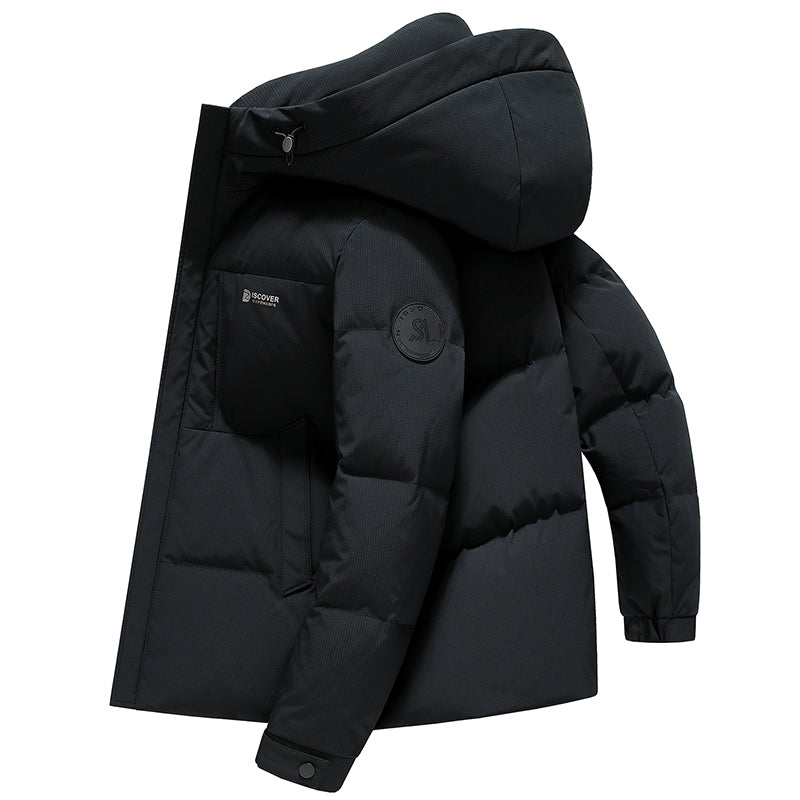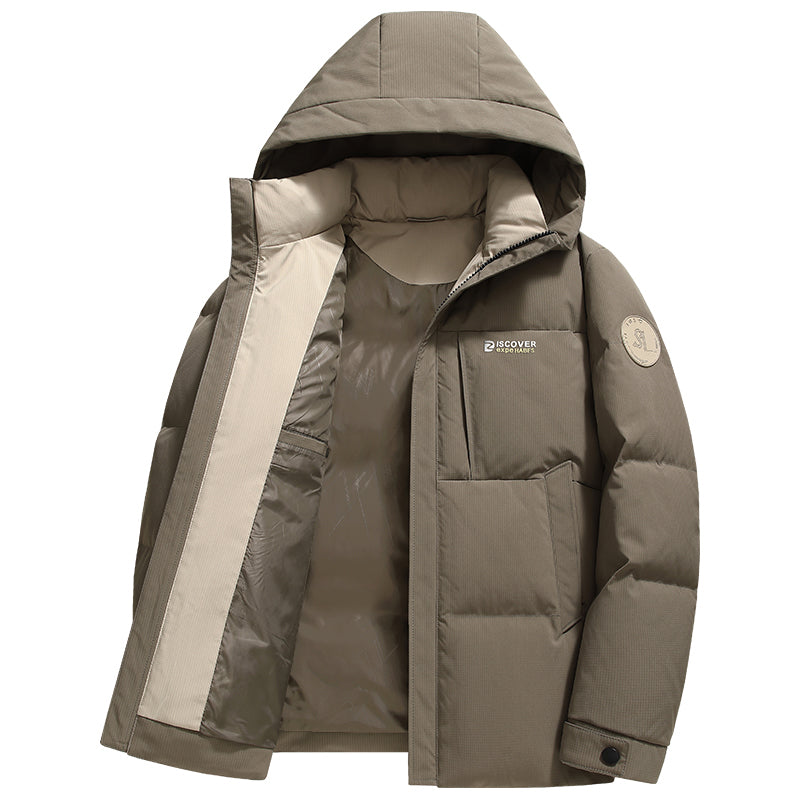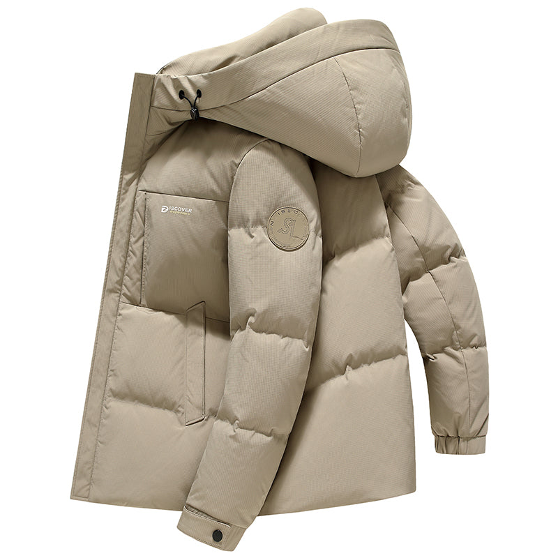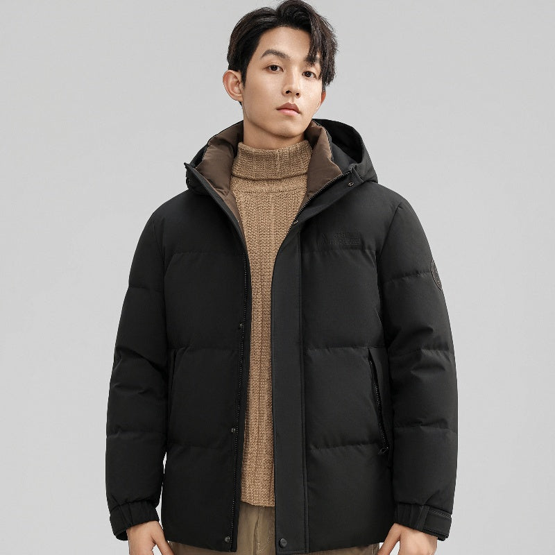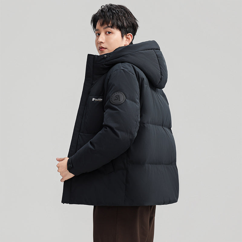 Короткий пуховик с капюшоном и технологией нагрева на основе графена, выполненный в минималистичном корейском стиле. Модель наполнена утиным пухом высокой очистки, обеспечивая тепло, легкость и защиту от ветра и влаги.