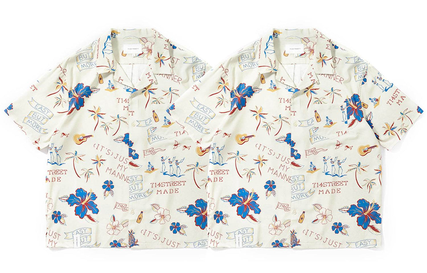 Gavayi gulli dizaynidagi yapon retro qisqa yengli ko'ylagi 714Street. Ushbu engil va erkin uslub sovg'a qutisiga kiradi, bu uni ajoyib sovg'a varianti va yozgi shkafga qo'shimcha qiladi.