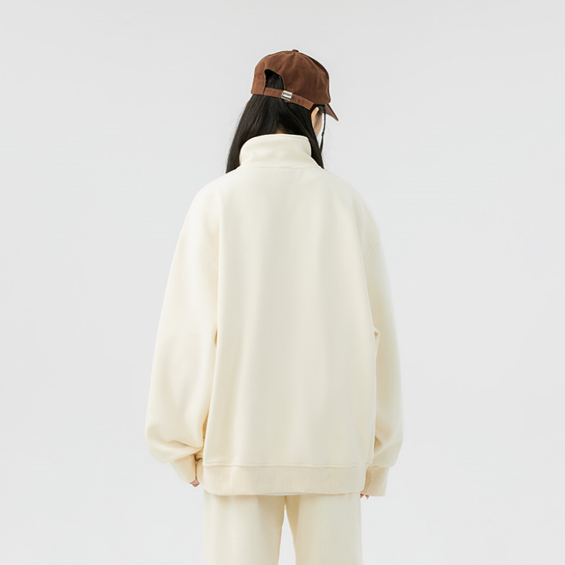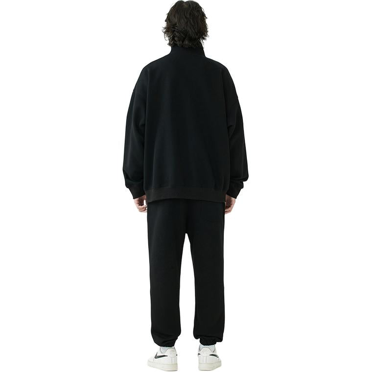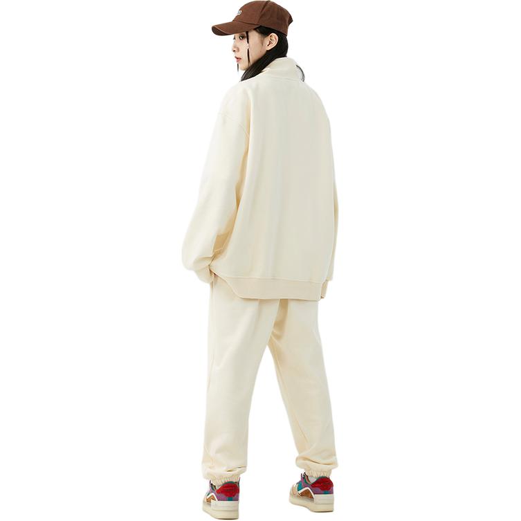 Свободный спортивный костюм в стиле колледж с логотипом бренда, состоящий из толстовки на молнии с воротником стойкой и брюк на шнурке. Модель с заниженной линией плеча выполнена из мягкой смесовой ткани для комфорта и расслабленного повседневного стиля.