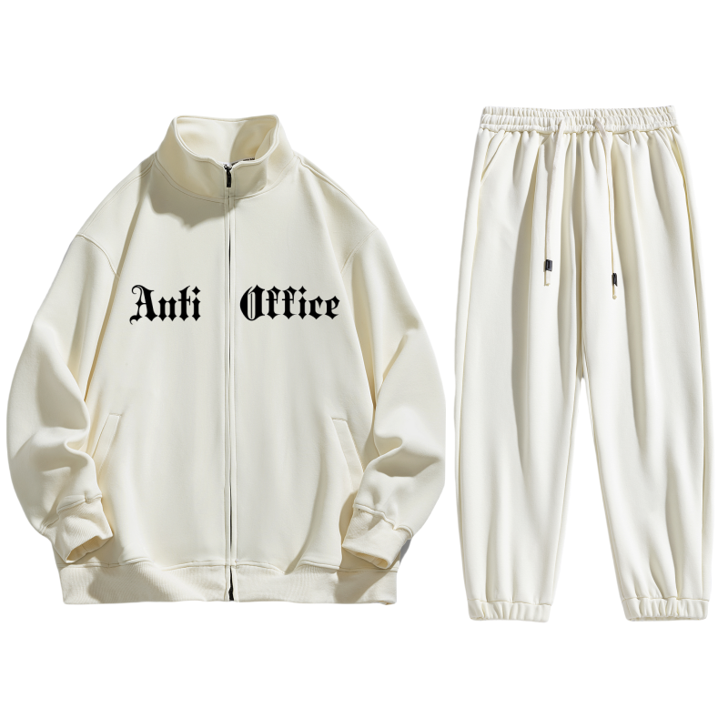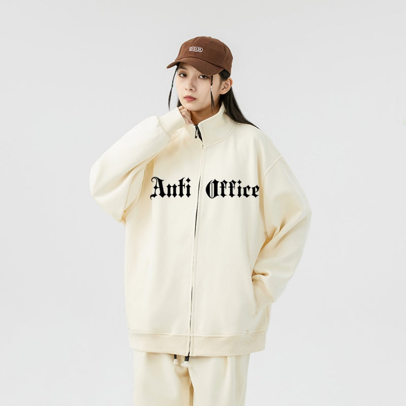 Anti-ofis kolleji uslubidagi Amerika logotipi harflari bosilgan yoqa uzun yengli kardigan ko'ylagi ko'p qirrali bo'sh sport yugurish to'rli shimlar kozok ikki qismli kozok to'plami erkaklar va ayollar bir xil modellar