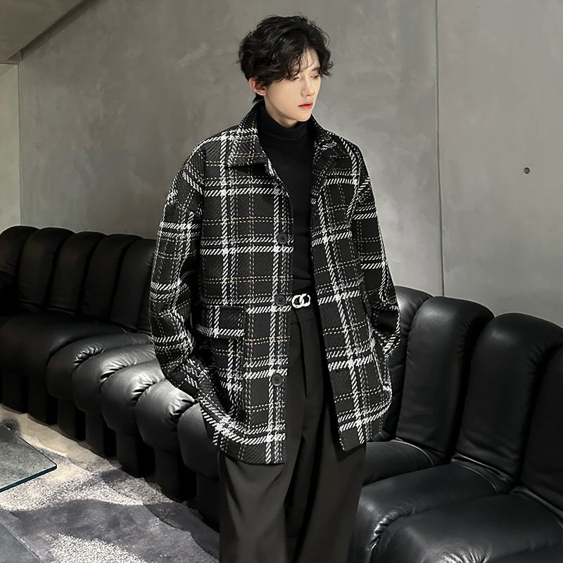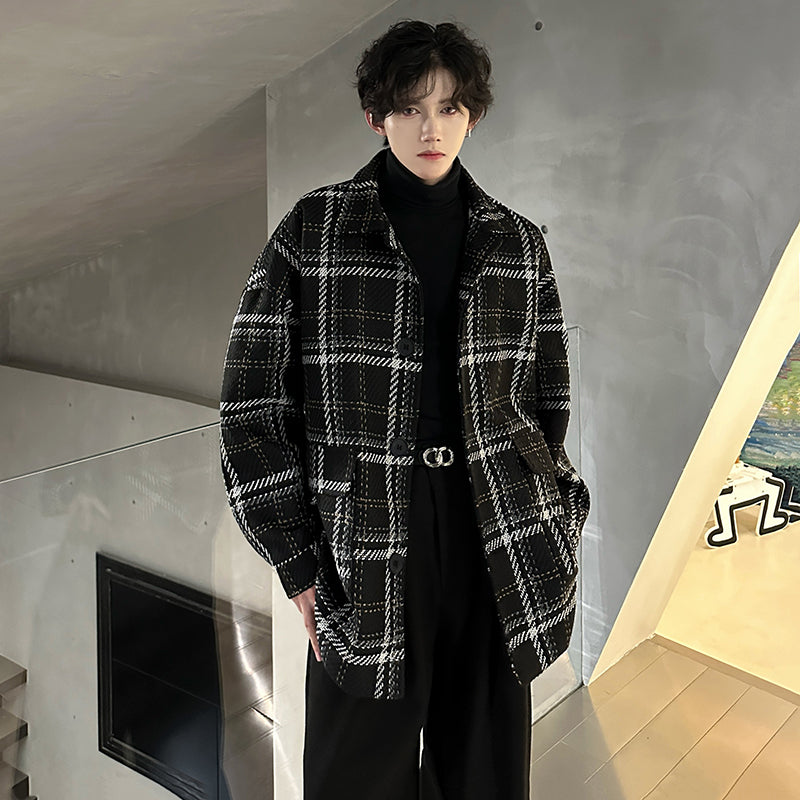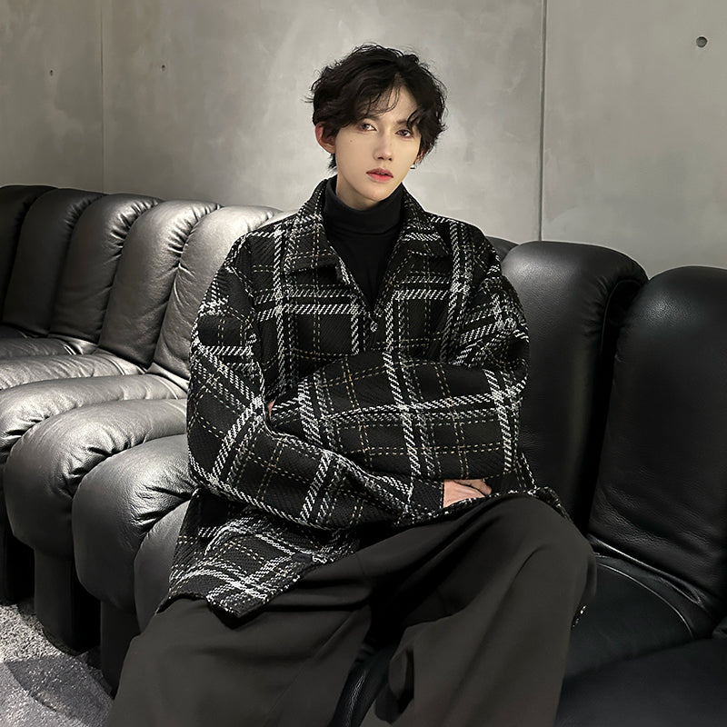 Awao Amerika baland ko'cha tvidli o'rta uzunlikdagi ko'ylagi koreyscha qishki bo'sh tvid juftlik qalin issiq qulay trendli to'da chiroyli palto bir xil modeldagi erkaklar va ayollar