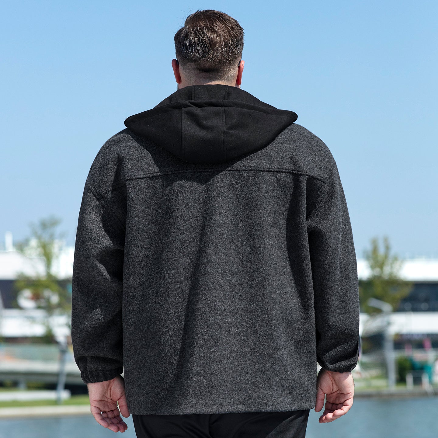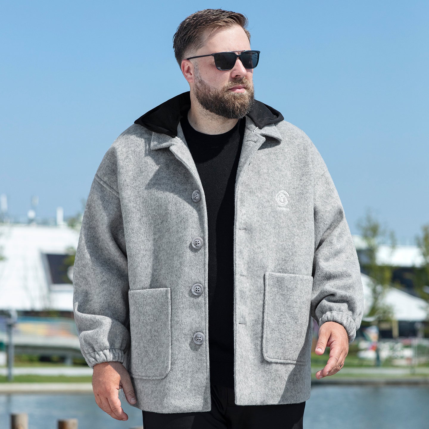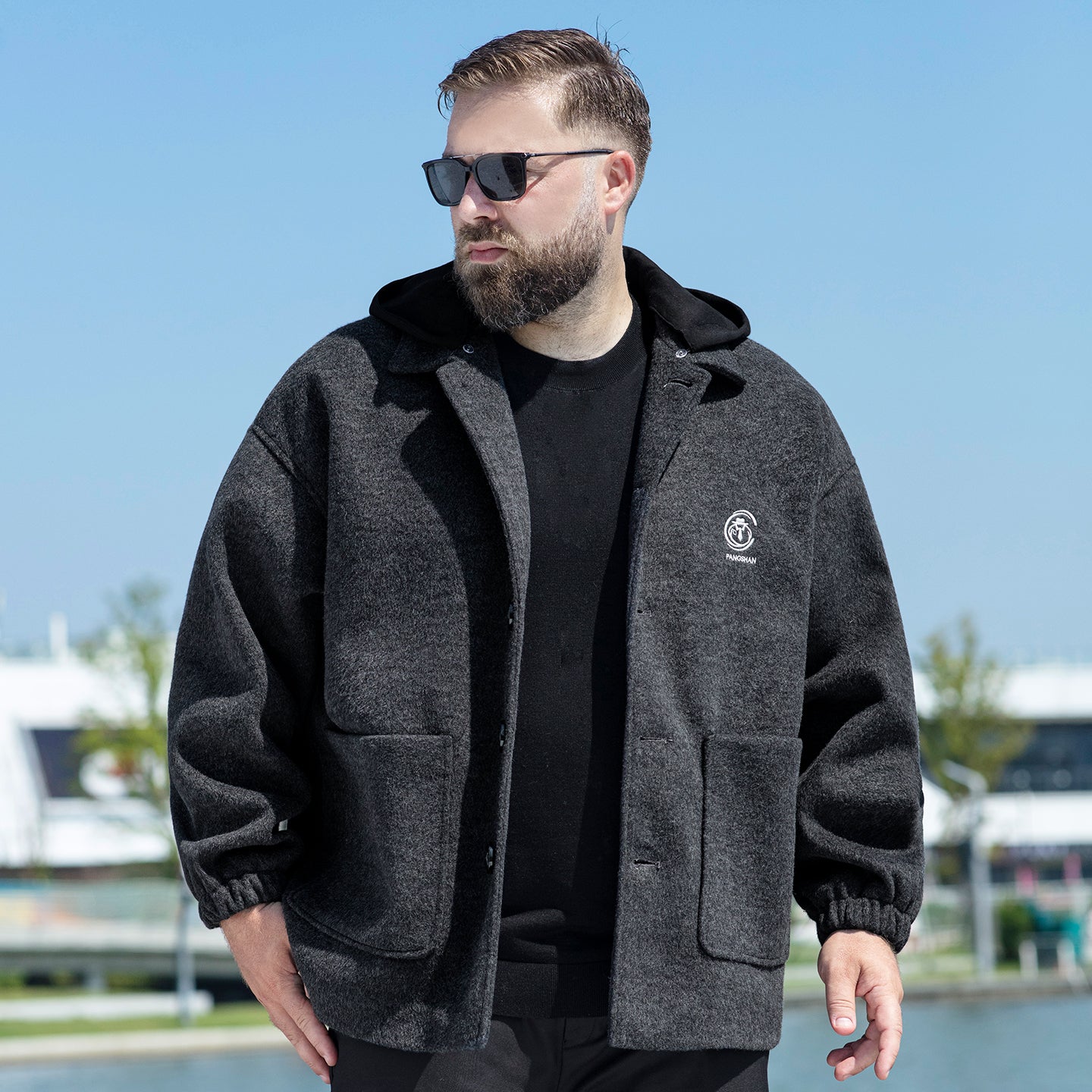Мужское пальто Baishenghu с однобортной застежкой и расслабленным силуэтом для больших размеров. Модель с длинными рукавами и отложным воротником выполнена из смеси полиэстера, шерсти и вискозы, обеспечивая комфорт и тепло в прохладное время года.