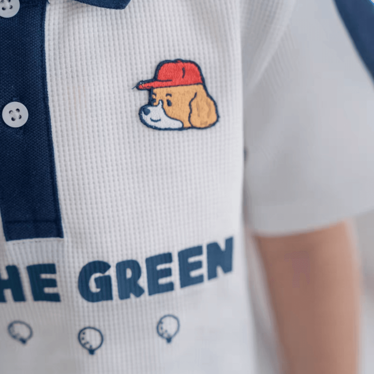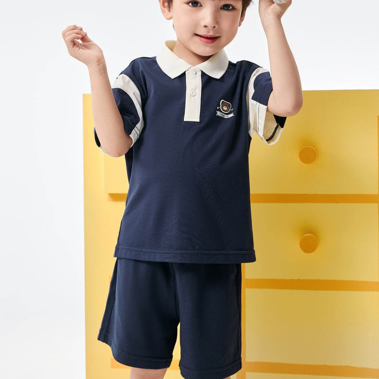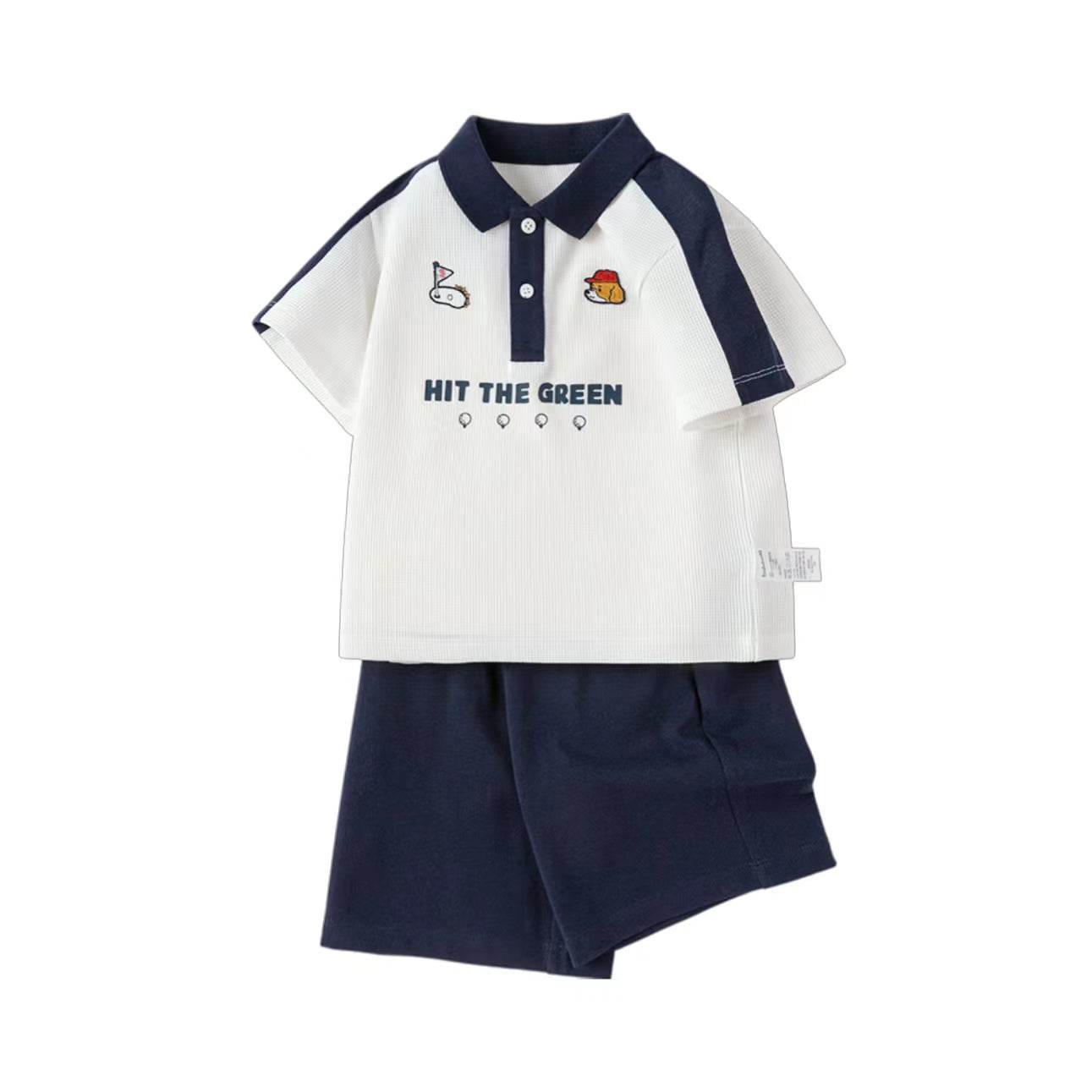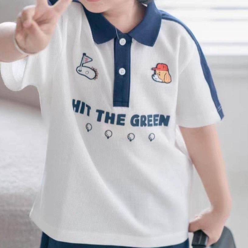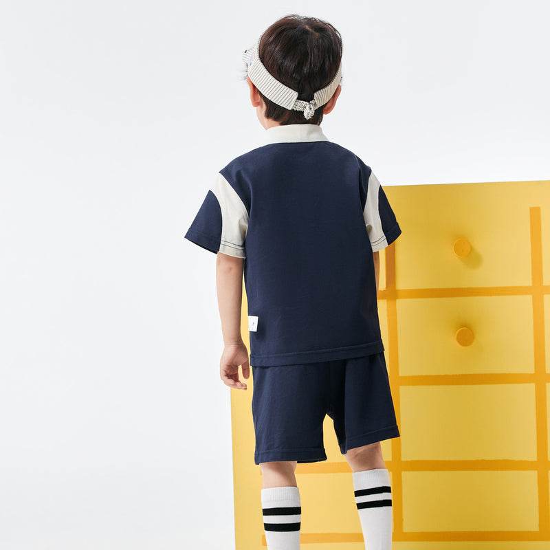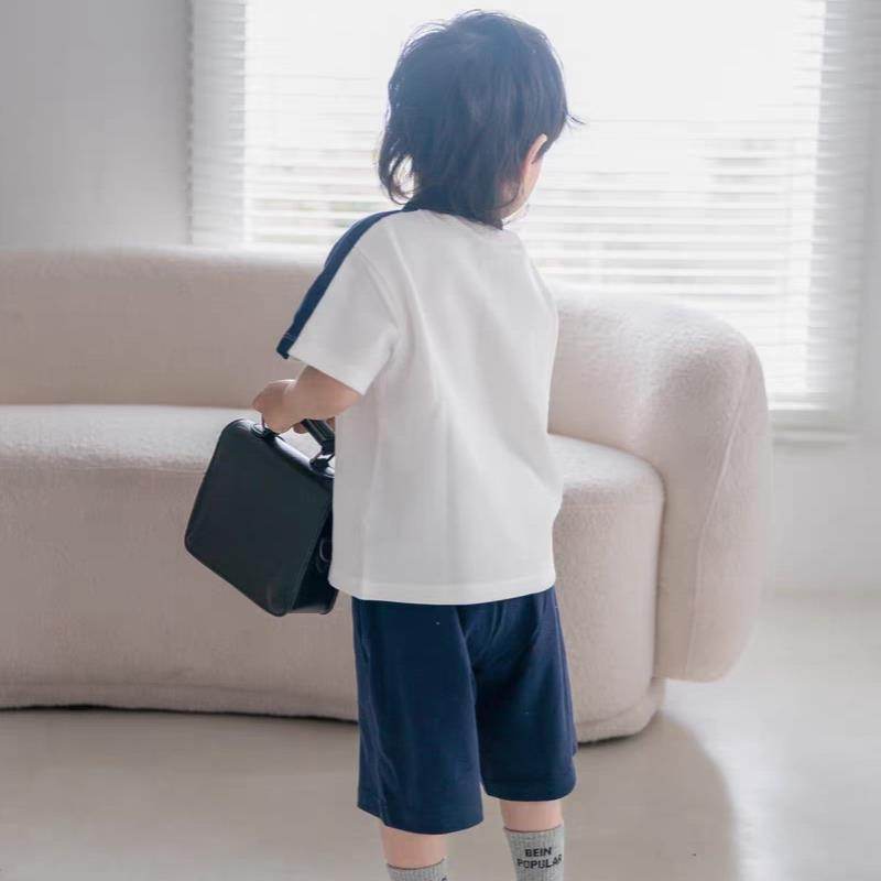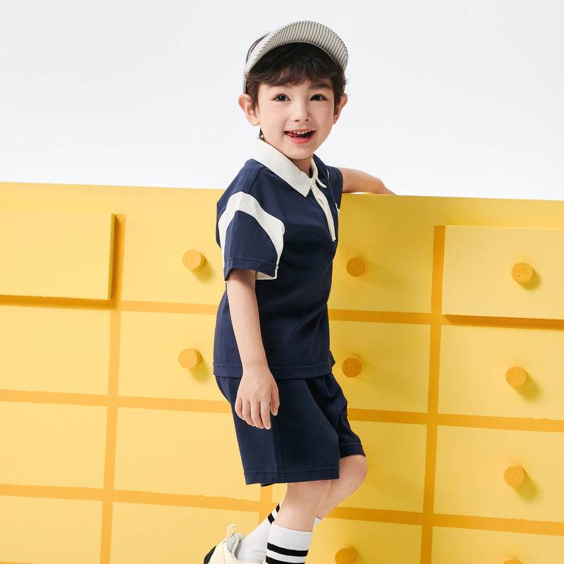 bolalar kostyumi yozgi polo yoqa harflari multfilm qisqa yengli elastik bel shorti inglizcha uslubdagi kampus bolalar modellari
