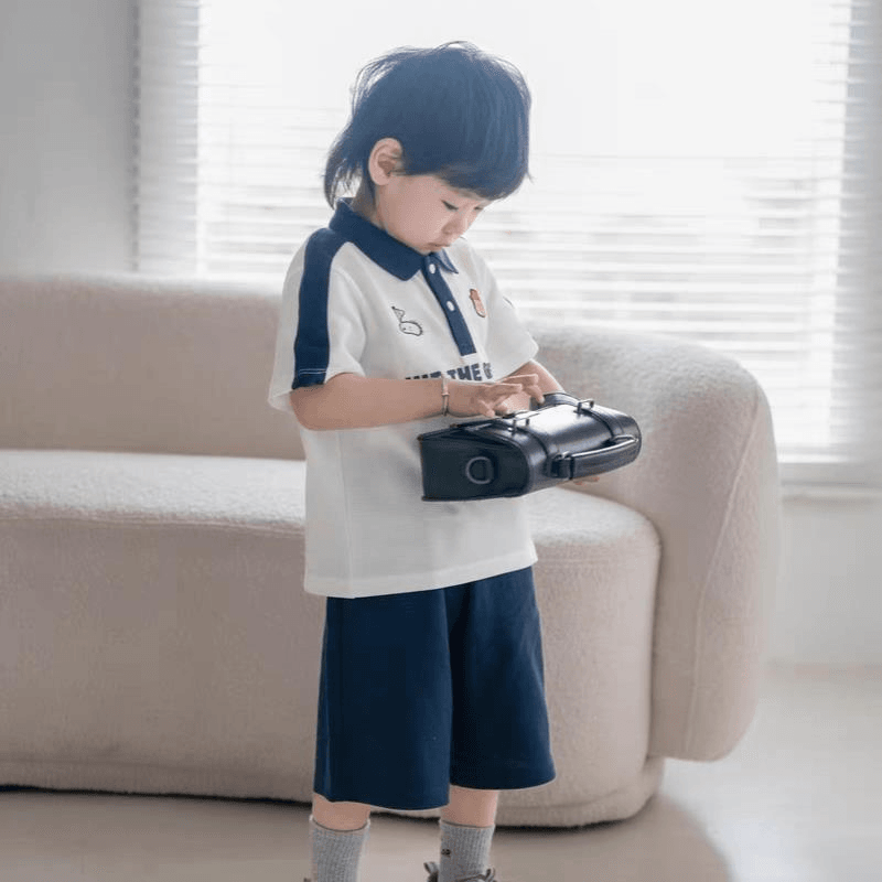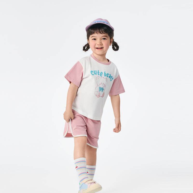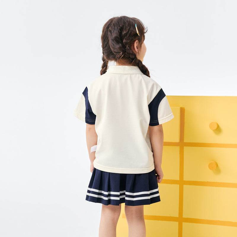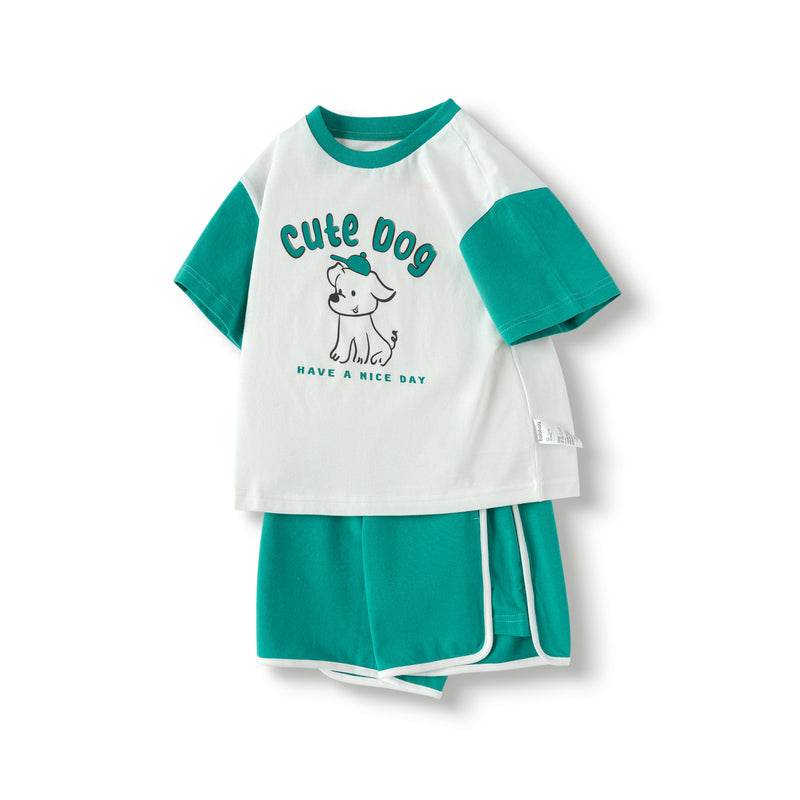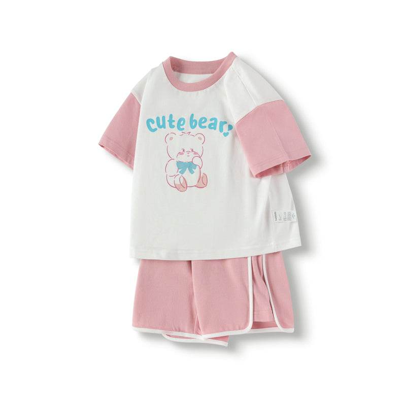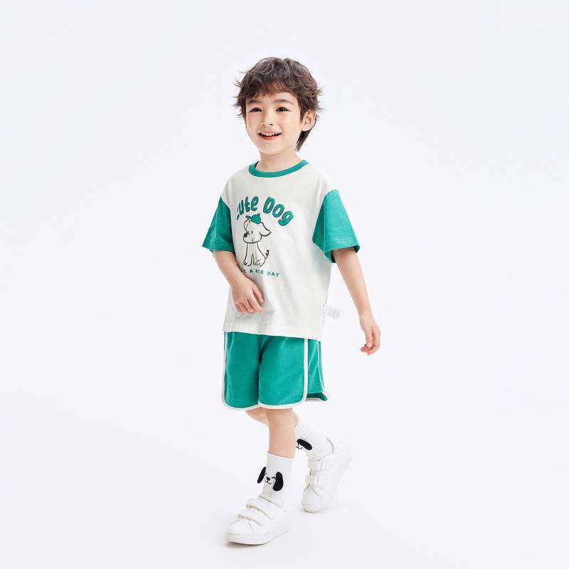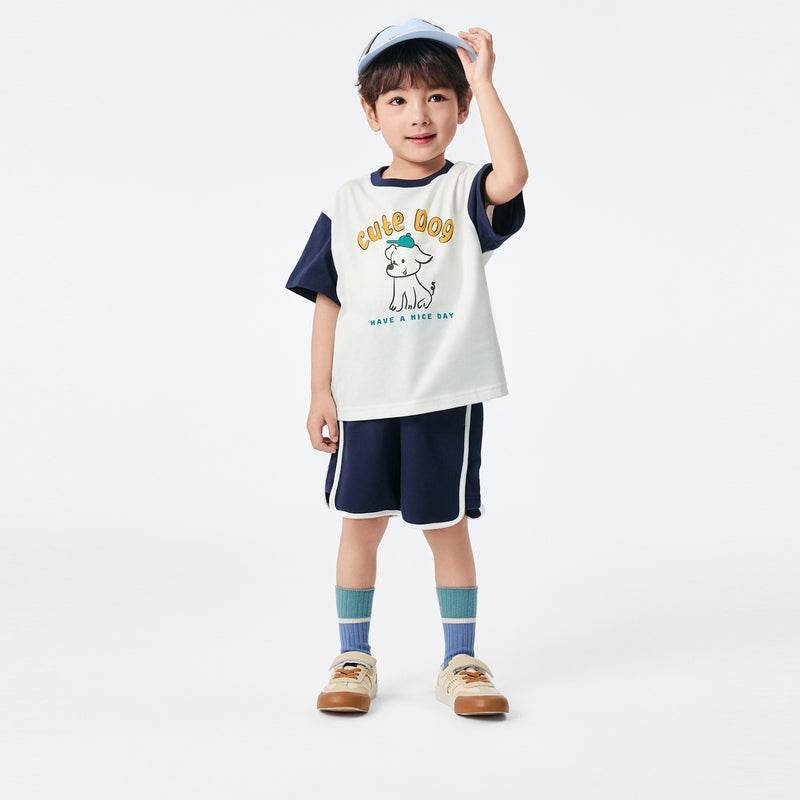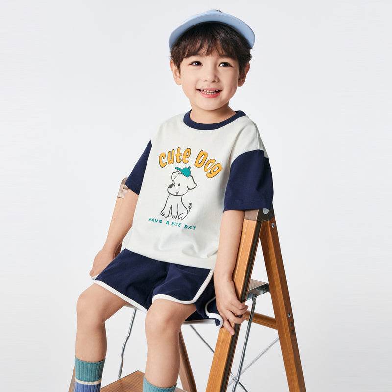 bolalar kostyumi yozgi polo yoqa harflari multfilm qisqa yengli elastik bel shorti inglizcha uslubdagi kampus bolalar modellari