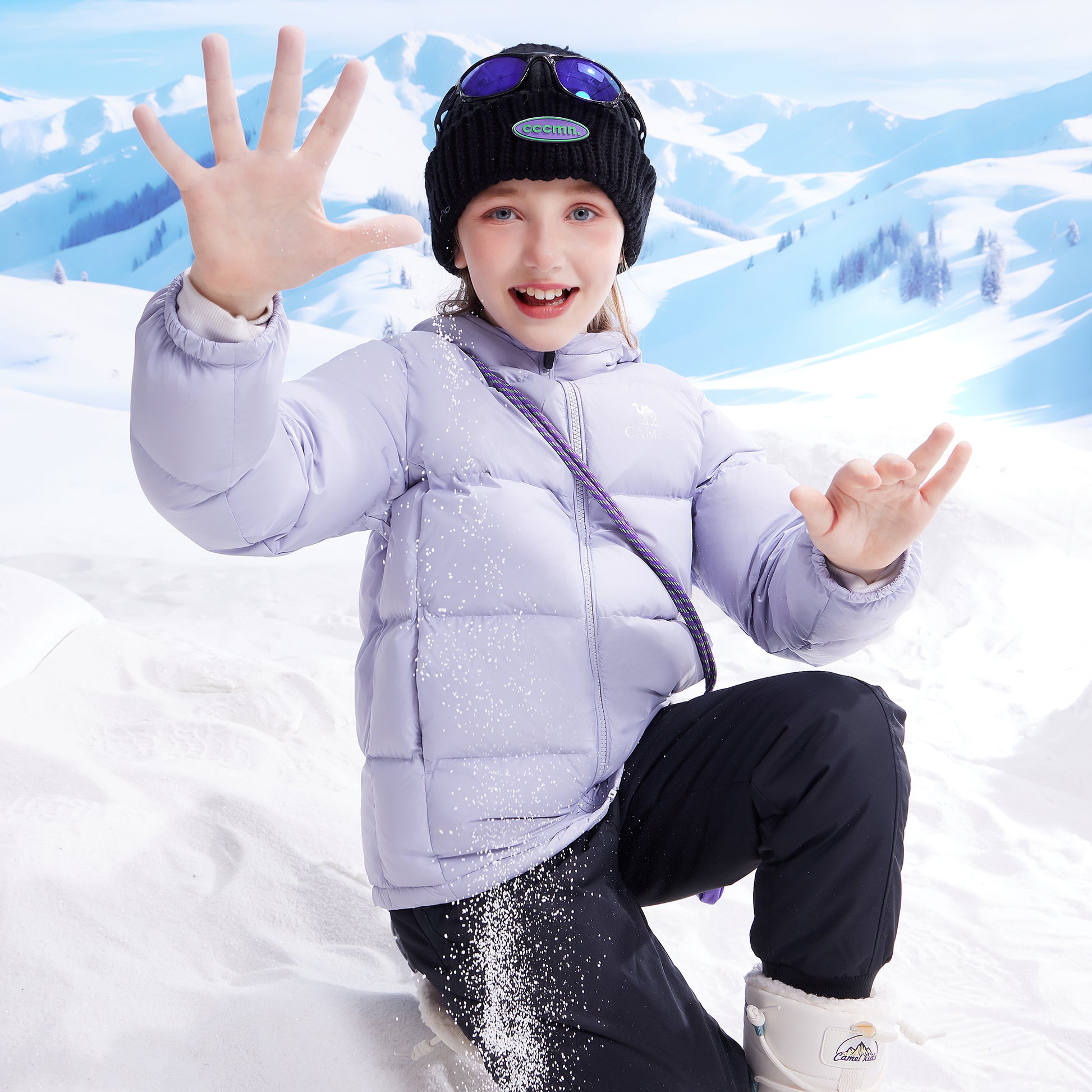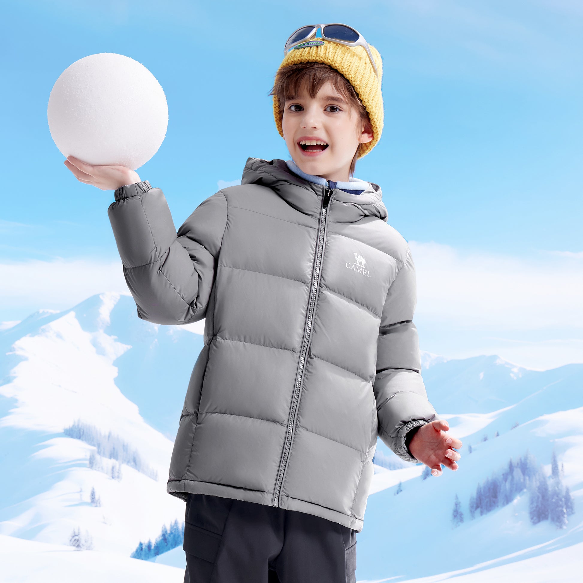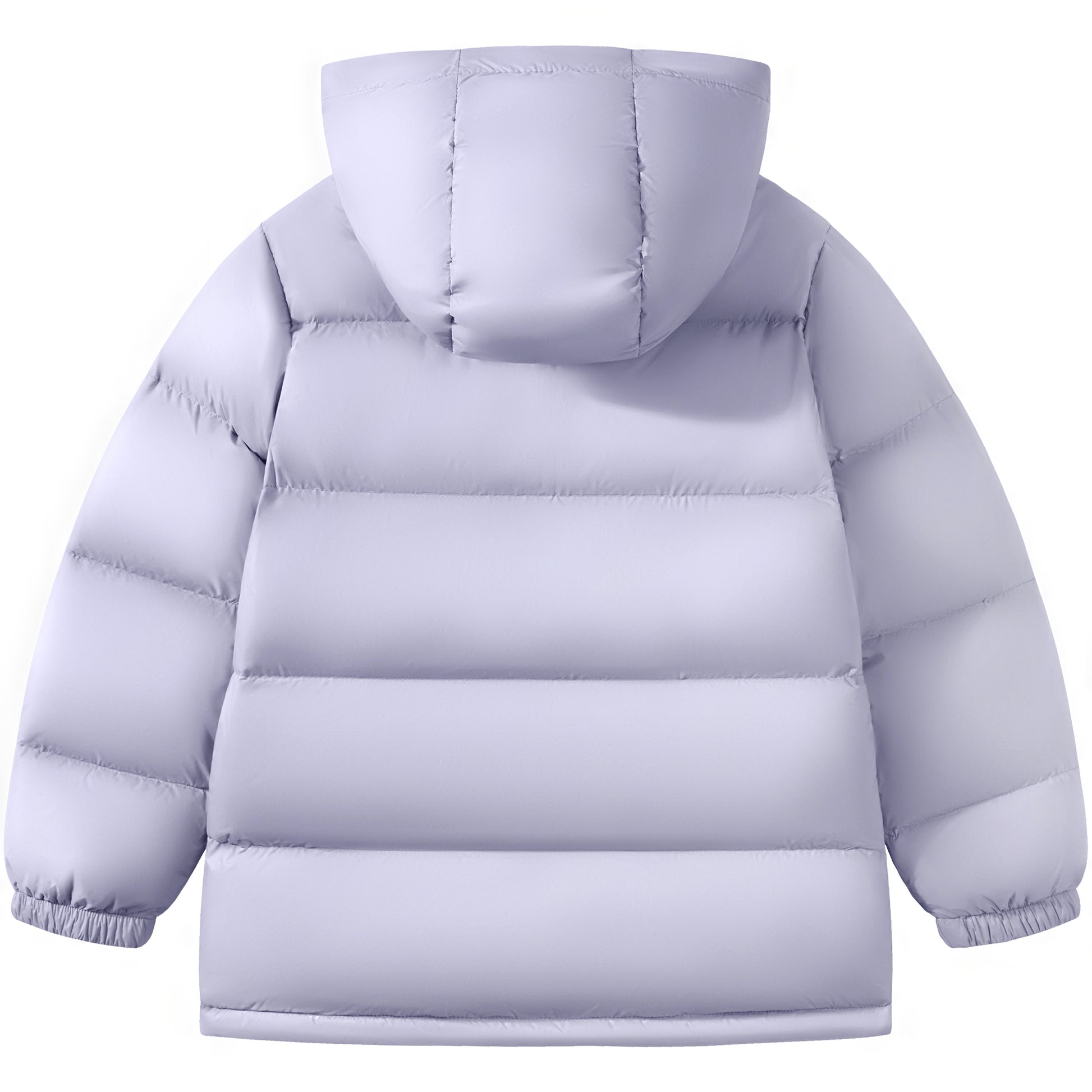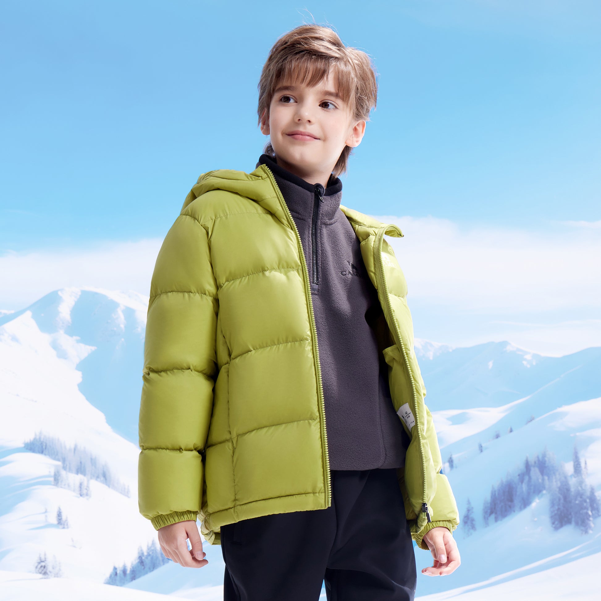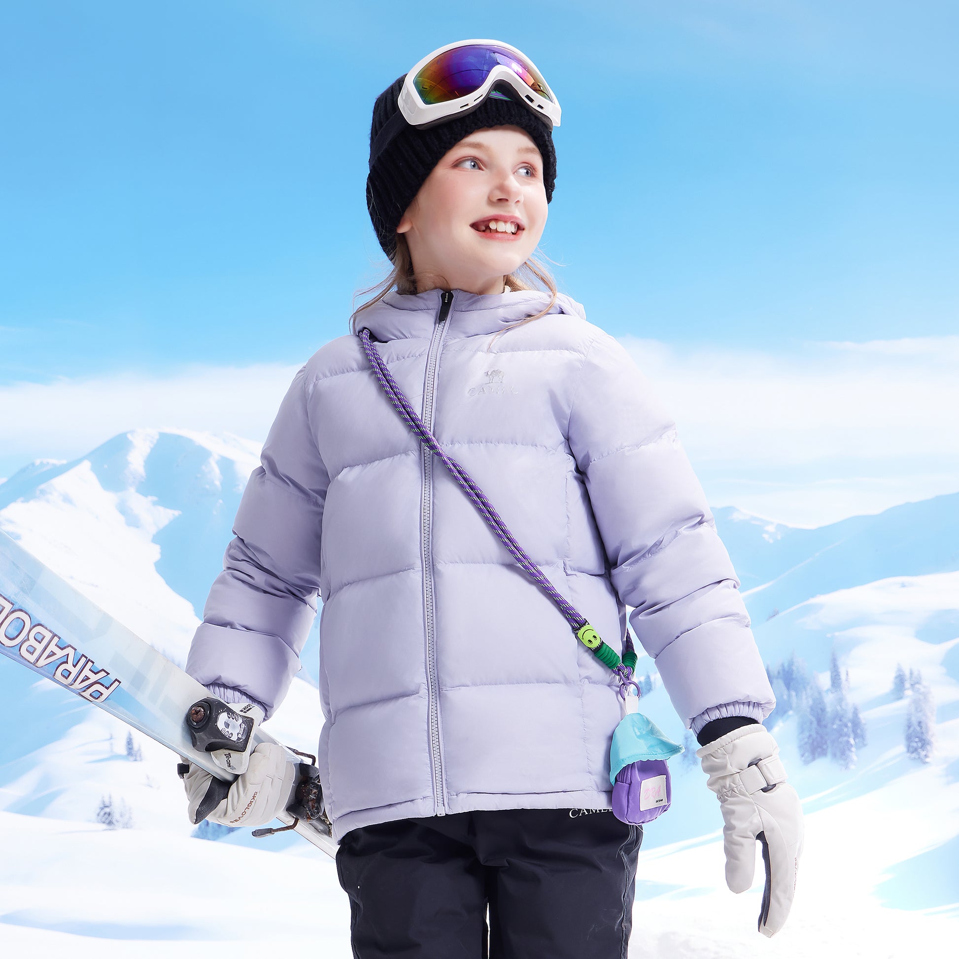 Тёплая и лёгкая детская куртка с капюшоном и длинными рукавами, наполненная утином пухом (90%). Обеспечивает защиту от ветра и влаги, комфорт и тепло при активном отдыхе на улице. Состав: ткань – 100% нейлон, подкладка – 100% нейлон, наполнитель капюшона – 100% полиэстер.