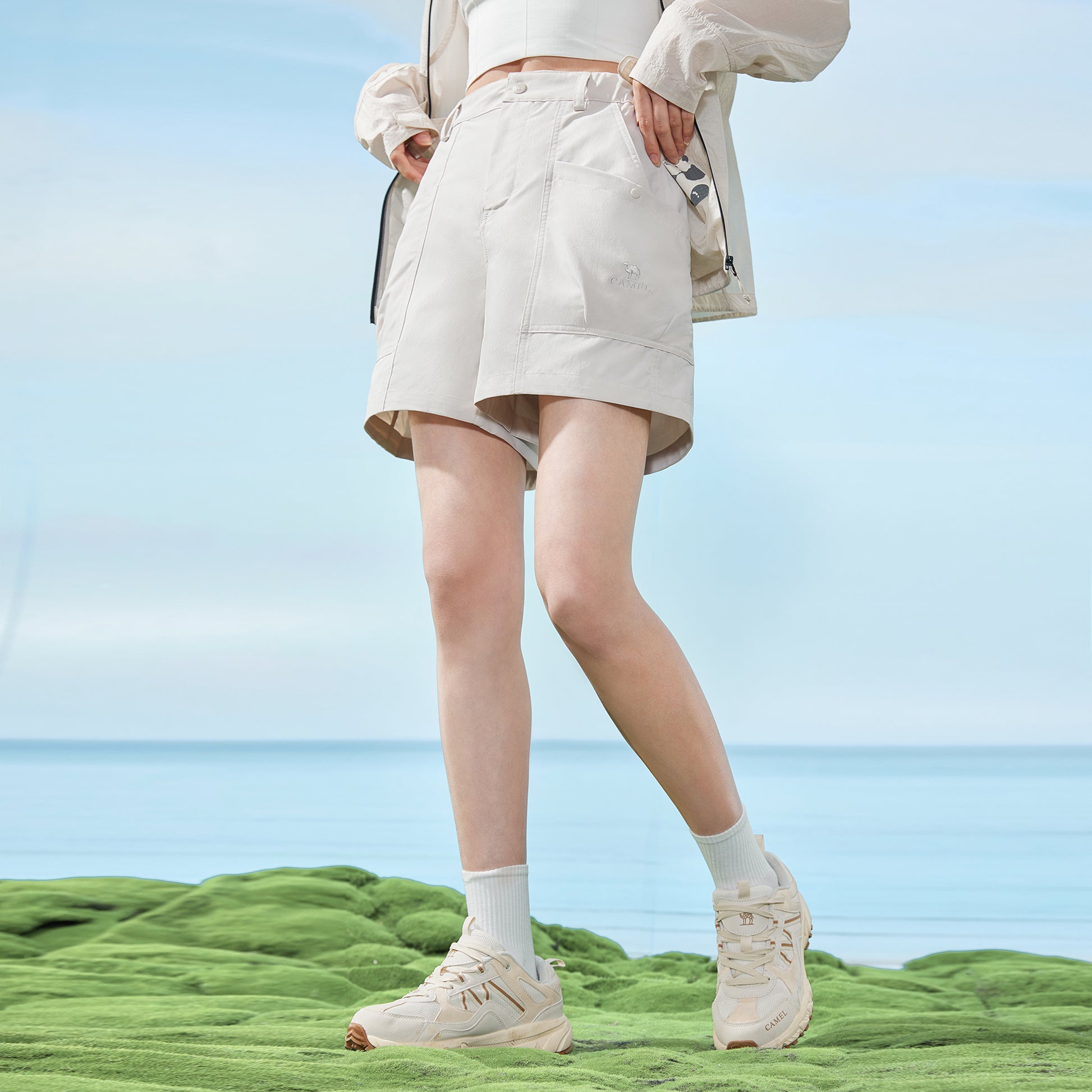 Ushbu keng sport shortlari shaharcha, utilitar uslubda va A-simon bichimga ega. Yengil va elastik poliesterdan tayyorlangan bo'lib, ular qulaylik va ultrabinafsha nurlaridan himoya qiladi, bu esa ularni yozgi faol mashg'ulotlar yoki shahar sayrlari uchun ideal qiladi.