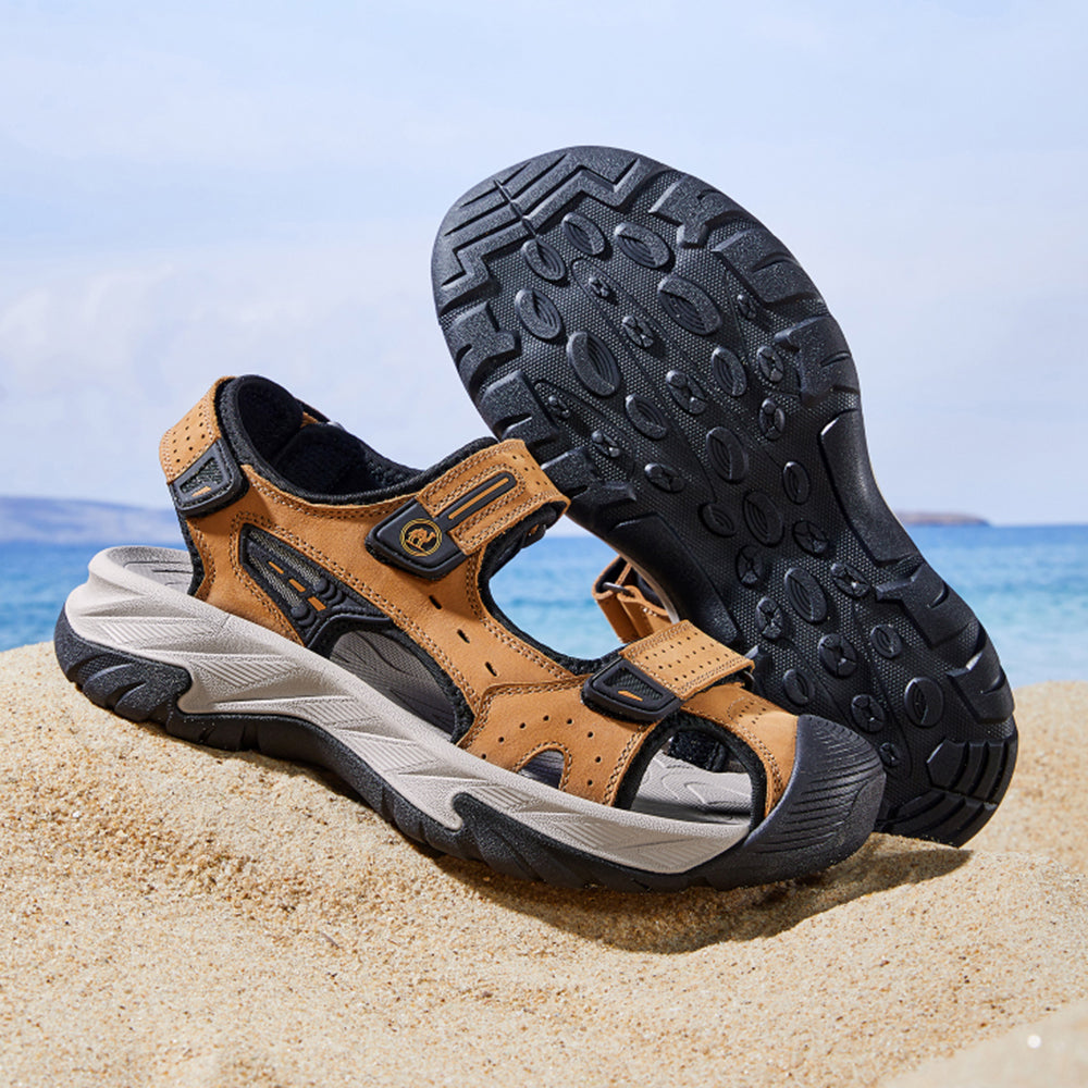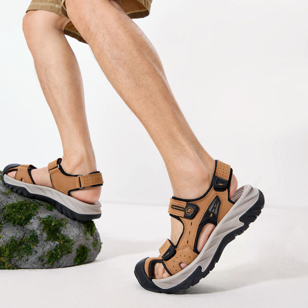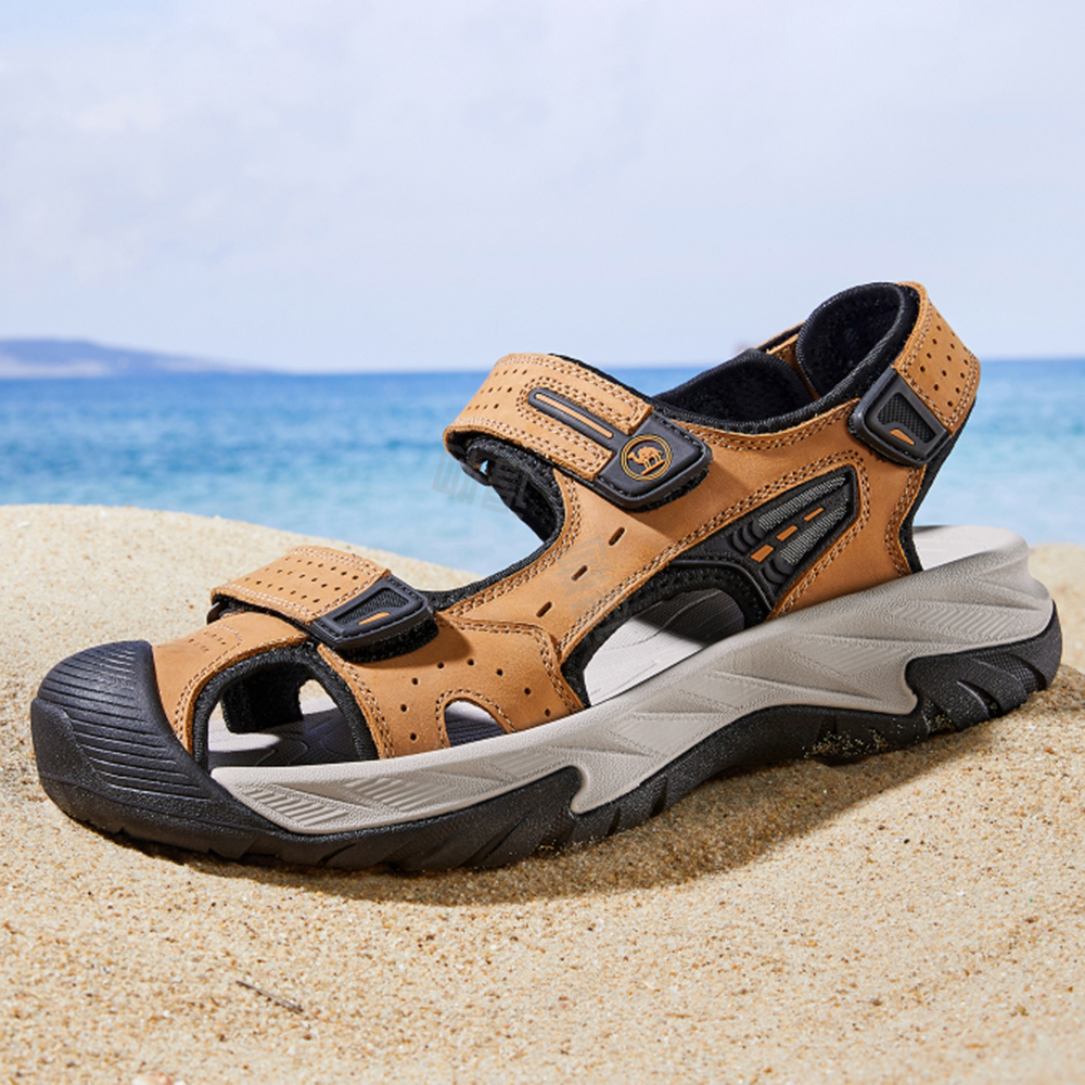 Faol dam olish va suvda sayr qilish uchun klassik yopiq oyoq barmoqli sandallar, asl charmdan tayyorlangan. Qalin taglik va sozlanishi mumkin bo'lgan Velcro yopilishi tortishish, nafas olish imkonini beradi va yoz uchun juda mos keladi.