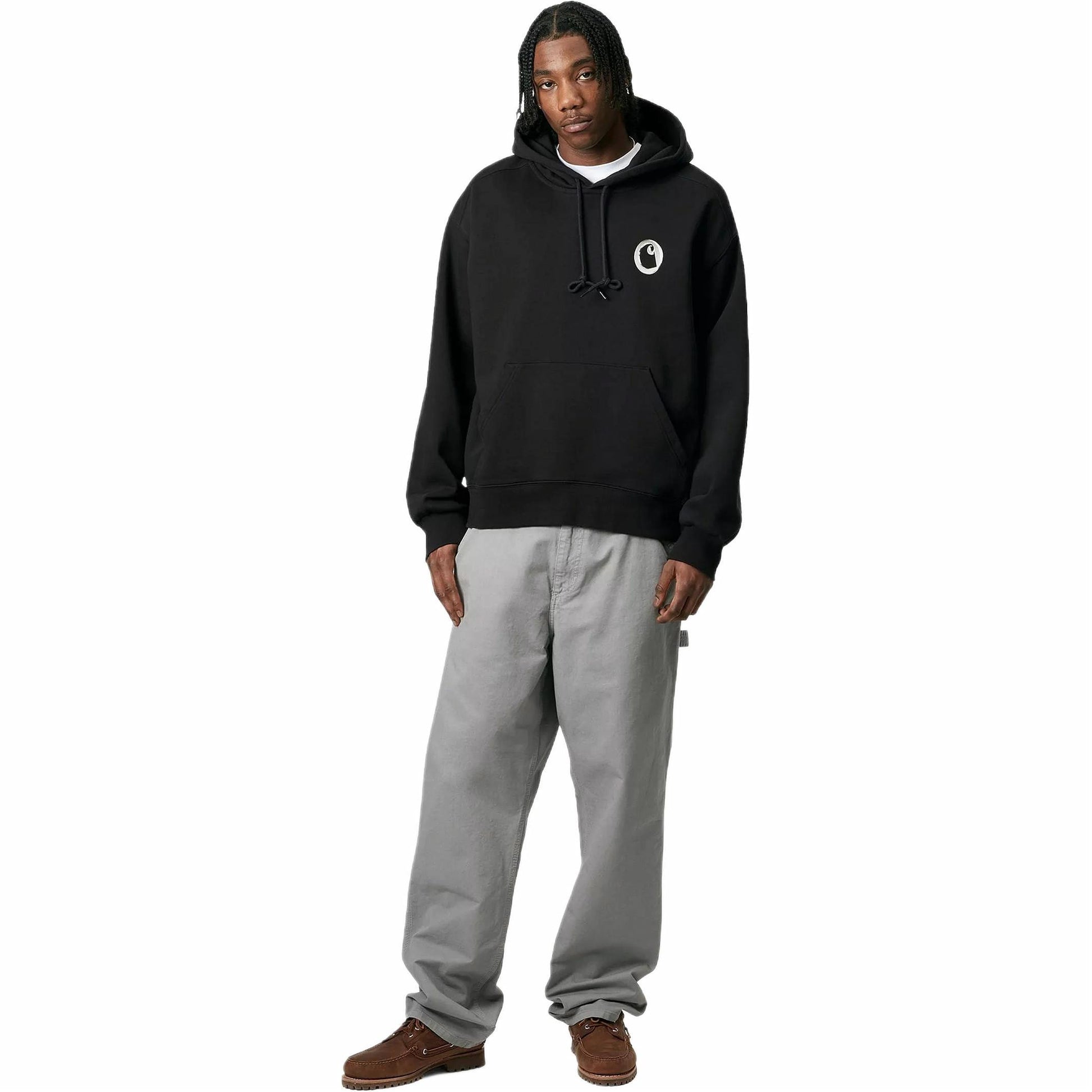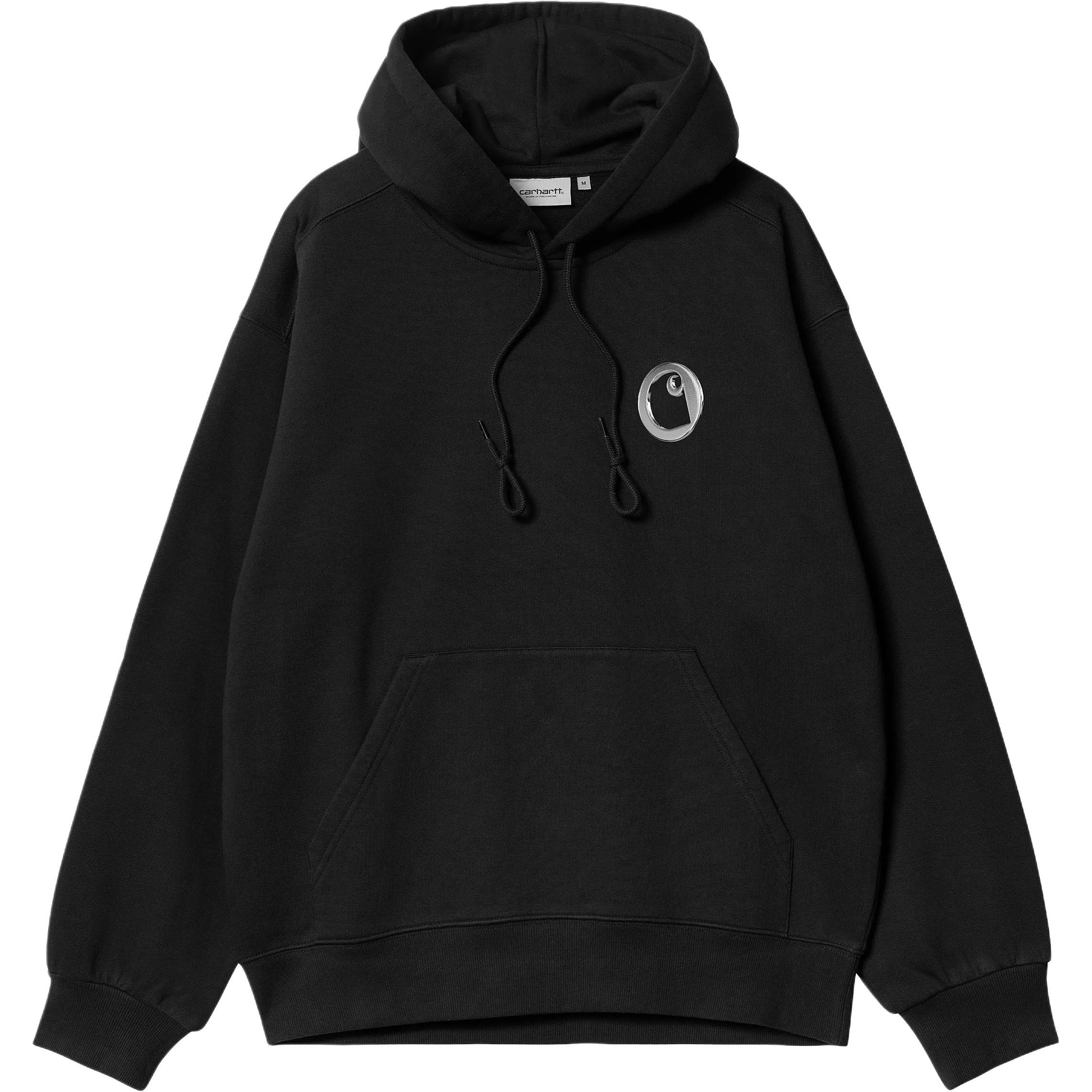 Carhartt wip fw24 qalpoqli jozibali terli bo'sh orqa naqshli bosma qalpoqli uzun yengi pullover kozok uniseks qora