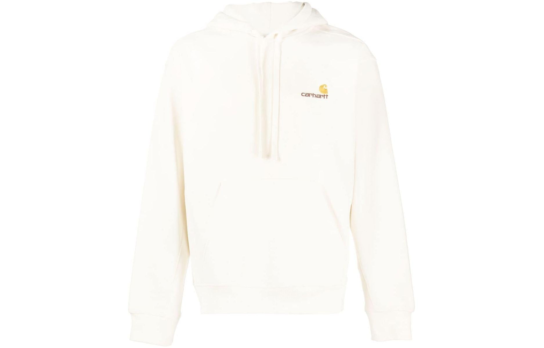 Carhartt logotipi naqshli paxta kanguru cho'ntak qalpoqli kozok uniseks bej