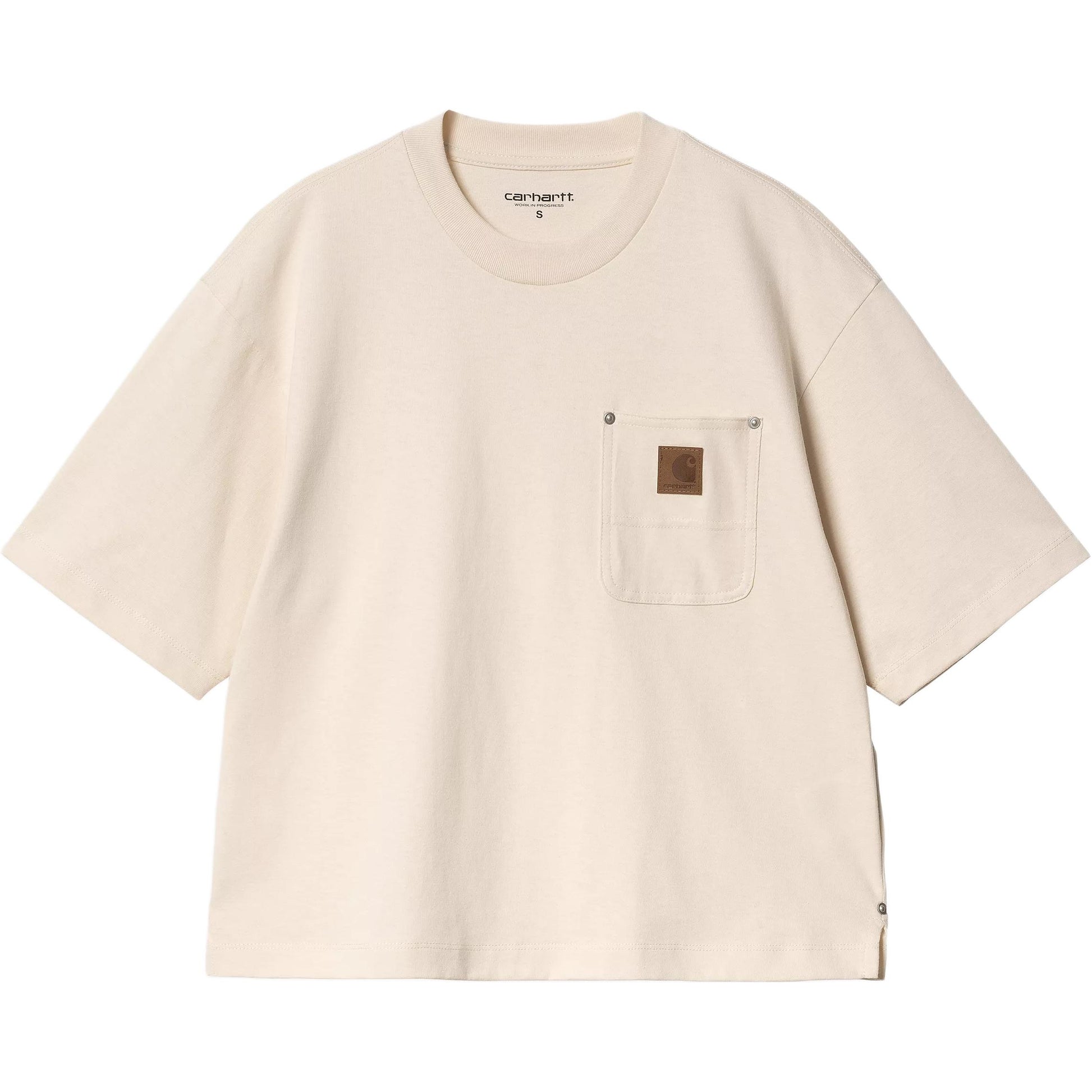 Carhartt wip w' s/s katta o'lchamli ko'krak cho'ntakli kvadrat yorliqli dumaloq bo'yinli qisqa yengli oddiy ayollar futbolkasi