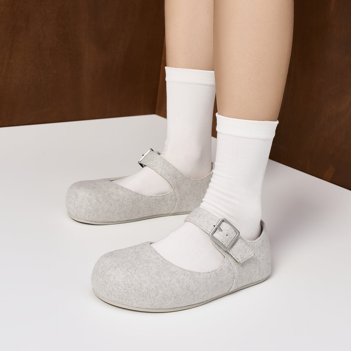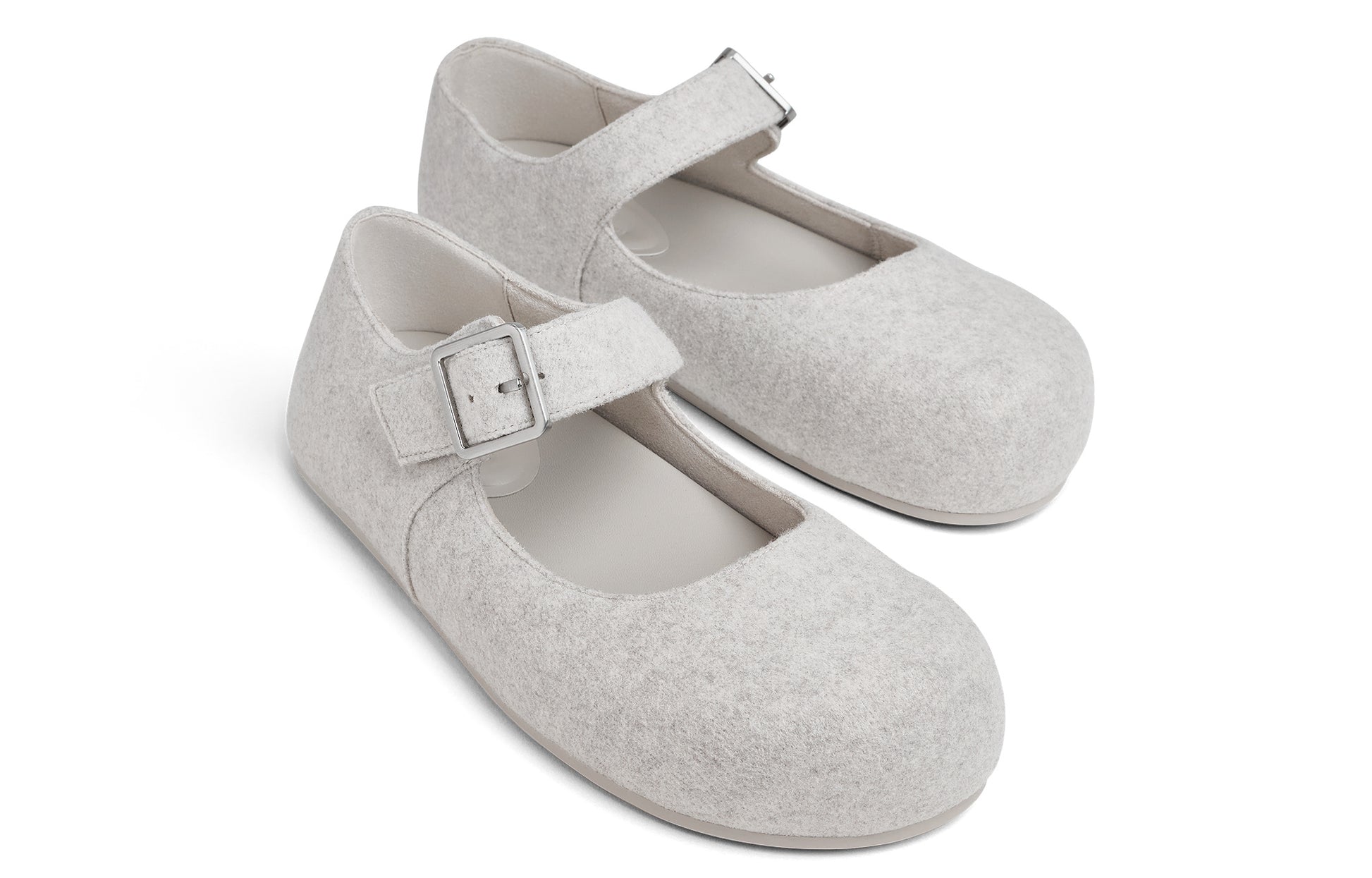 Charlz va Keytdan Meri Jeynning kuzgi tuflilari dumaloq barmoqli, 3 sm qalinlikdagi taglik va PU va mato bezaklarining kombinatsiyasiga ega. Ular kundalik kiyim uchun qulaylik va uslubni birlashtiradi.