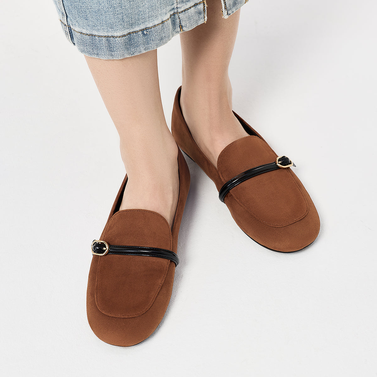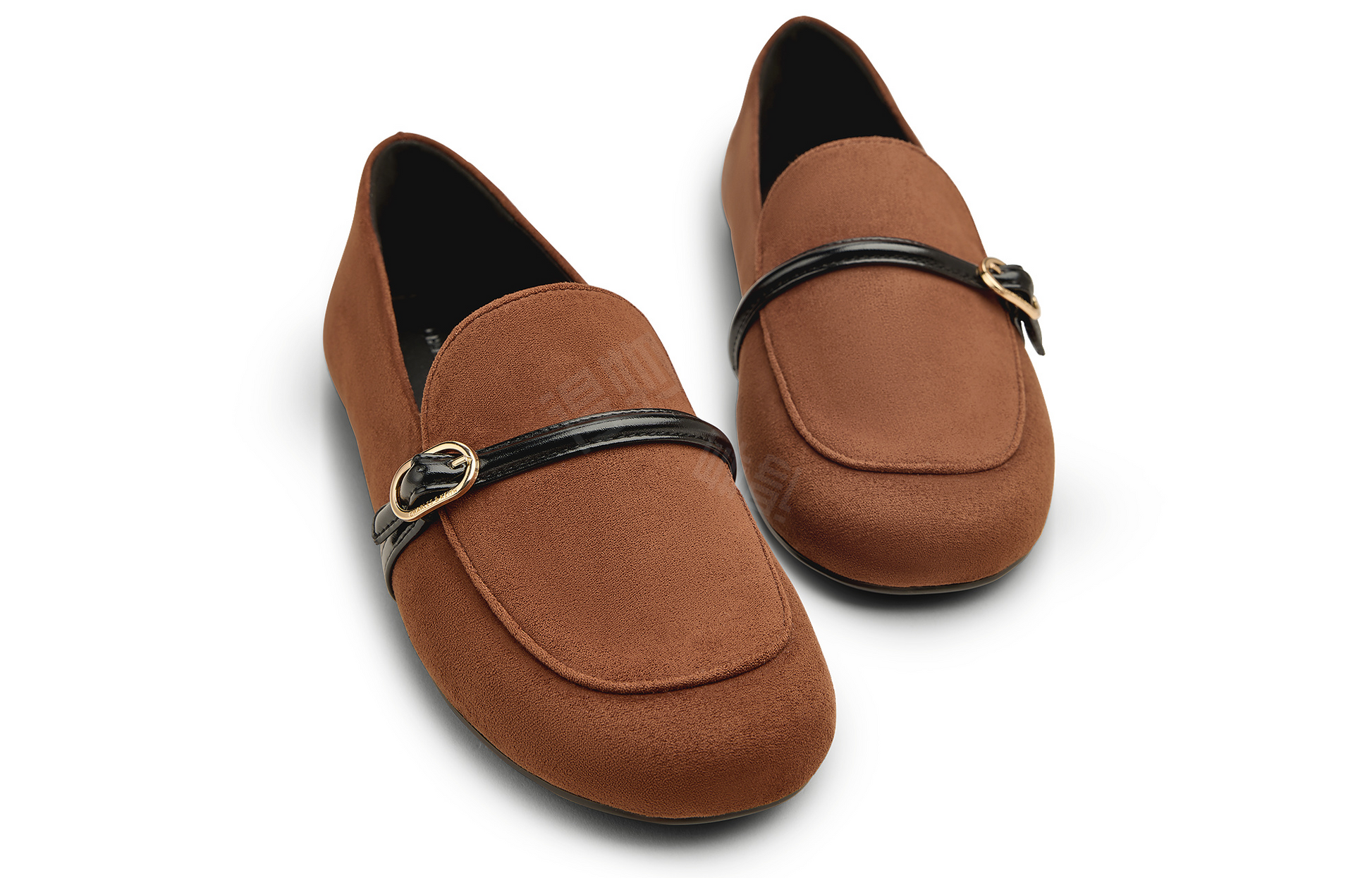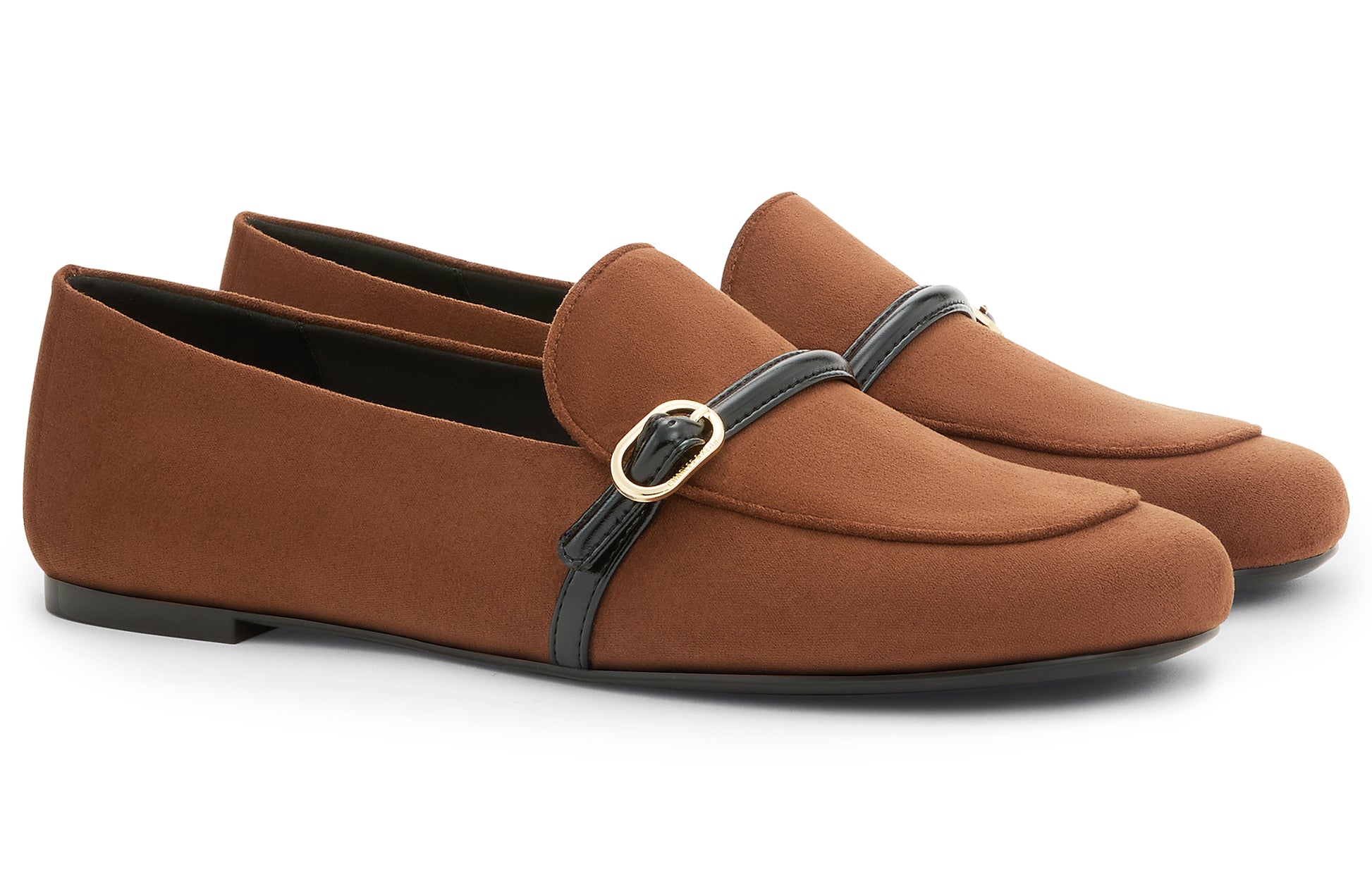 Sun'iy charm va mato kombinatsiyasidan tayyorlangan, dekorativ toka va yupqa taglikli retro loferlar. Ushbu nafis, yumaloq uchli, sirpanib yuriladigan uslub klassik o'rta mavsum qiyofasiga juda mos keladi.