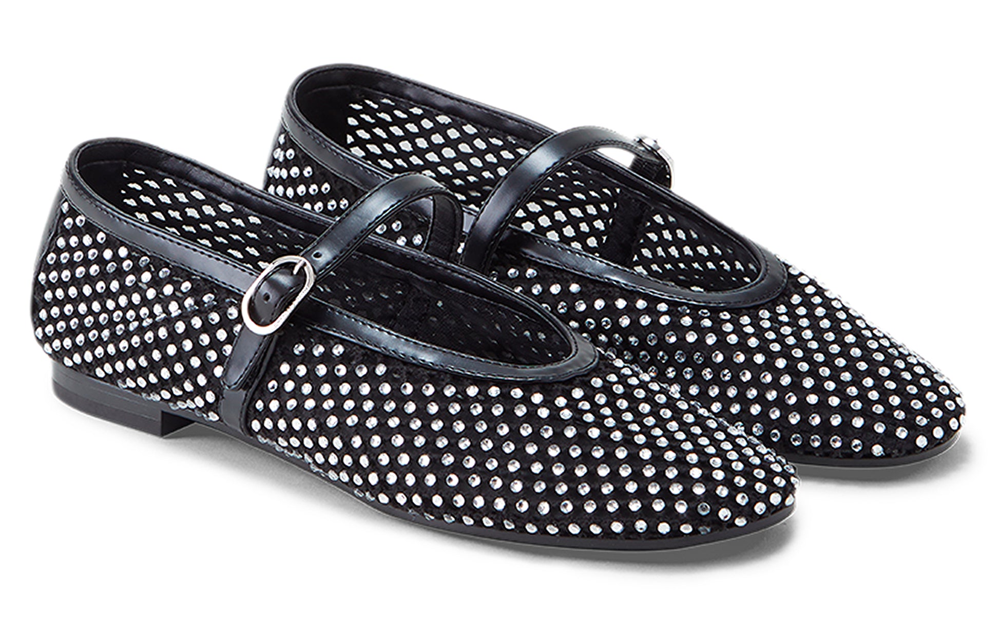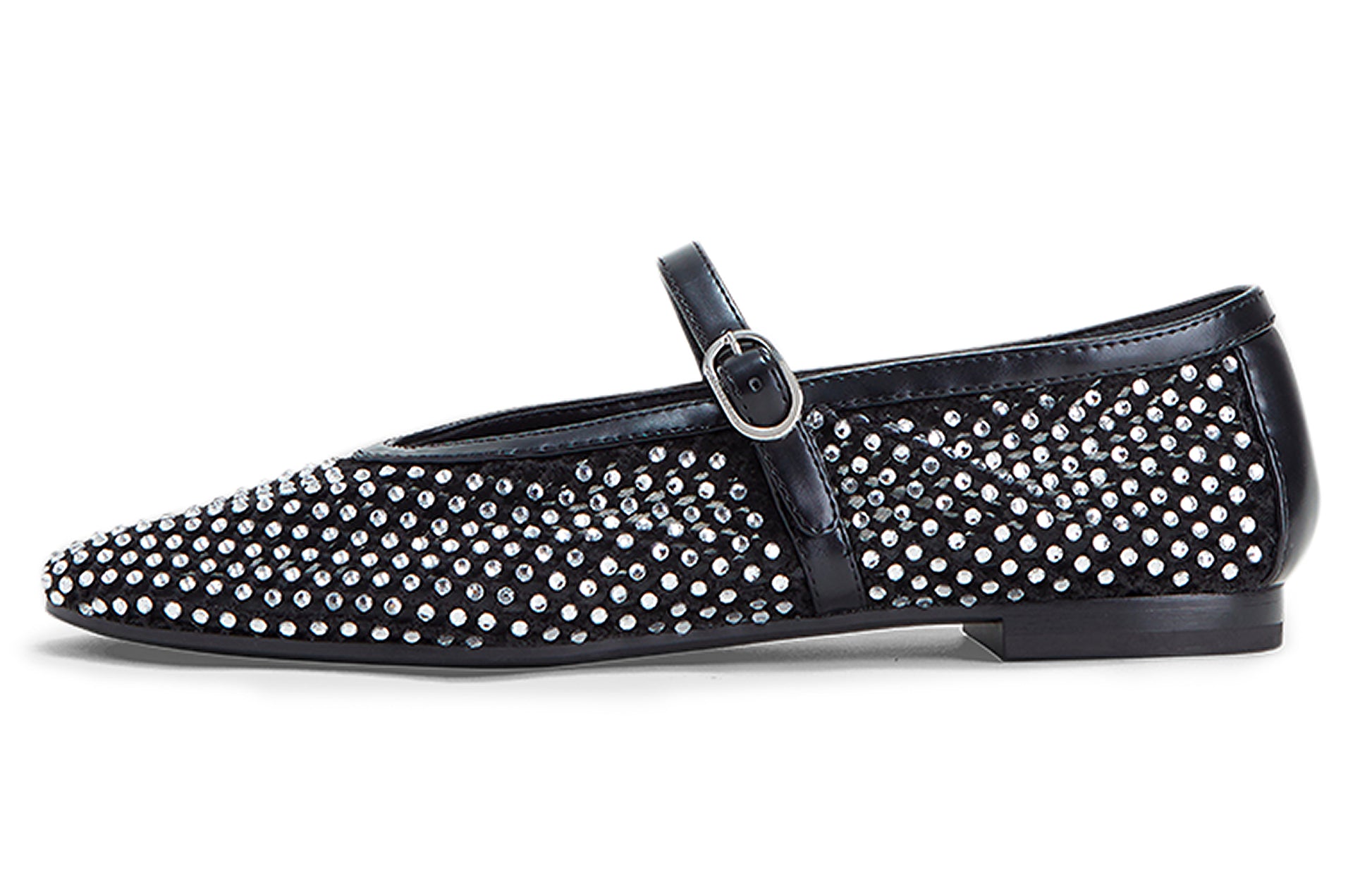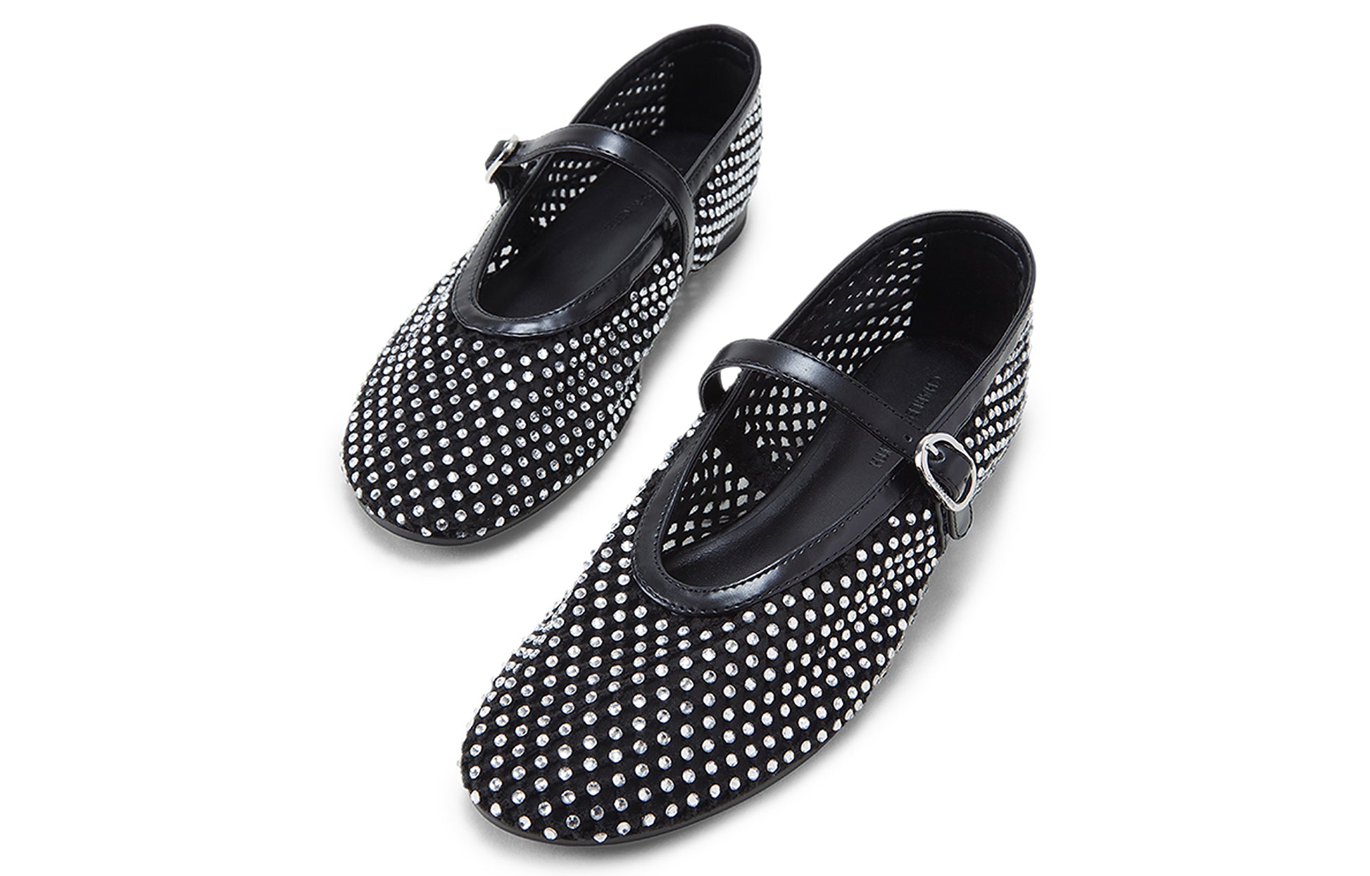 Ushbu yengil, toshlar bilan bezatilgan Mary Jane uslubidagi poyabzallar to'rdan yasalgan. Naqshinkor qisqichli dizayn issiq oylarda nafis ko'rinish uchun juda mos keladi.