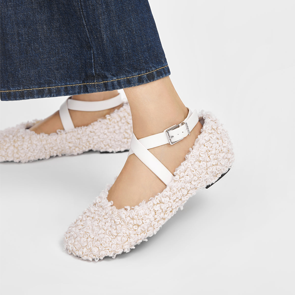 Charlz va Keytning to'pig'i tasmali va yumshoq bezakli bu kundalik balet kvartiralari kundalik kiyish uchun 0,5 sm tekis taglik bilan qulaylik va uslubni birlashtiradi.