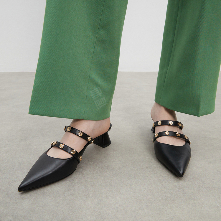 Charlz va Keytning bu oqlangan uchi uchli xachirlari 4,1 sm balandlikdagi tovoniga ega. Ular metall detallar bilan bezatilgan va uslubni qulaylik bilan uyg'unlashtiradi.