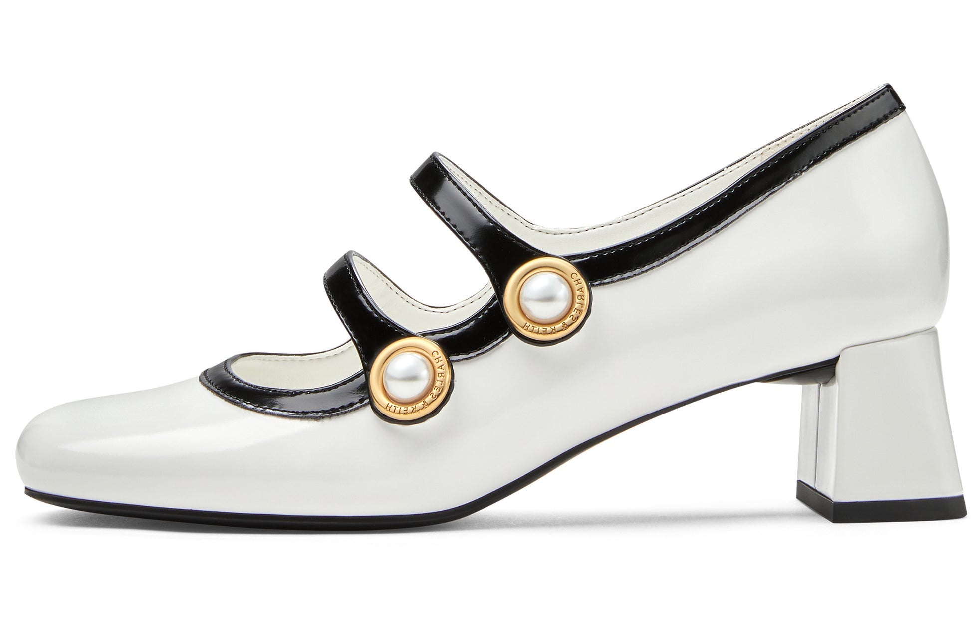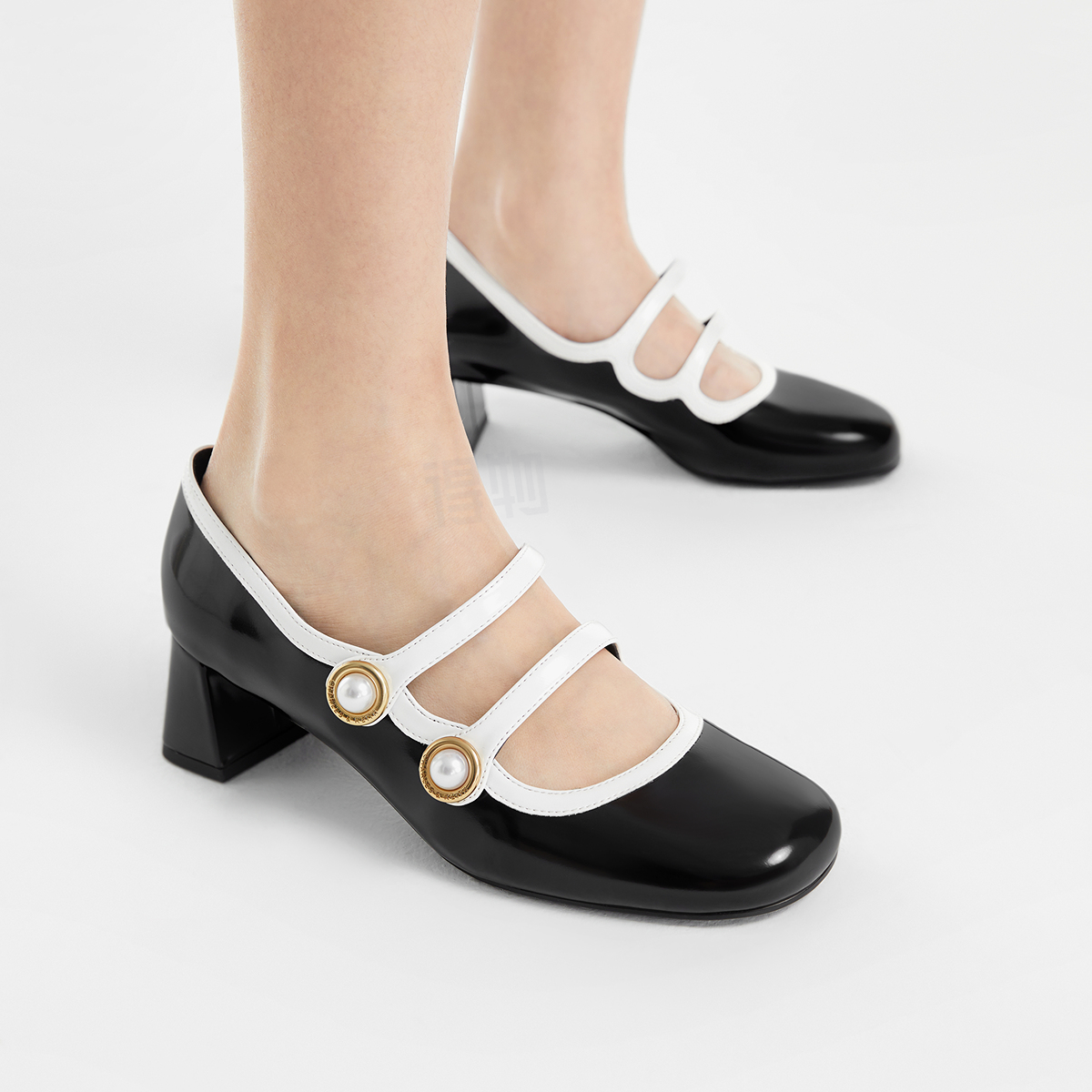Meri Jeyn uslubidagi bu tufli qarama-qarshi rang bloki, sun'iy marvarid bezaklari va qalin tovonga ega. Chiroyli dizayn kunduzgi va kechki liboslar uchun juda mos keladi.