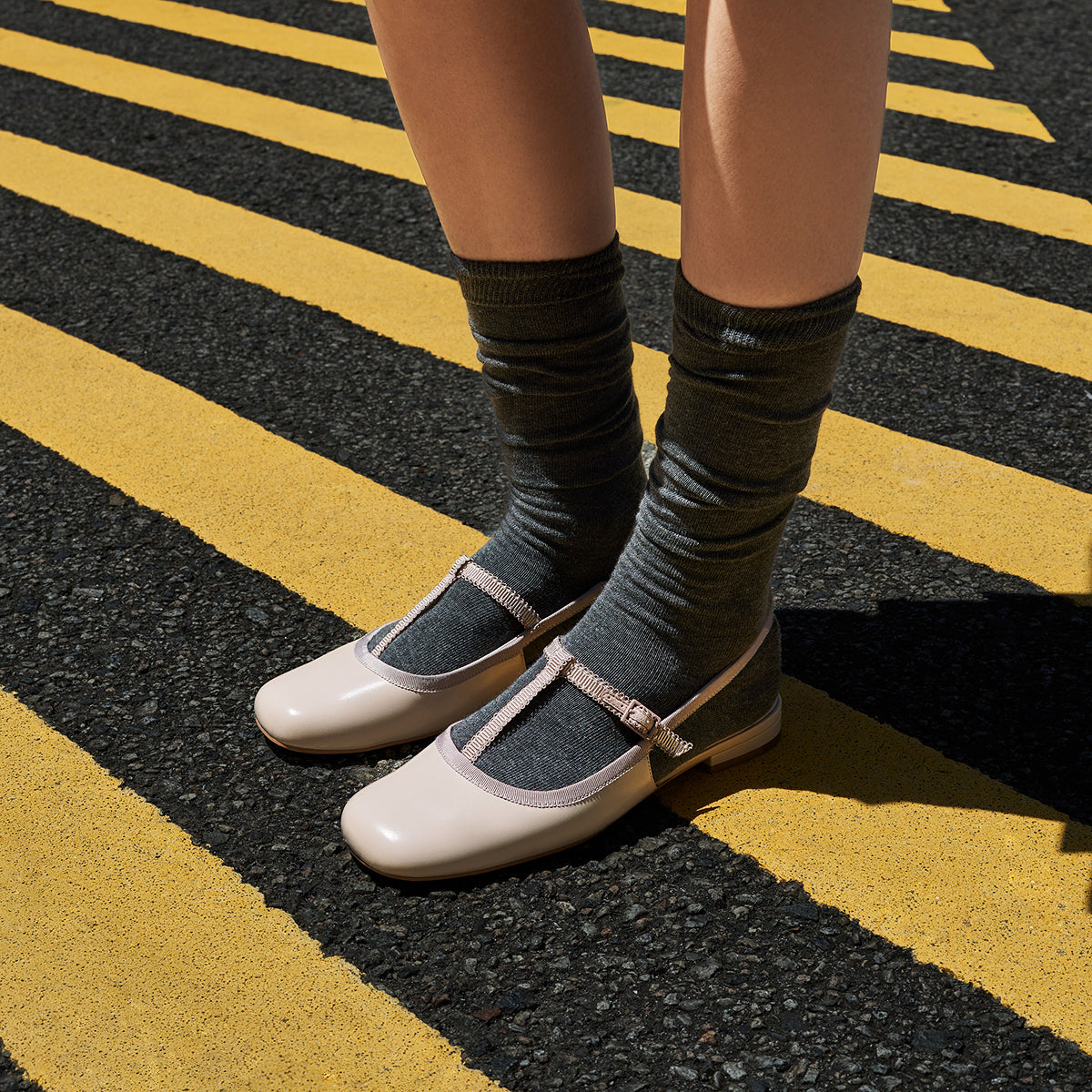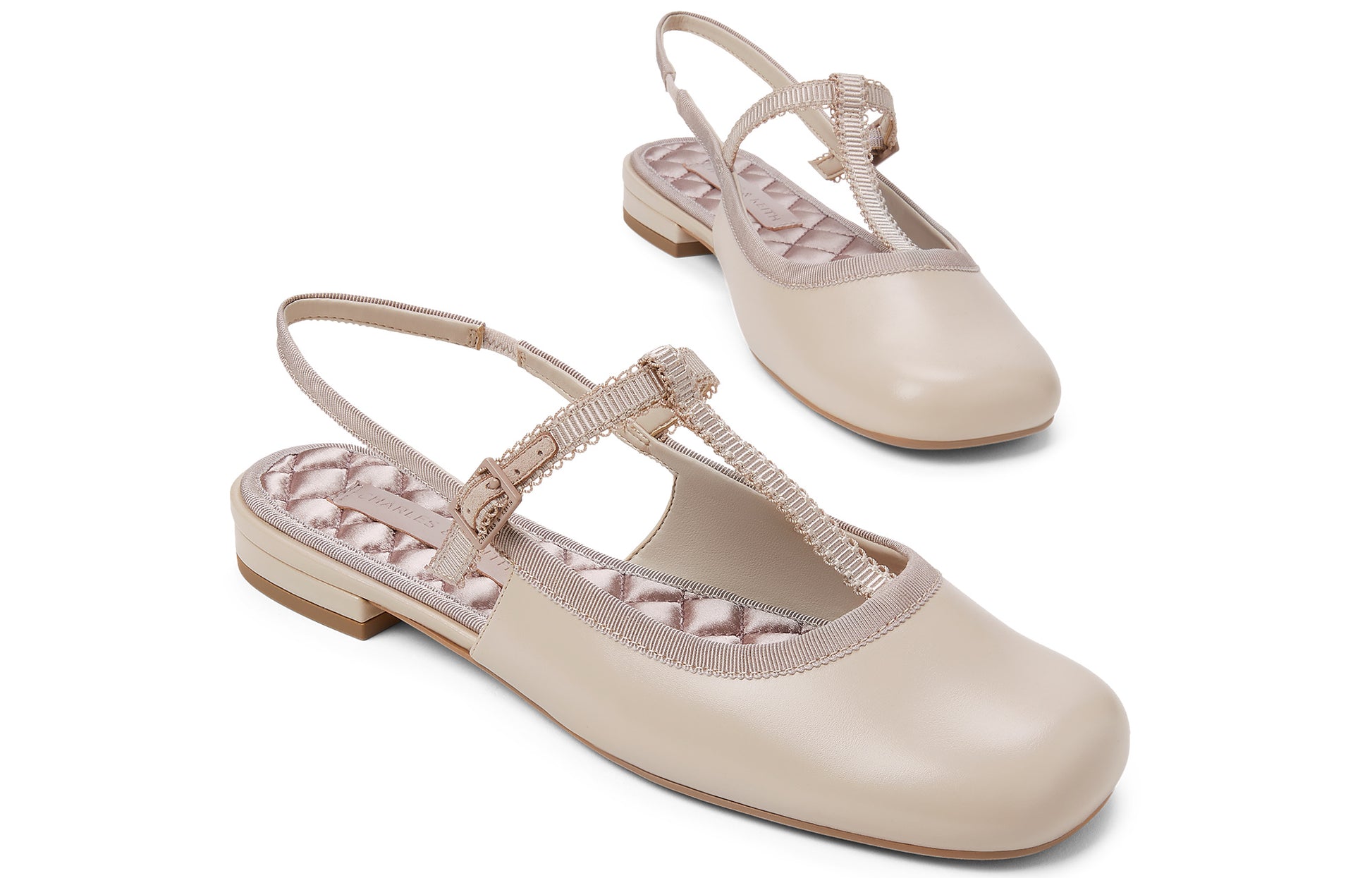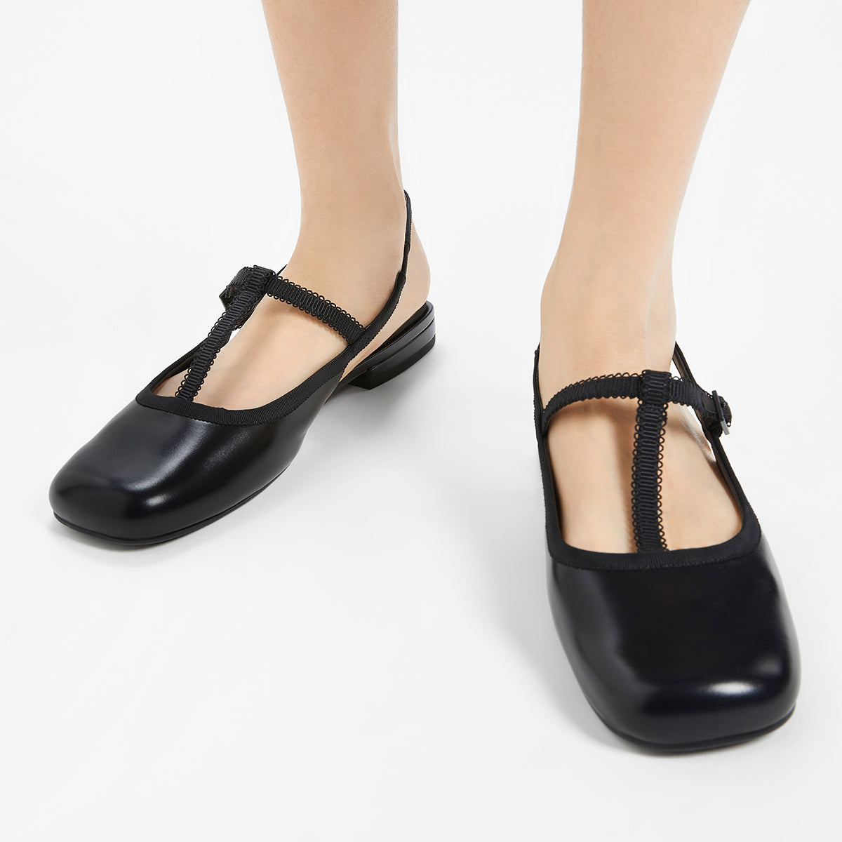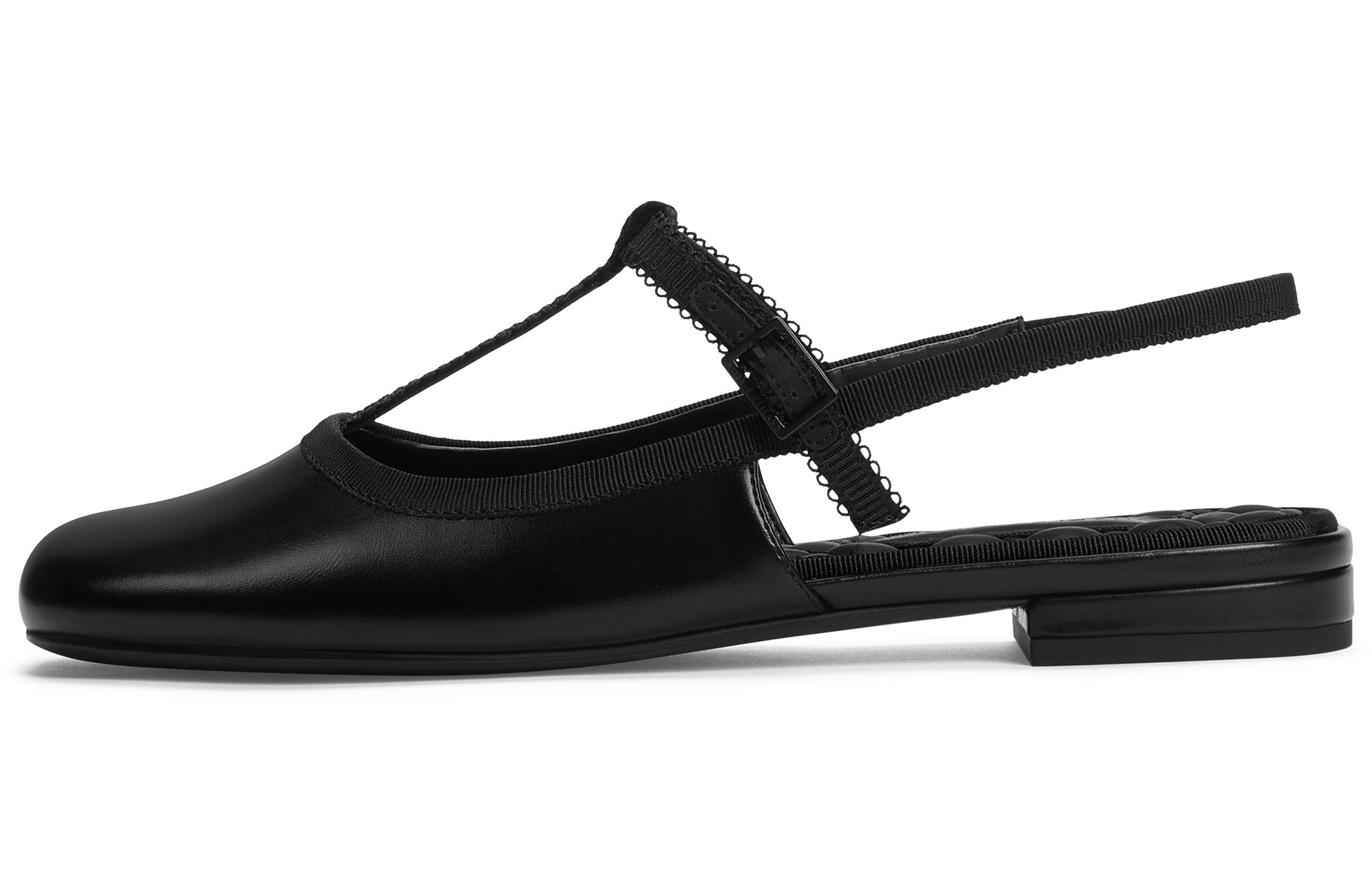 Ushbu tekis Meri Jeyn sandallari to'rtburchak barmoqli, T-tasmali va o'ralgan dizaynga ega. Kundalik kiyish uchun qulay.