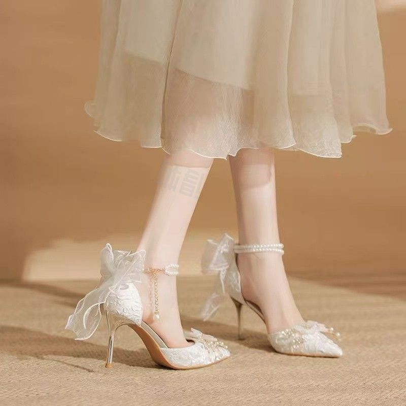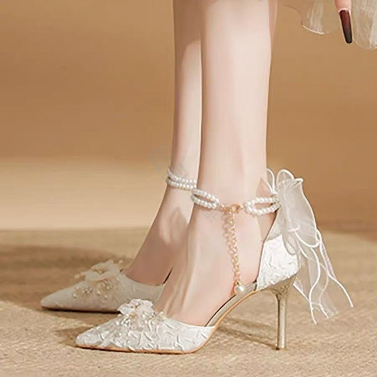 Cherry&kalika французский стиль феи, элегантный, классический, универсальный, дизайн со стразами, бант и жемчужная цепочка, тонкий каблук, высокий каблук, женщины бежевый