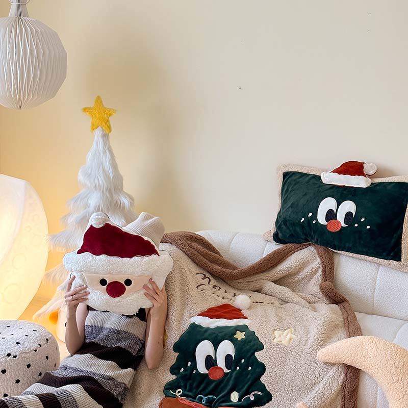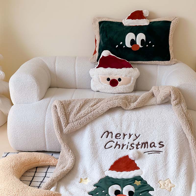 Cocoon edge рождество мультфильм трехмерные модели искусственной шерсти ягненка аппликация вышивка одеяло общежитие аренда жилья домашний офис универсальный ворс одеяло мягкий и удобный кожа дружественные дышащий может спать голый