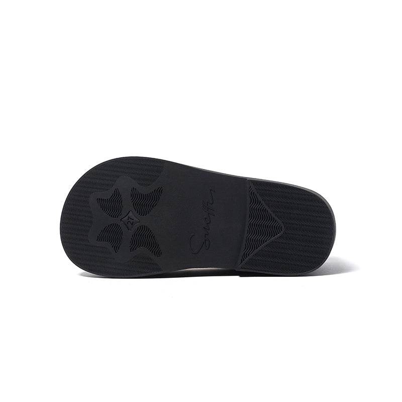 Snoffy qora va oq teri bolalar poyabzali. Yumshoq taglik va sirpanishdan himoya qiluvchi qulay va engil. Kundalik kiyinish va ochiq havoda ishlash uchun ideal, ular kichkina oyoqlar uchun qulaylik va yordam beradi.