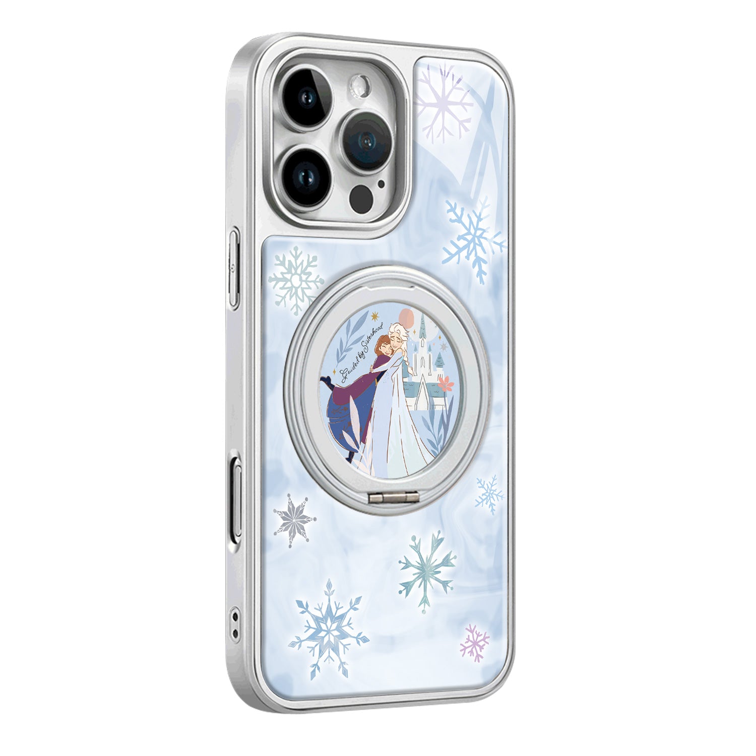 Disney disney tomchilatib yuboriladigan material yuqori sifatli uglerod tolali naqshli 360 ° aylanadigan stend qutisi olma/olma 16promax/15/14pro/max/iphone13/12/11 uchun muzlatilgan malika seriyali telefon qutisi