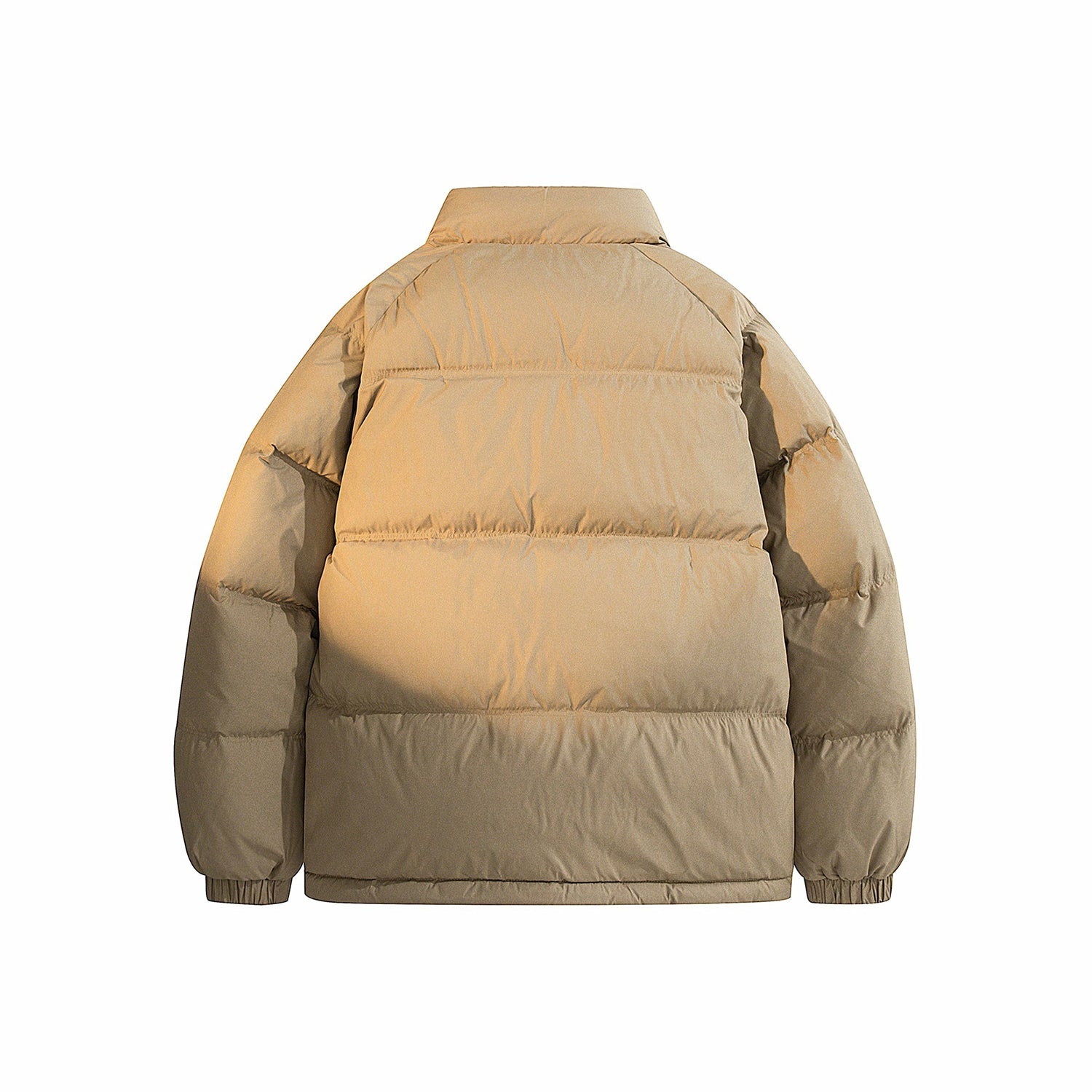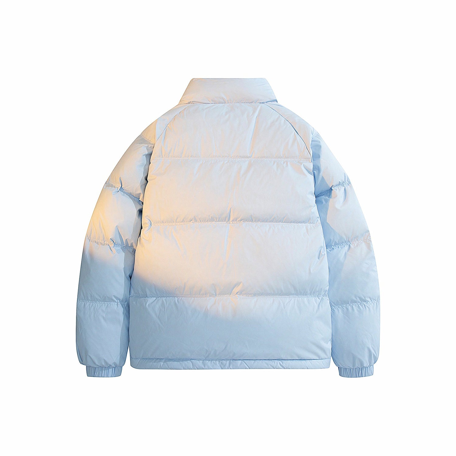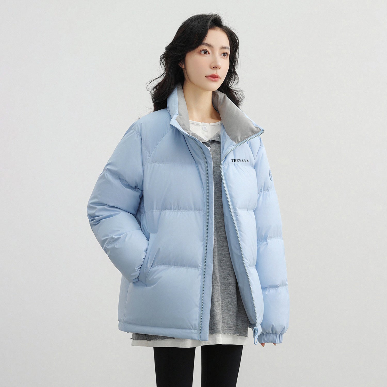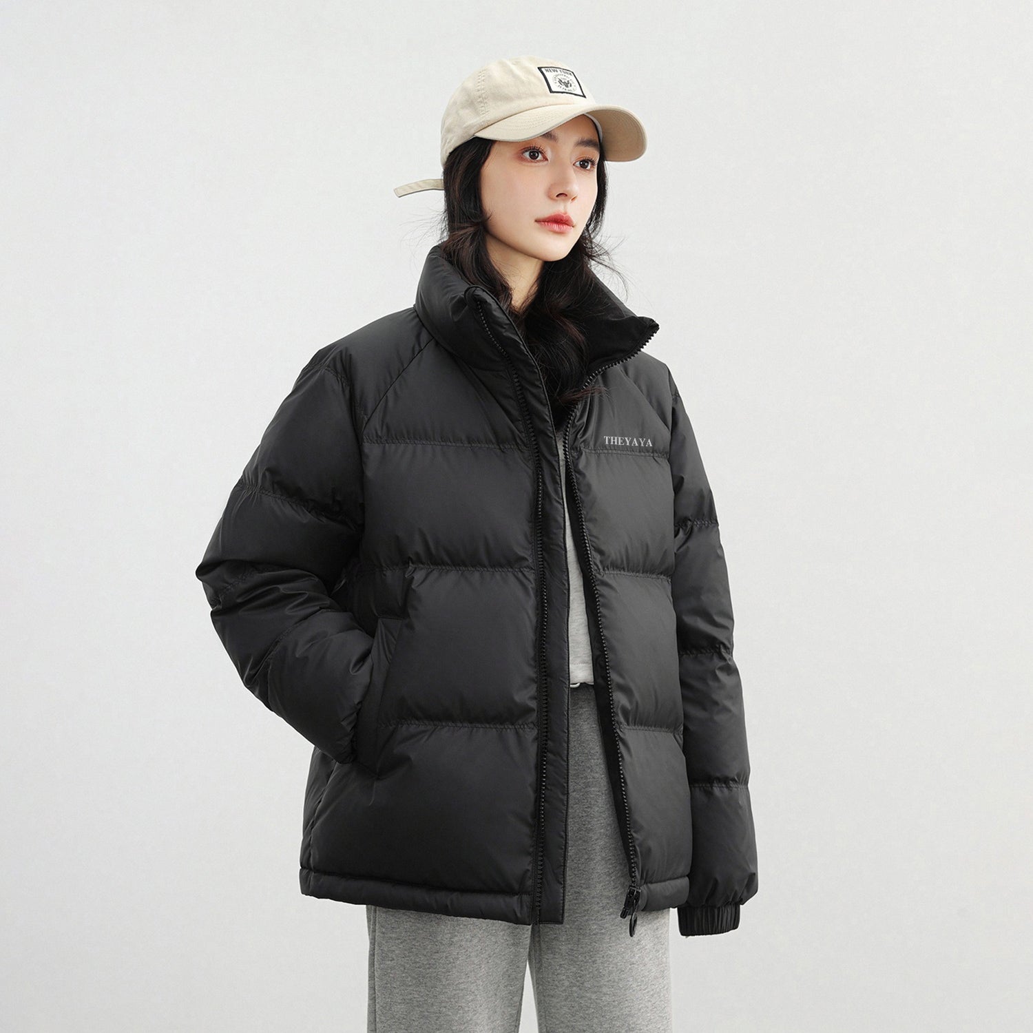 Bulutli effektli kalta pufli kurtka, tik turgan yoqasi, pufdan himoyasi va togʻ naqshi. Ushbu keng, kapshonsiz dizayn oʻrdak puflari bilan toʻldirilgan, yuqori darajadagi qulaylikni taʼminlaydi va sovuq mavsumda kundalik shahar kiyimlari uchun oddiy, koʻp qirrali koʻrinish yaratadi.