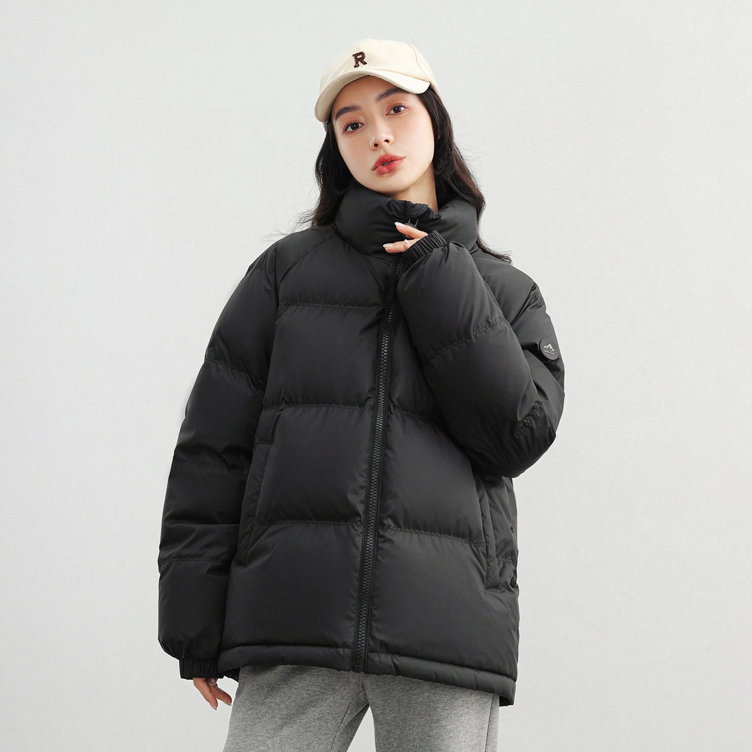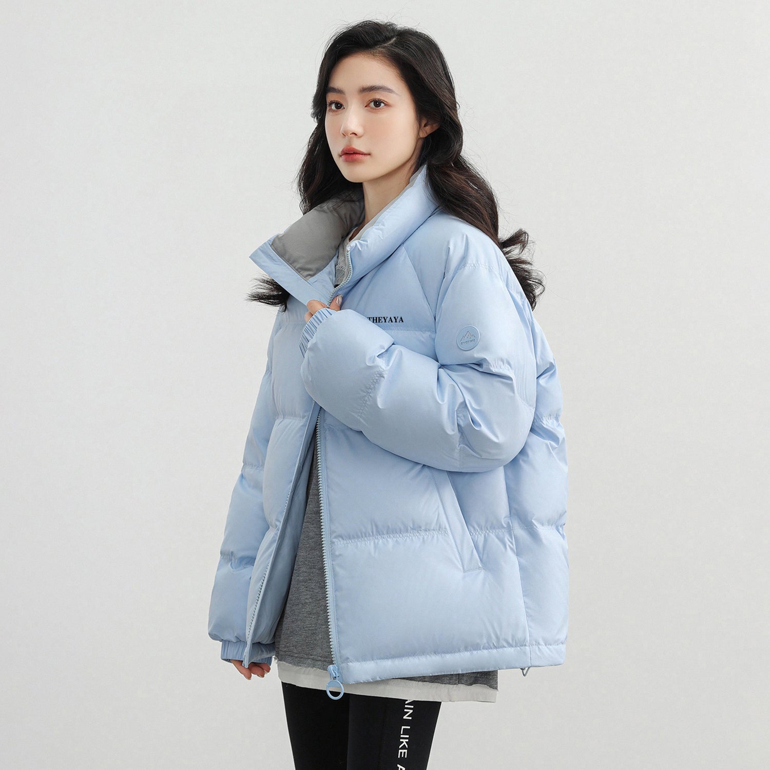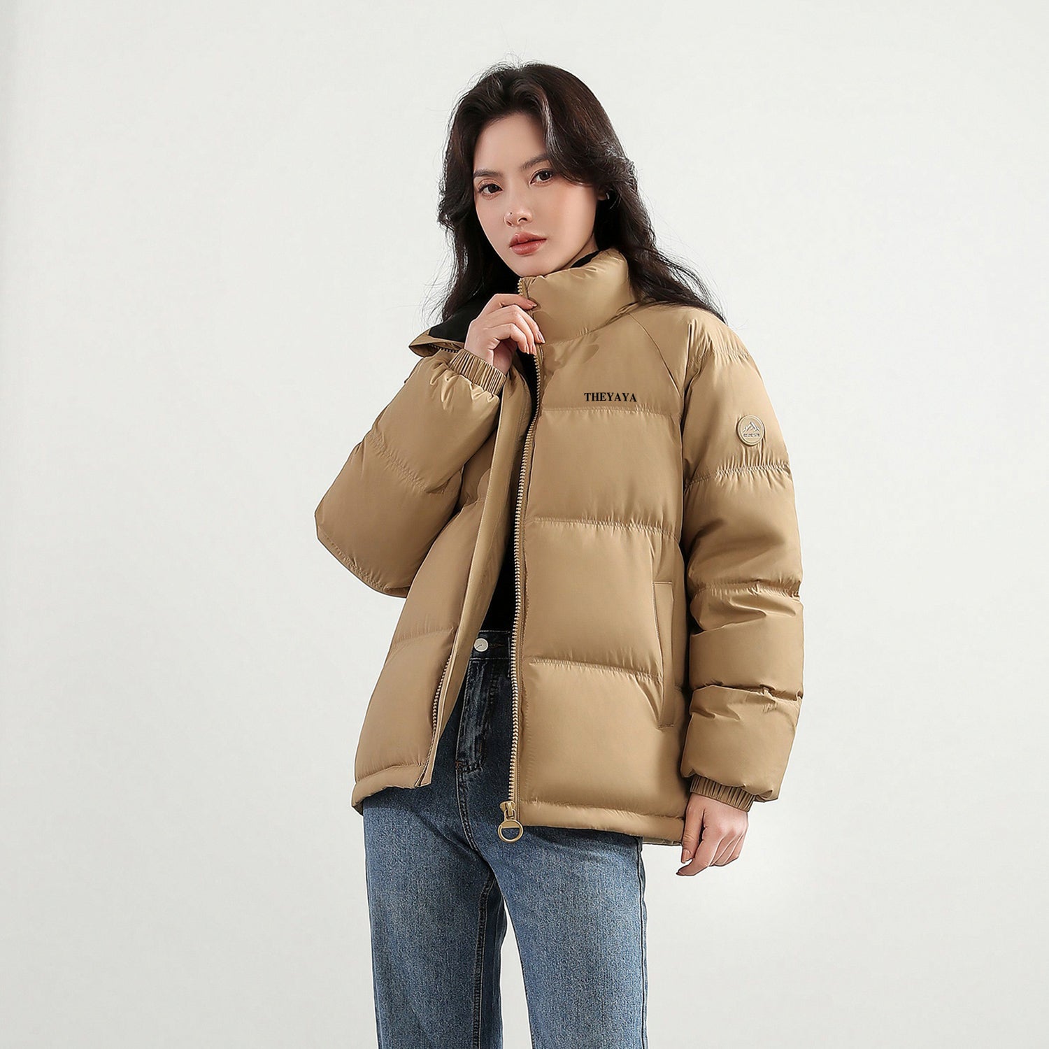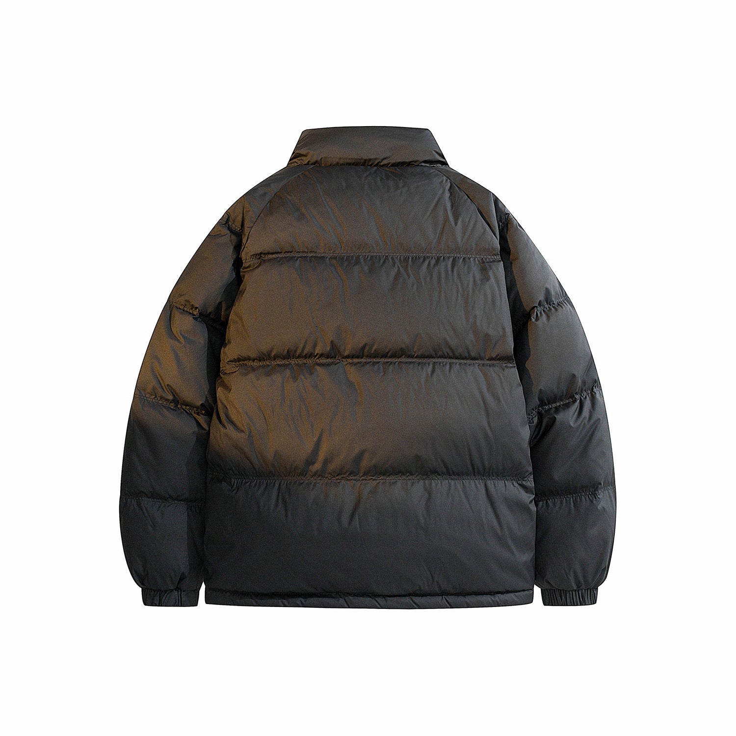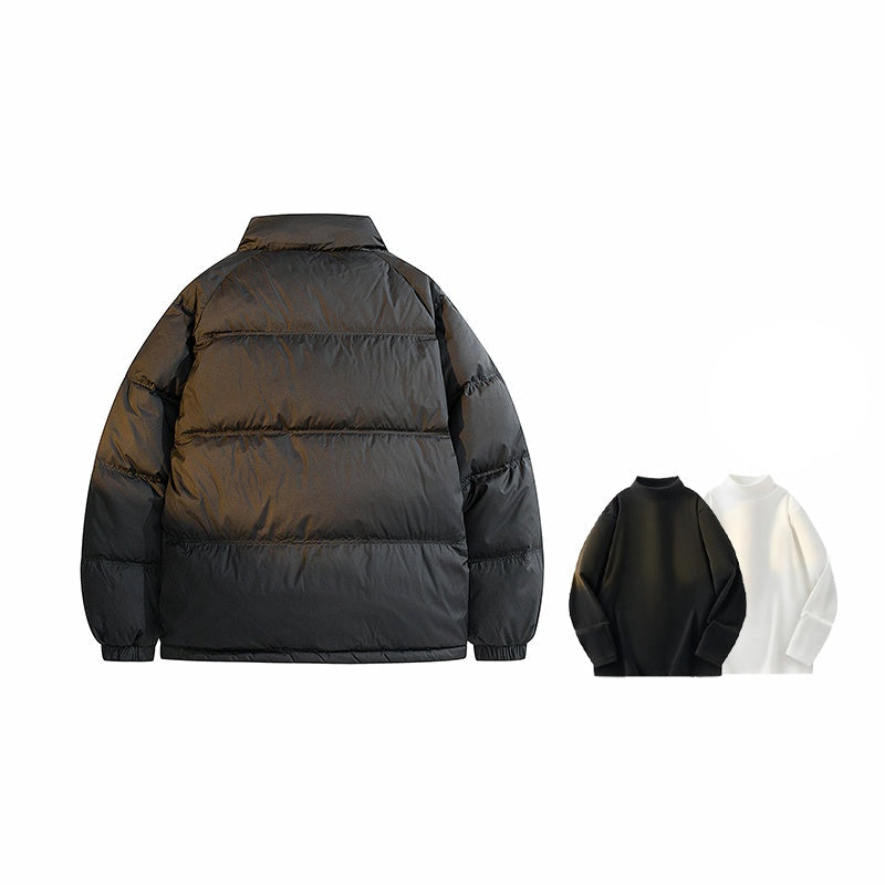 Bulutli effektli kalta pufli kurtka, tik turgan yoqasi, pufdan himoyasi va togʻ naqshi. Ushbu keng, kapshonsiz dizayn oʻrdak puflari bilan toʻldirilgan, yuqori darajadagi qulaylikni taʼminlaydi va sovuq mavsumda kundalik shahar kiyimlari uchun oddiy, koʻp qirrali koʻrinish yaratadi.