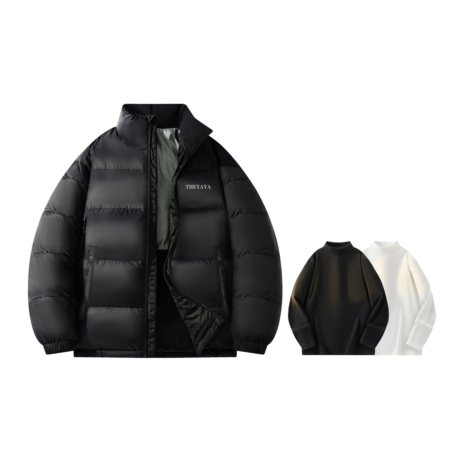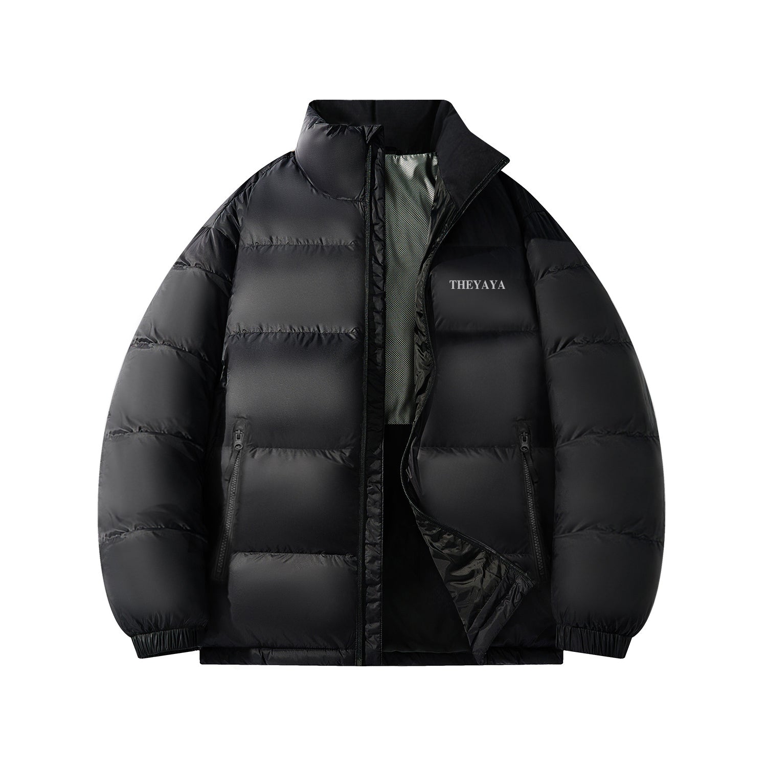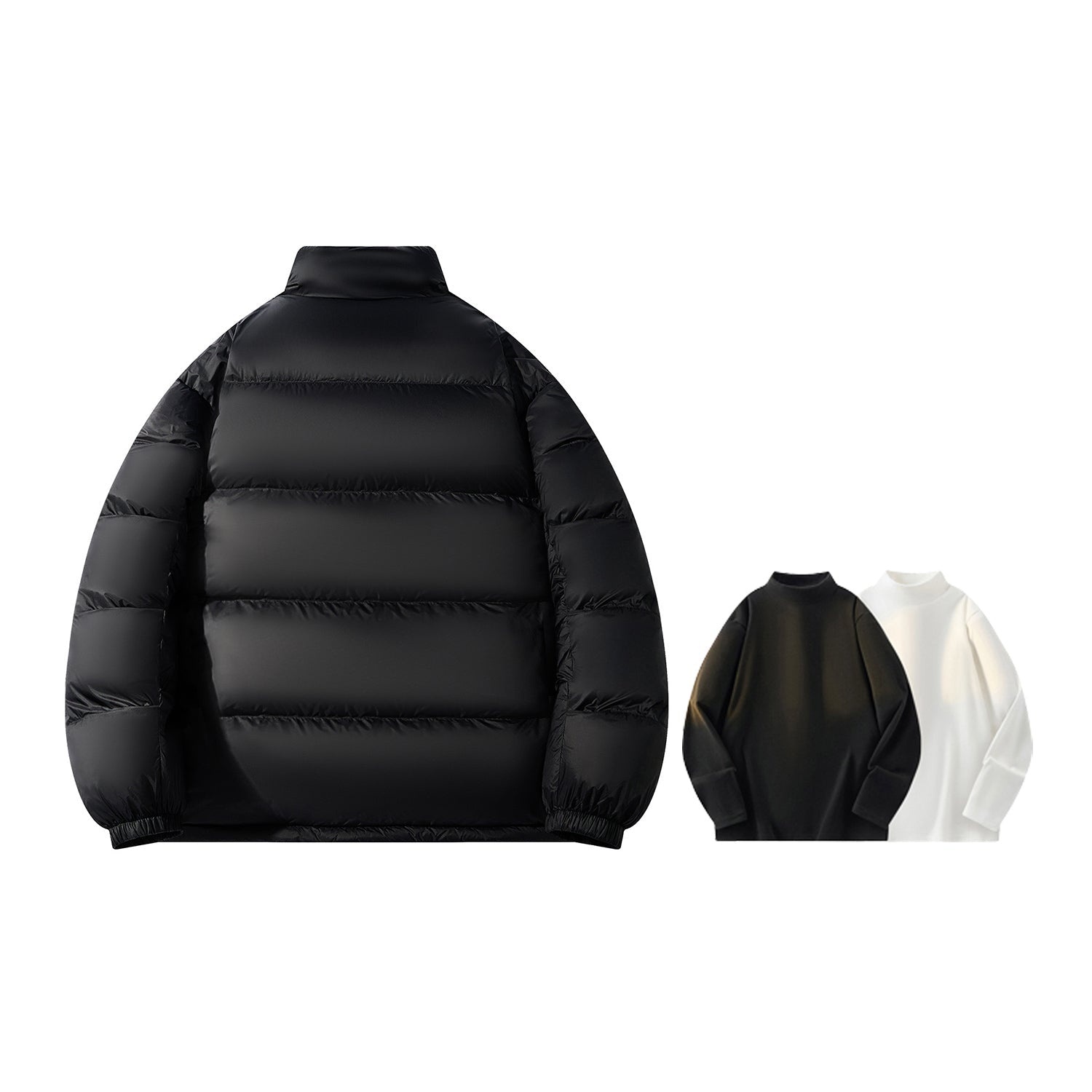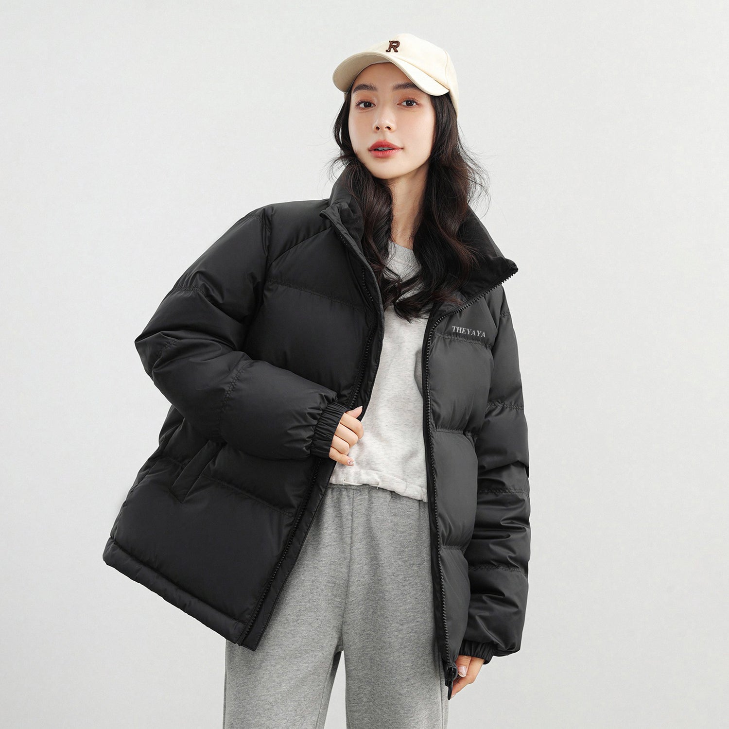 Bulutli effektli kalta pufli kurtka, tik turgan yoqasi, pufdan himoyasi va togʻ naqshi. Ushbu keng, kapshonsiz dizayn oʻrdak puflari bilan toʻldirilgan, yuqori darajadagi qulaylikni taʼminlaydi va sovuq mavsumda kundalik shahar kiyimlari uchun oddiy, koʻp qirrali koʻrinish yaratadi.