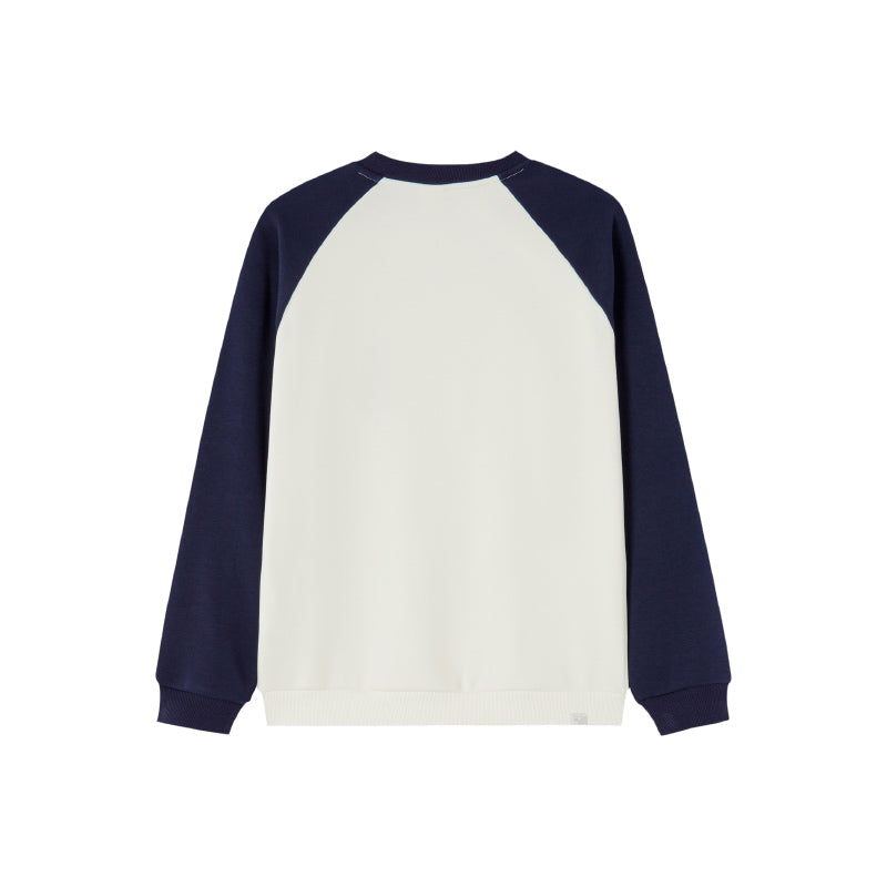 Retro, sport uslubidagi, kashta tikilgan detallarga ega, kepkali yenglarga va yoqali, o'ziga mos keladigan sviter. Ushbu ko'p qirrali aralash mato salqin havoda qulay ko'rinish uchun juda mos keladi.