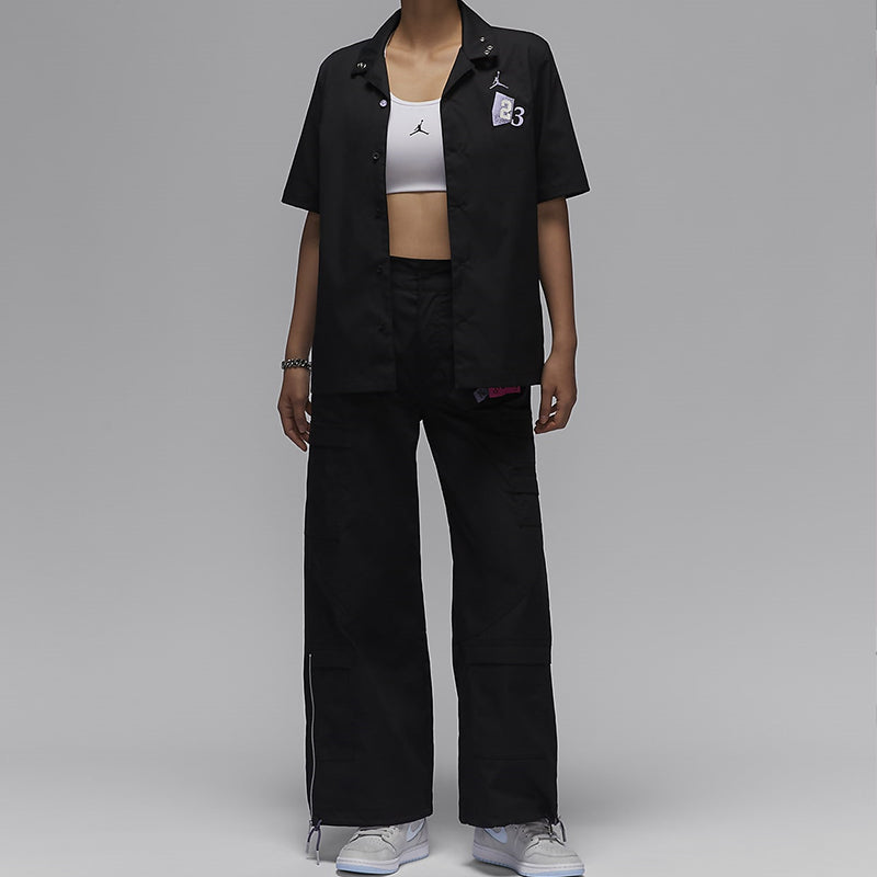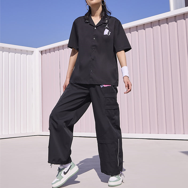 Iordaniya modasi sport uslubi tugmasi bo'sh qisqa yengli ko'ylak ayollar qora