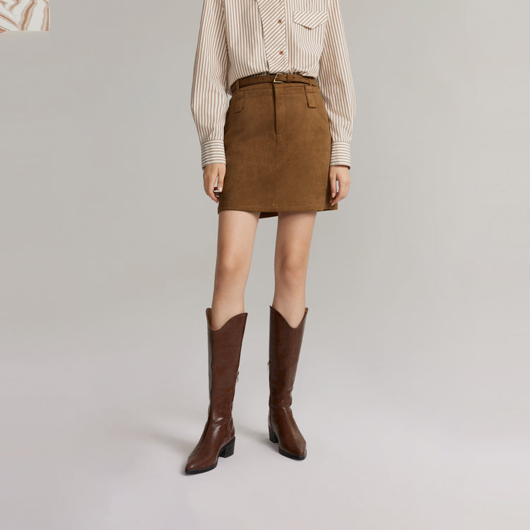 Karridagi frantsuz dizayni bilan oddiy, kundalik yubka. Qulay va ko'p qirrali, zamonaviy kundalik ko'rinish uchun juda mos keladi.