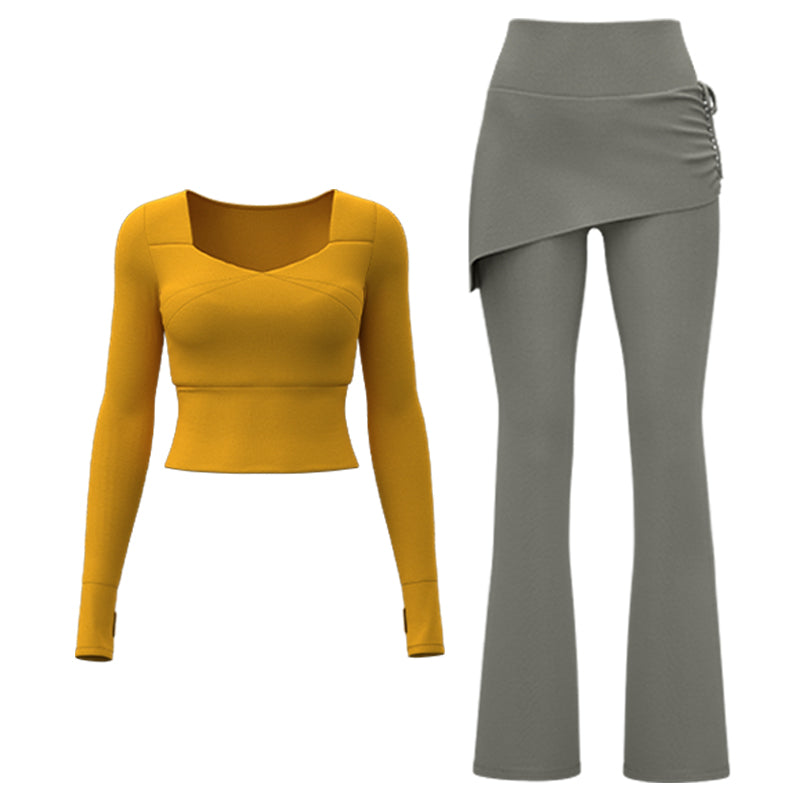 Ushbu ikki qismli to'plam ingichka o'lcham va baland belga ega bo'lib, poliester va spandeksdan tayyorlangan bo'lib, yugurish, yoga va fitnes uchun qo'llab-quvvatlash, qulaylik va tez quriydi.