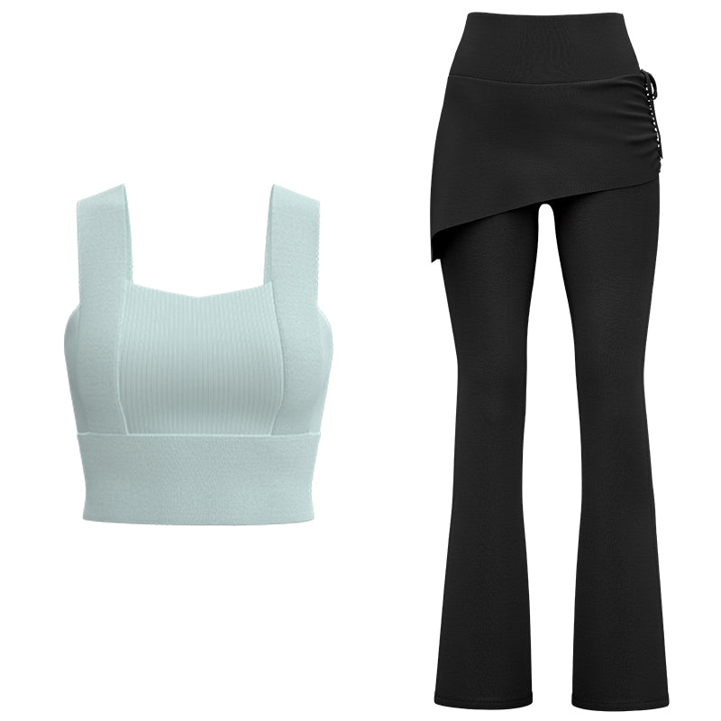 Ushbu ikki qismli, mahkamlangan legginslar va plash yubka poliester va spandeksdan tayyorlangan bo'lib, yoga, fitnes va mashg'ulotlar paytida qulaylik, qo'llab-quvvatlash, yuqori elastiklik va tez qurishni ta'minlaydi.