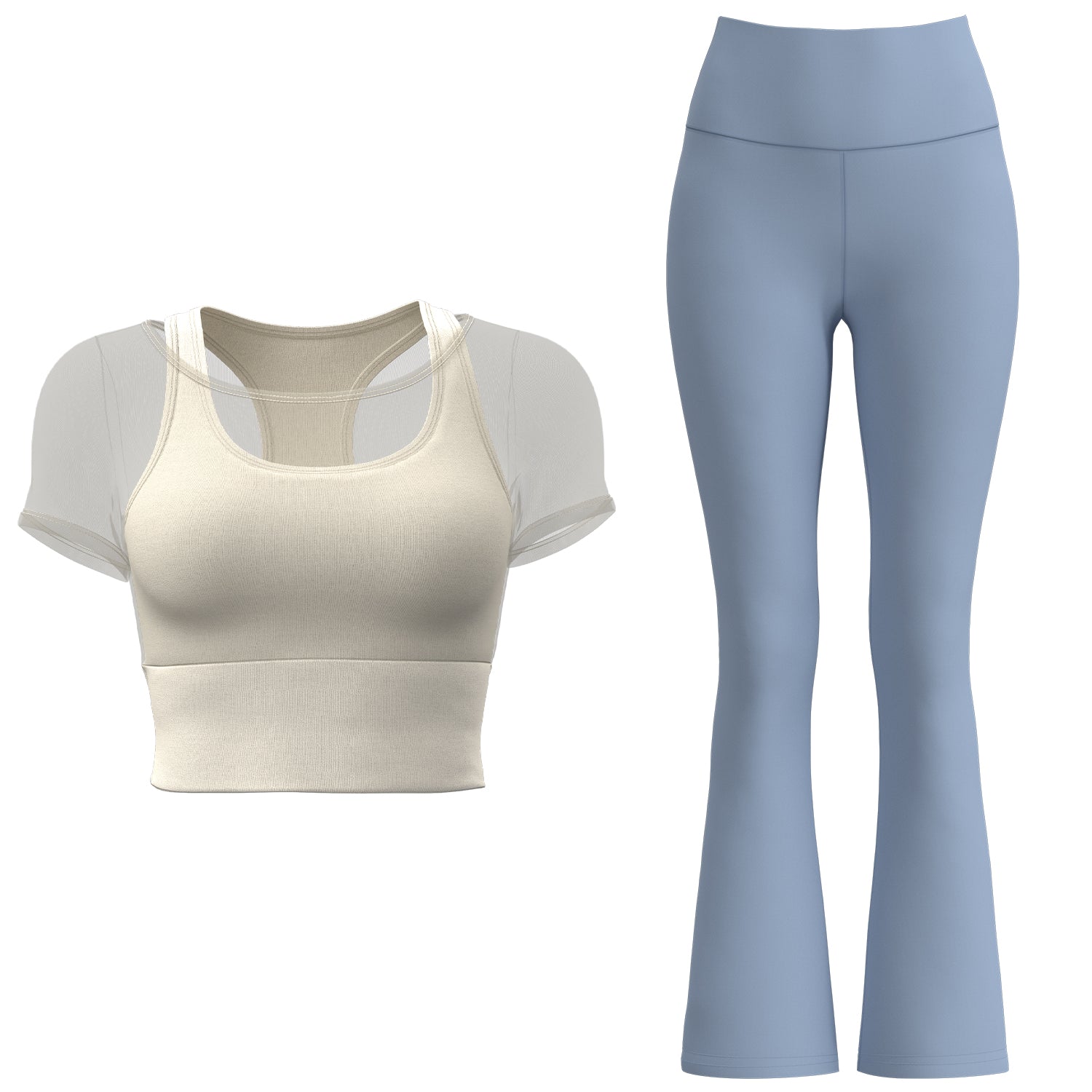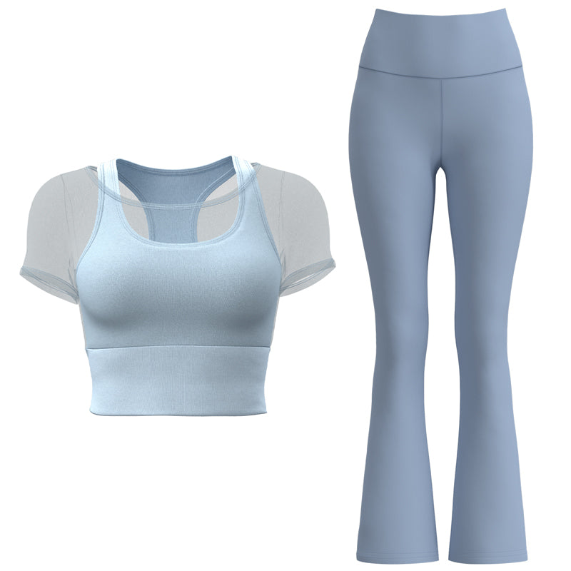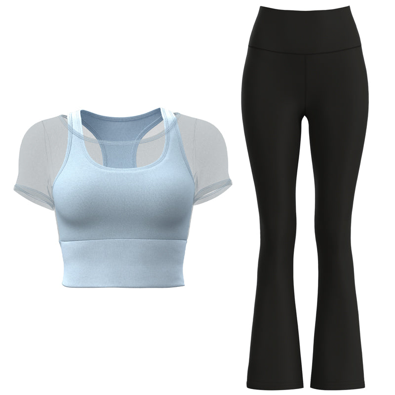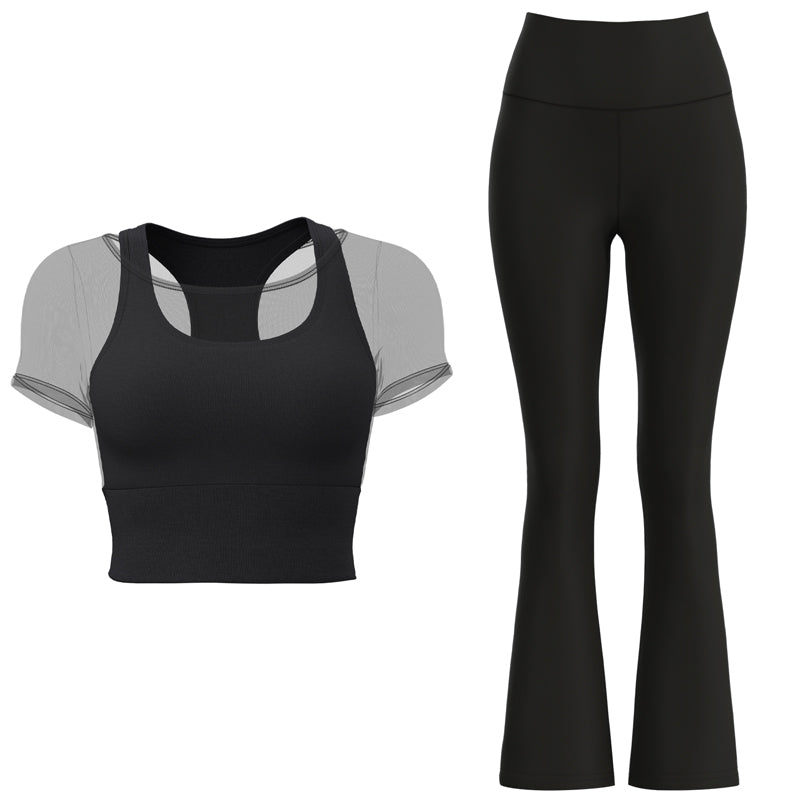 Ushbu ikki qismli to'plam poliester, spandeks va neylondan tayyorlangan mahkamlangan stakanlar va to'rli qo'shimchalarga ega bo'lib, yugurish, yoga va fitnes uchun yuqori cho'zilish, qo'llab-quvvatlash va tez quritish imkonini beradi.