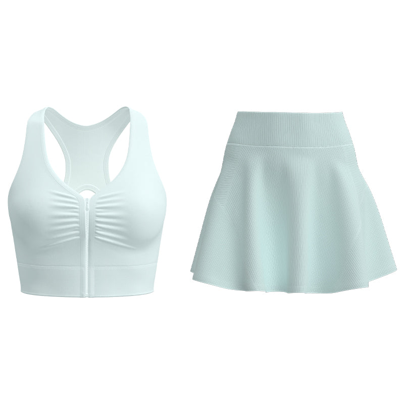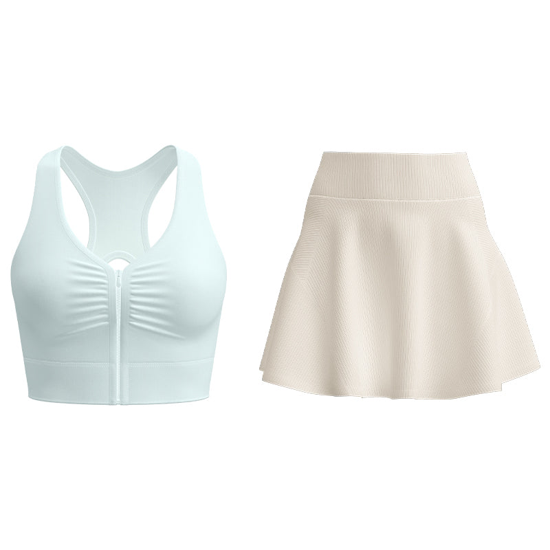 Ushbu to'plam kalta qo'llab-quvvatlovchi ustki qism va orqa tomoni ochiq, poliester va spandeksdan tayyorlangan, yugurish, fitnes va yoga paytida qulaylik, qo'llab-quvvatlash va tez qurishni ta'minlaydigan tor sport byustgalteridan iborat.