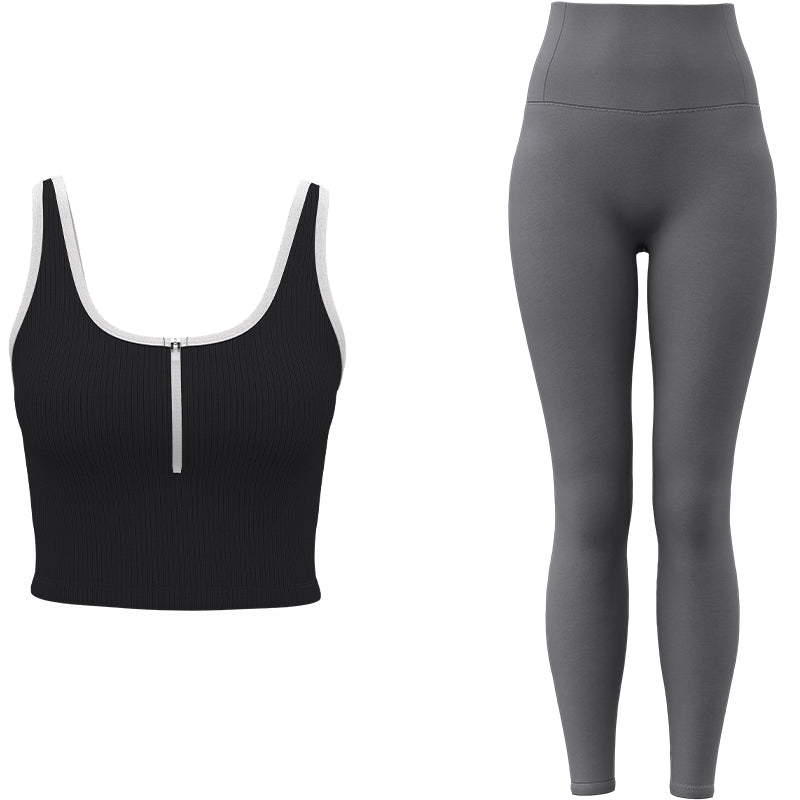 Ushbu ikki qismli to'plamda poliester va spandeksdan tayyorlangan mahkamlangan stakanlar va shaklga mos keladigan mato mavjud bo'lib, ular yugurish, fitnes va yoga uchun qo'llab-quvvatlash, zarbani yutish va tez quritish imkonini beradi.